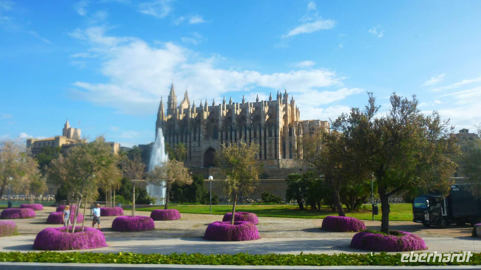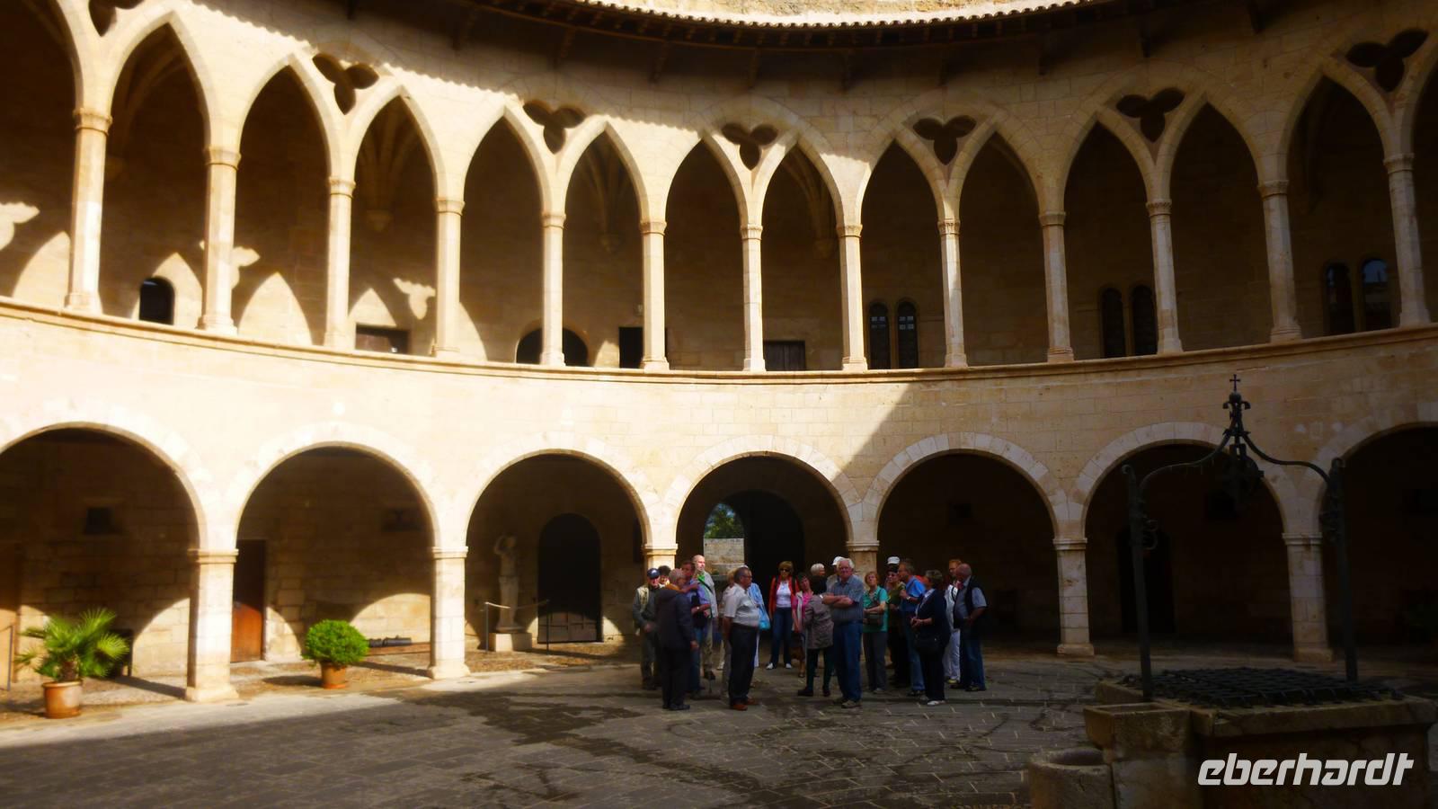 Im Bus lernen wir Magdalena kennen, unsere Reiseleiterin, welche uns im Laufe der Woche die ganze Insel zeigen wird. Ihr herzliches, spanisches Temperament schlossen wir sofort ins Herz und so hieß es „Auf los geht's los". Auf der Fahrt zum Schloss Bellver zeigt Sie uns den Hafen und die Kathedrale, die wir später noch besichtigen werden. Von der Aussichtsebene des Schlosses haben wir einen guten Überblick über die Stadt Palma und den Hafen. Magdalena erzählt von der Geschichte des Gebäudes und überzeugte durch ihre guten Sachkenntnisse über die damalige Sommerresidenz der mallorquinischen Könige. Heute befinden sich im ''Castillo de Bellver'' Museumsräume. Weiter geht es zur Kathedrale von Palma, die einzige am Meer gelegene Kathedrale. Das Innere des aus dem 15. Jahrhundert stammenden Baus strahlt durch die Buntglasfenster und vor allem die im Durchmesser rund 11 m große Blüte in allen Farben.