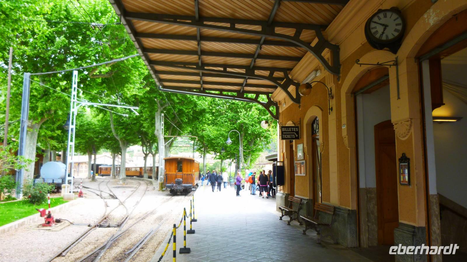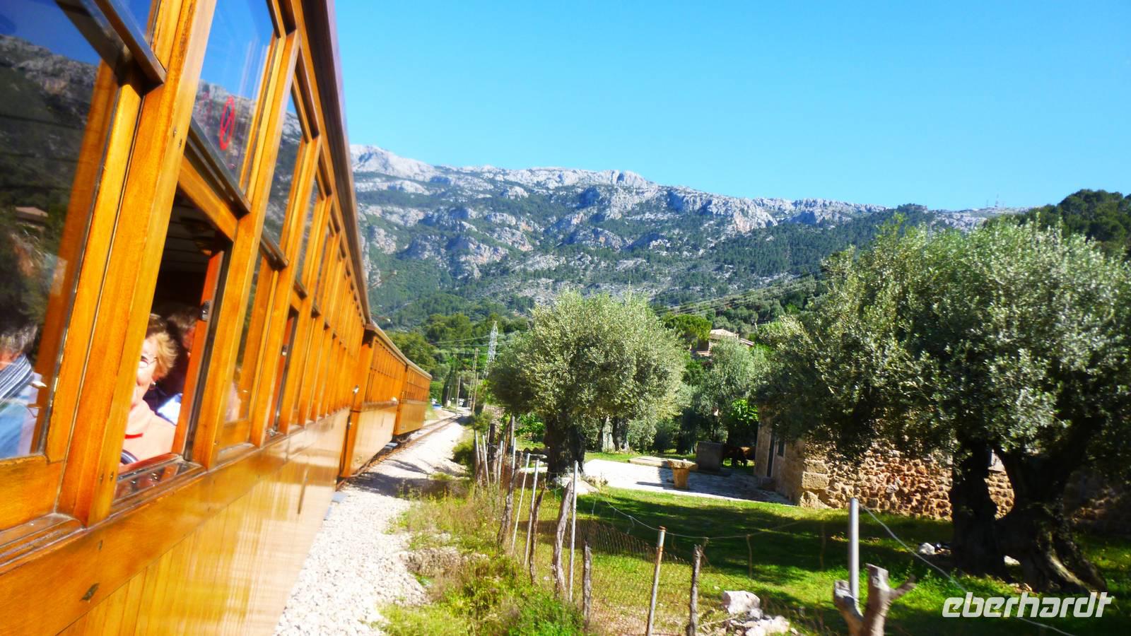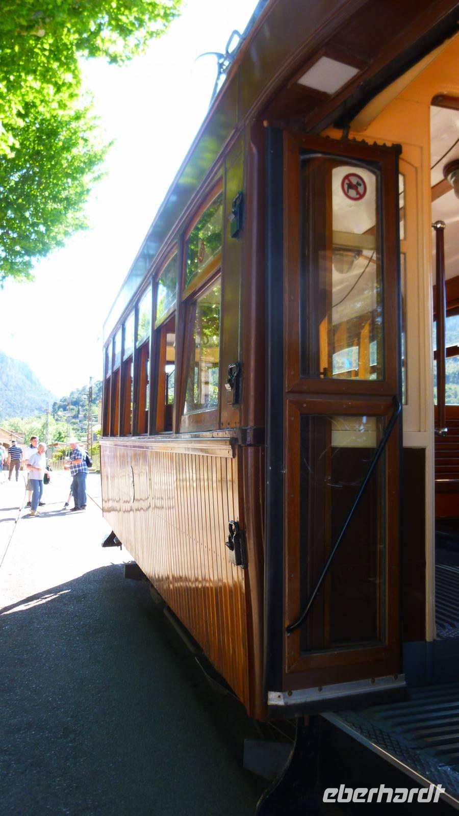 Entlang der beeindruckenden Nordküste, mit ihren unzähligen Buchten und steilen Felsen, fahren wir bei Sonnenschein und ruhiger See nach Soller, von wo aus wir eine tunnelreiche Zugfahrt genießen dürfen. Quietschend und ruckelnd bringt uns die Straßenbahn vom Port de Soller durch enge Gassen zum etwas höher gelegenen Bahnhof.