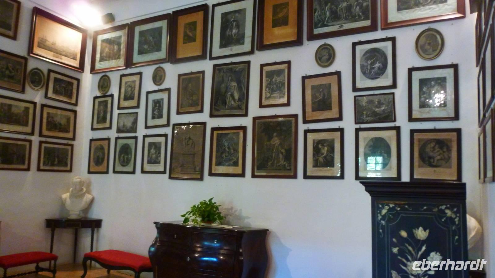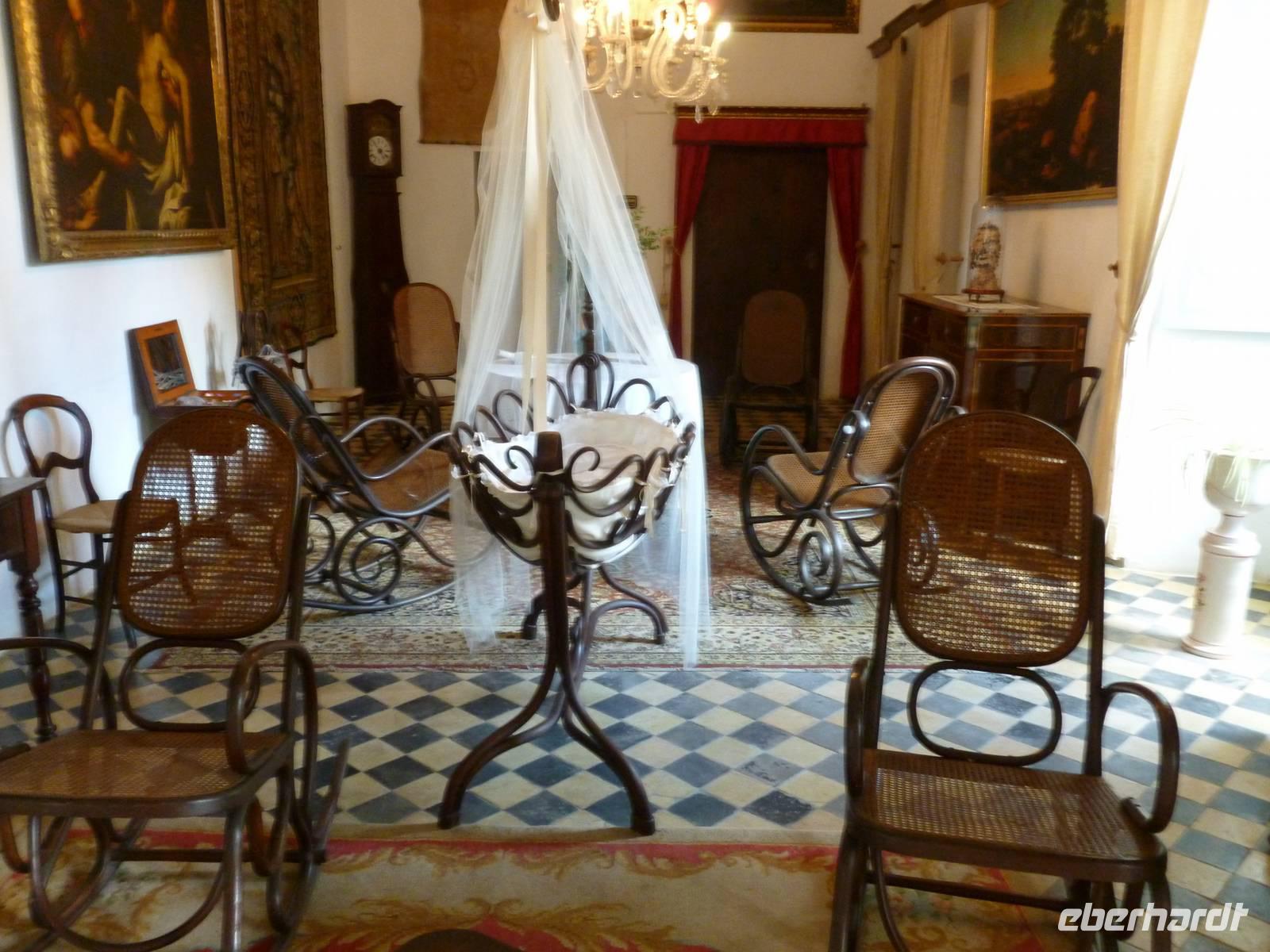 Erleichtert kommen wir an und beginnen auch schon unsere Privatführung durch das Gebäude. Schlafzimmer, Küche, Esszimmer, Kinderzimmer, sogar ein Raum für ärztliche Behandlungen und ein kleines Labor sind zu bewundern. Sämtliche Möblierungen, Spielzeuge und Dekorationen sind aus einer anderen Zeit. Wollverarbeitung, Parfümherstellung, Kellerräume für Schmiedearbeiten, ja sogar die Olivenölproduktion wird uns durch ein kurzes Video und noch original erhaltene Maschinen und Gerätschaften näher gebracht. Diesem Landhaus schien es damals an nichts zu fehlen. Im Anschluss gibt es selbstgemachten Kräpfchen mit süßer hausgemachter Marmelade. Außerdem kosten wir typische Wurst, Käse, Wein und Olivenöl.