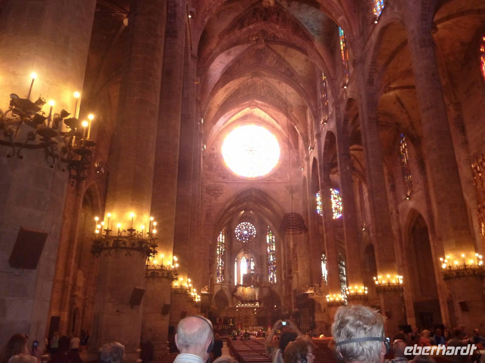 Nach einem reichhaltigen Frühstück bei strahlendem Sonnenschein fuhren wir mit unserer Reiseleiterin Magdalena in Richtung Hauptstadt. Bereits unterwegs erfuhren wir einiges über die Geschichte der Insel. Schon von weitem thront das Schloss Bellver über der Stadt. Das Königsschloss der Stadt wirkt von außen wehrhaft und überrascht im Inneren mit seinen eleganten Loggien. Das Schloss Bellver war kurzzeitig die Residenz von Jaumes II und diente später als Kerker. Heute beherbergt es ein historisches Museum und gibt einen traumhaften Blick über die Stadt und den Hafen. Bei guter Sicht haben wir den höchsten Berg, den Puig Major (1445 Meter) und die vorgelagerte Insel Cabrera gesehen. Auf unserem weiteren Programm steht der Besuch der Kathedrale „La Seu". Bei einer Führung brachte uns Magdalene diesen Bischofsitz näher und wir bestaunten das Lichtspiel am Boden der Kathedrale. Die einfallende Sonne verwandelte den Boden in ein wahres Farbenmeer. Die Kathedrale beherbergt das größte gotische Kirchenfenster der Welt. Es hat einen Durchmesser von 11,5 Metern und besticht durch 1236 Fensterrosen. Im Anschluss spazierten wir durch die engen Gassen von Palma und besuchten die Markthalle Mercat de l´Oliver. Im Anschluss verweilten wir in Palme oder fuhren mit dem Linienbus in Richtung Hotel. Am Nachmittag konnte Sonne getankt werden und das Abendessen rundete diesen wundervollen Tag ab.