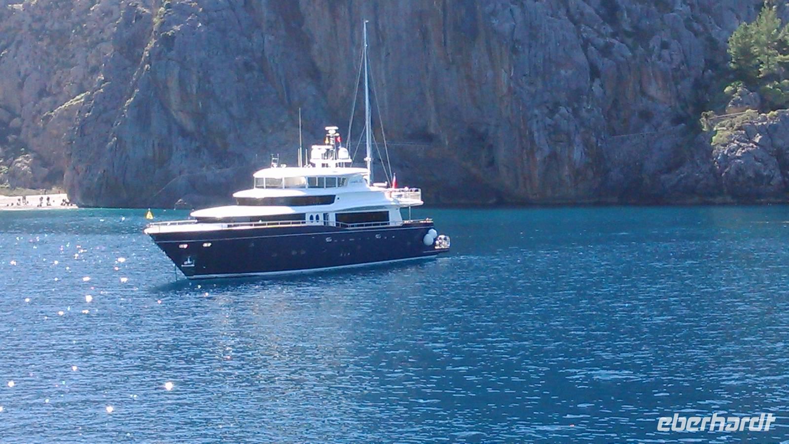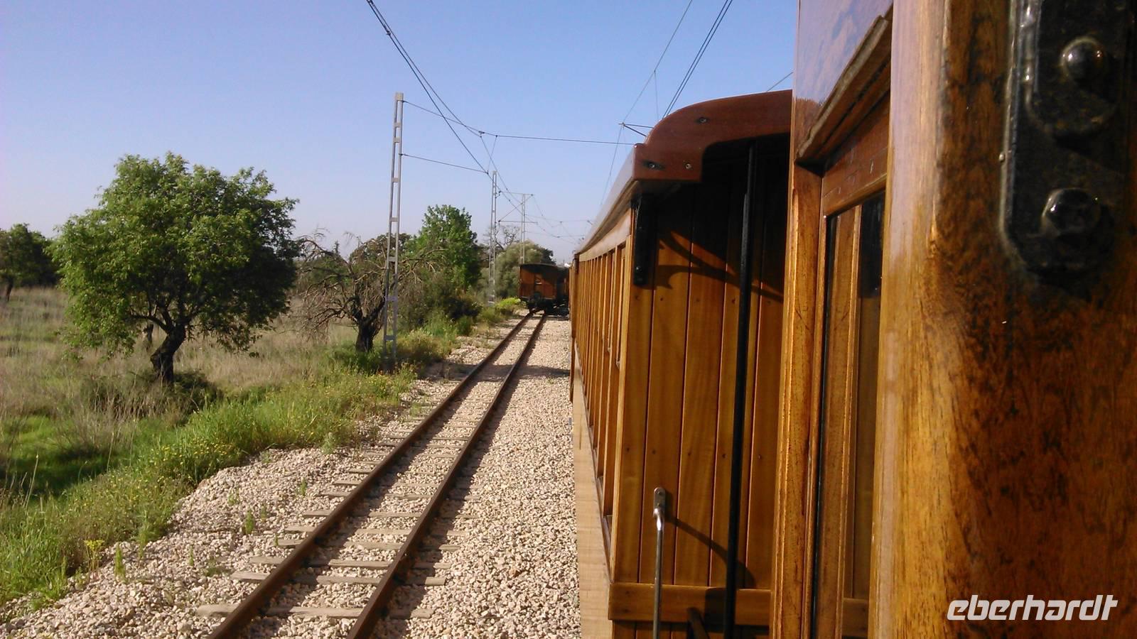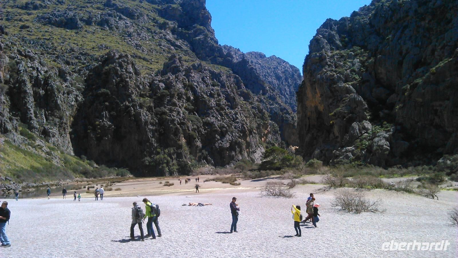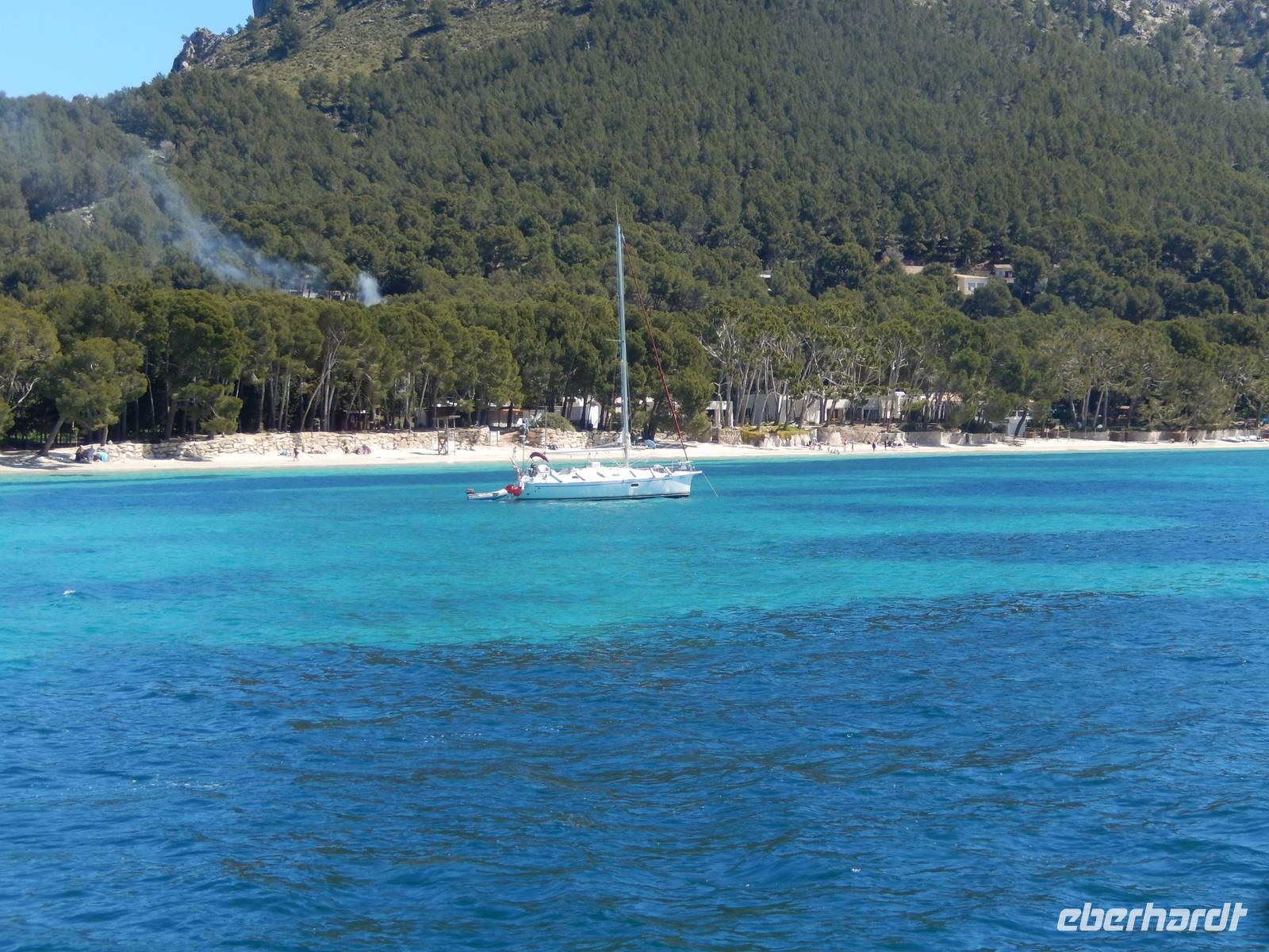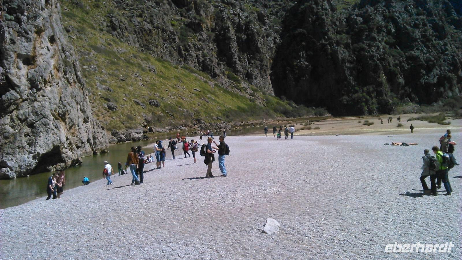 Nach einem kräftigen Frühstück ging es nun auf eine aufregende Reise. Vier verschiedene und zum Teil auch nostalgische Beförderungsmittel konnten wir an einem Tag benutzen. Zuerst brachte uns Christopher, unser Chauffeur, zu einem Bahnhof außerhalb der Stadt, wo der berühmte „Rote Blitz" auf uns wartete. Eine, mit rötlich, schimmernden Holz verkleidete Eisenbahn, brachte uns durch das Gebirge nach Sollér wo wir in die traditionelle Straßenbahn umstiegen welche uns zum Hafen von Port Sollér brachte. Erinnerungen an vergangene Zeiten wurden in den teilweise mit Holzbänken oder Ledersitzen bestückten Wagons wach. Am Hafen angekommen ging es sofort auf einen Katamaran. Das Meer glich einer blauen Ebene und so war die Überfahrt in den Naturhafen von Sa Calobra, vorbei an den malerisch aus dem Meer steigenden Felsmassiven einfach nur zum genießen.