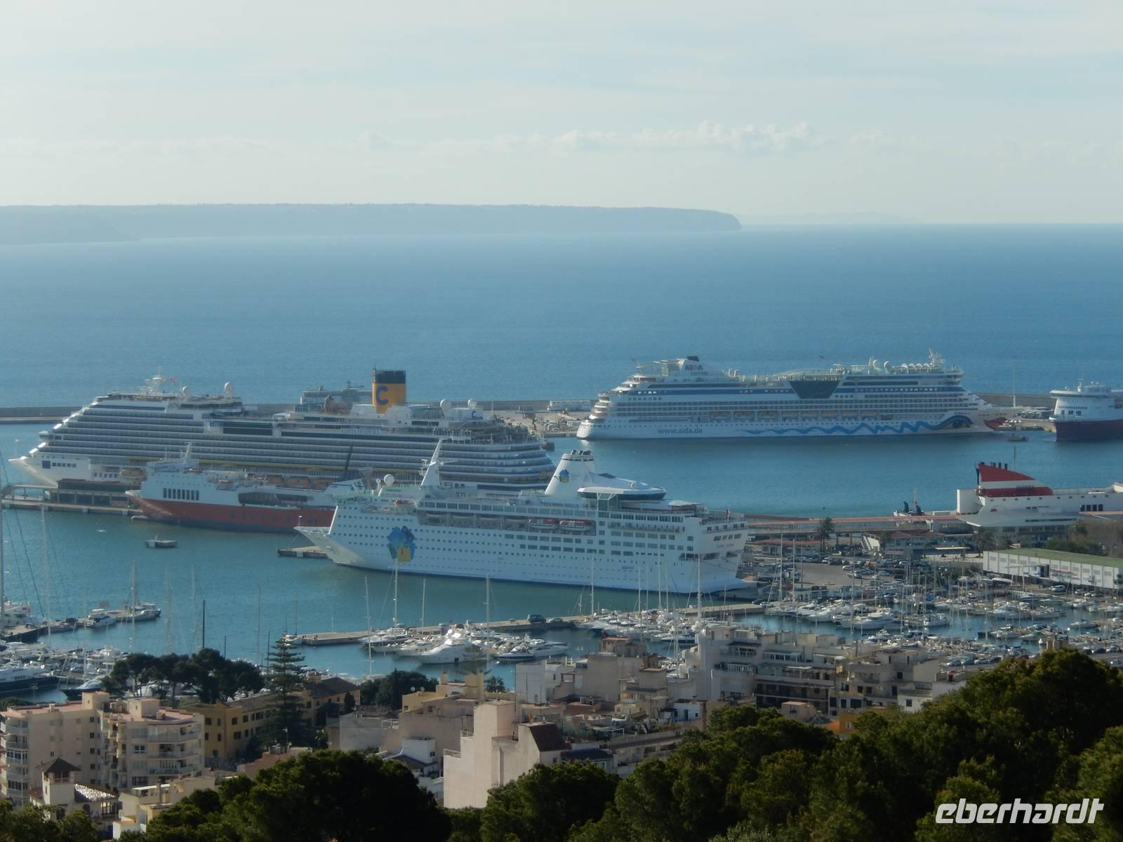 Der zweite Tagesausflug sollte uns in die Hauptstadt von Mallorca, nach Palma bringen. Die mit ca. 450.000 Einwohnern größte Stadt der Insel hatte wirklich viel zu bieten und so starteten wir in der Morgensonne mit einem Besuch des Schlosses „Belver". Hoch über Stadt gelegen, diente das im Jahre 1309 fertiggestellte „Castillo de Bellver" unter Anderem als Sommerresidenz der mallorquinischen Könige. Das aus Sandstein erbaute Schloss ist heute eine Pilgerstätte für Touristen, das ein historisches Museum beherbergt und eine unbeschreibliche Sicht auf die Bergwelt Mallorcas und über die Stadt Palma mit Ihren Yacht- und Kreuzfahrtschiffhäfen bietet.