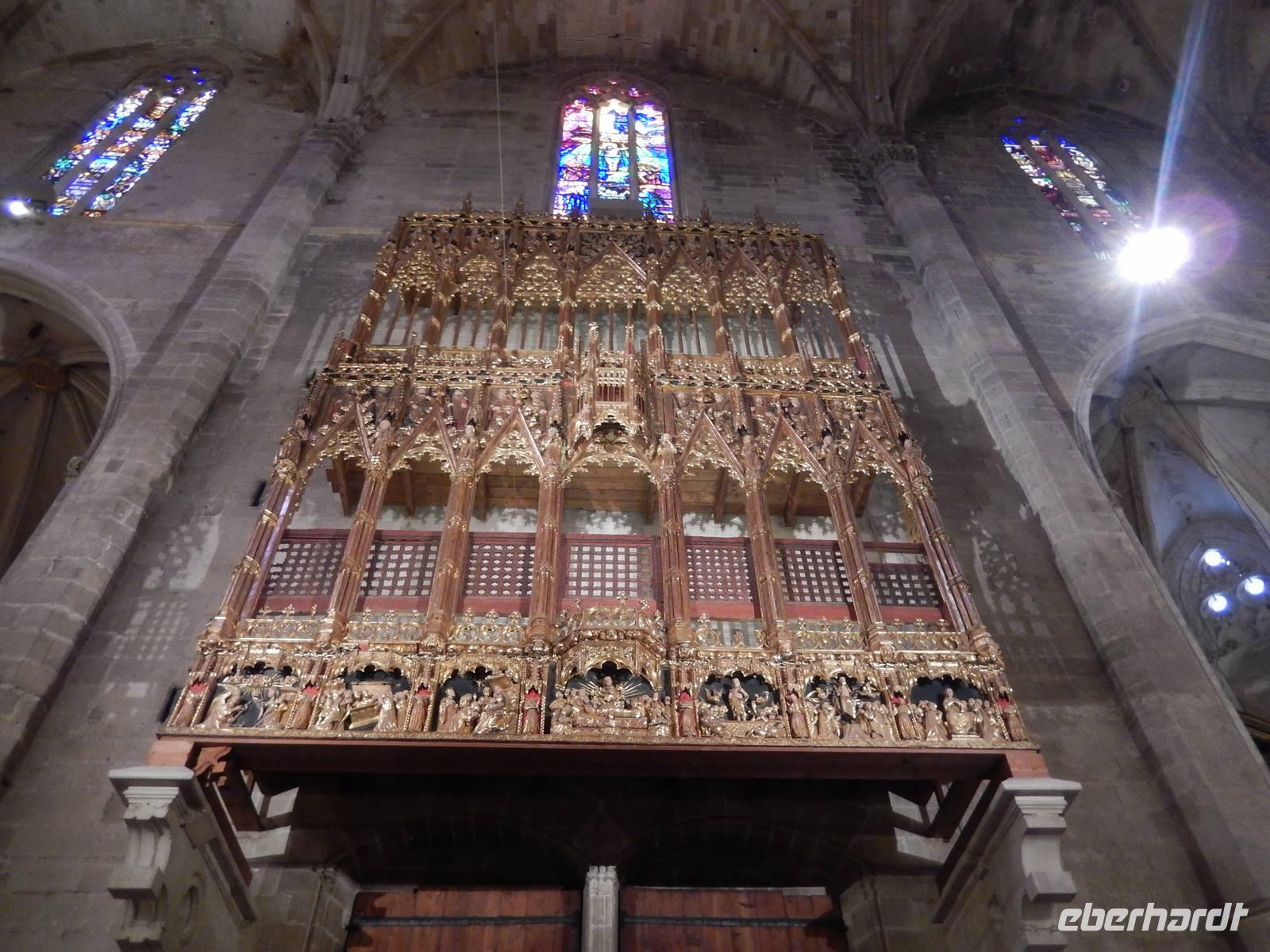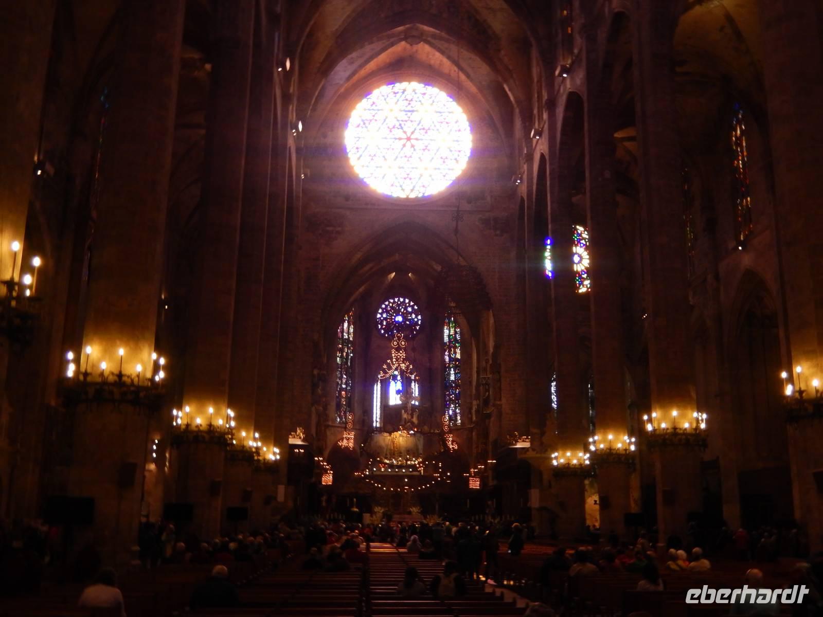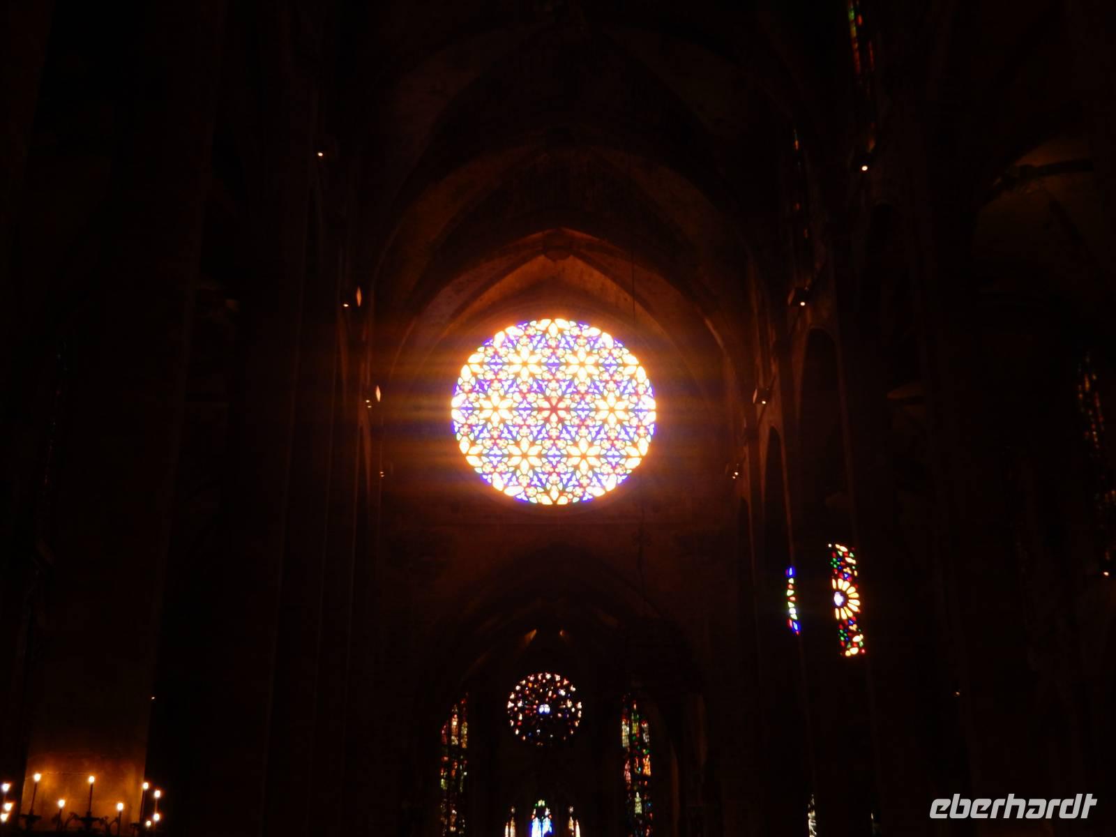 Als weiterer Höhepunkt stand die Kathedrale „La Seu" auf dem Plan. Das Hauptschiff mit seinen ca. 22m hohen und ungewöhnlich schmalen Säulen, fasziniert ebenso wie das mit über 1200 bunten Glasscheiben bestückte Rosette Magdalena brachte uns mit ihrem hervorragenden Wissen die Geschichte und Bedeutung der Kathedrale für Spanien und die Mallorquiner näher. Nun hieß es aber rein in den Stadttrubel. Durch schmale Straßen und ruhige Gassen bahnten wir uns den Weg zum Placa Major und weiter zur größten Markthalle, der „Mercat de L Olivar". Hier konnte jeder individuell das rege Treiben der Marktdamen- und Herren beobachten, die frischen Fisch, Fleisch oder Wurst sowie jegliche Arten von Gemüse und Obst anbieten.