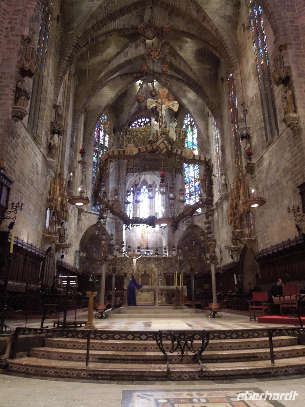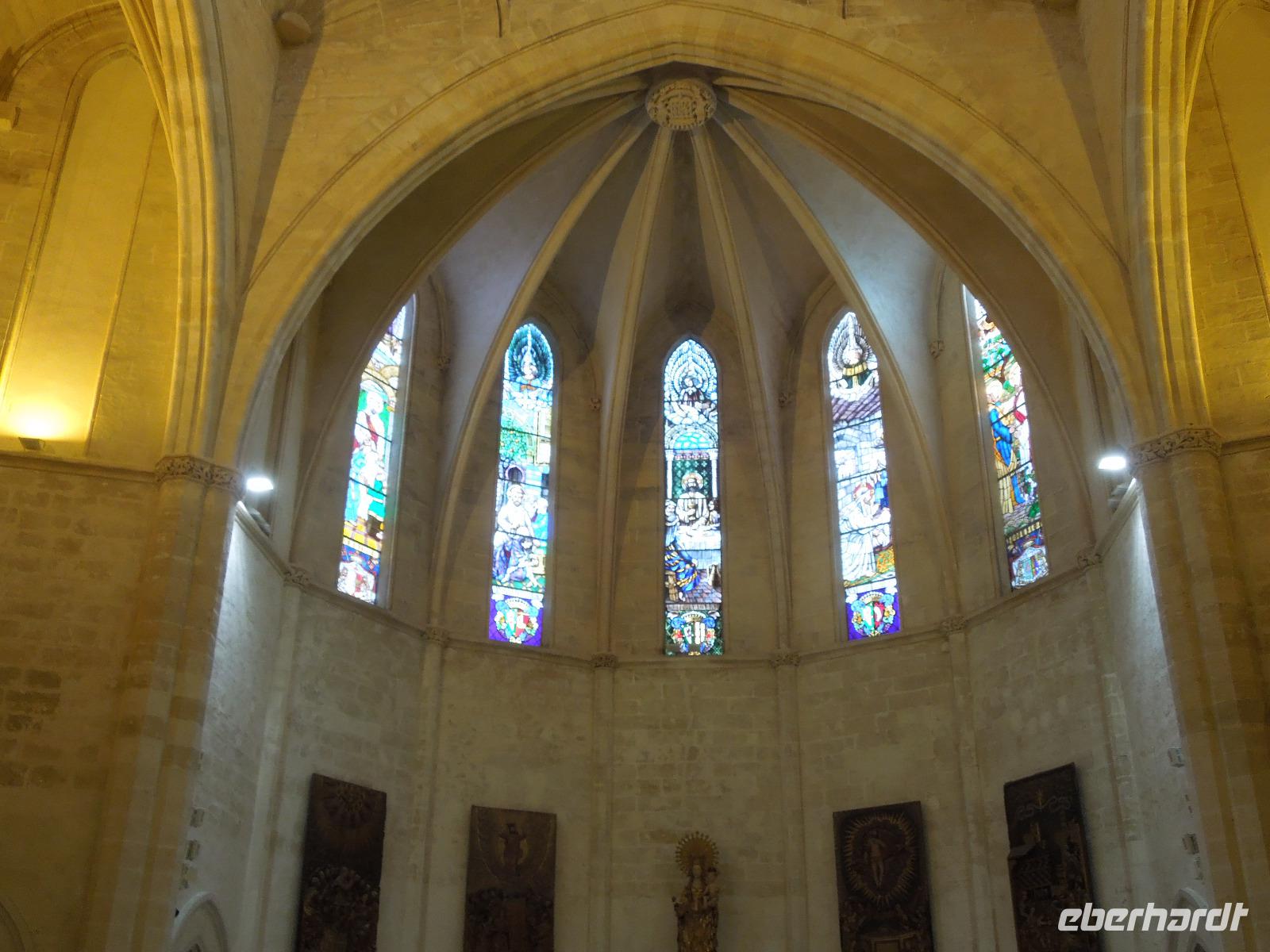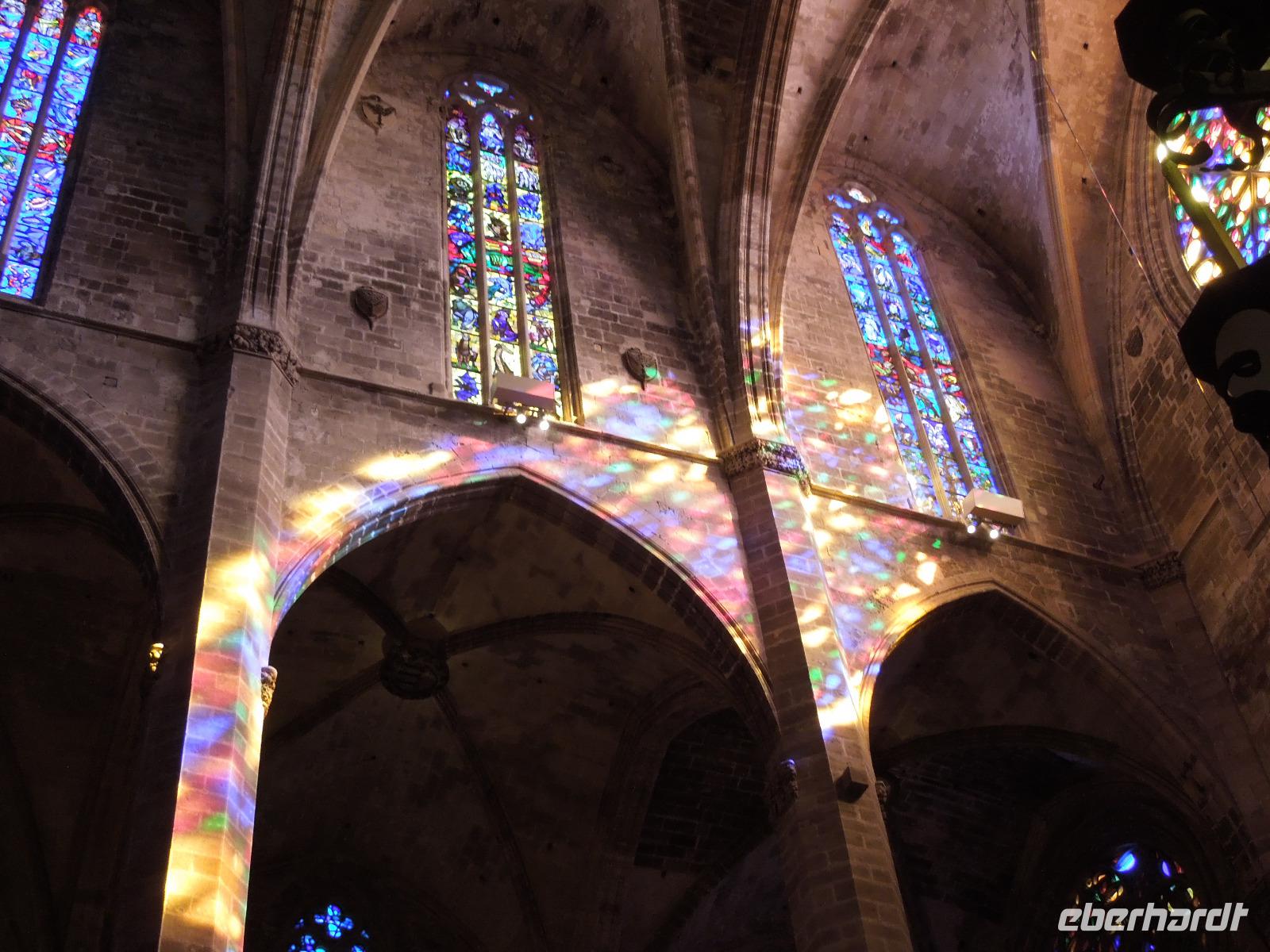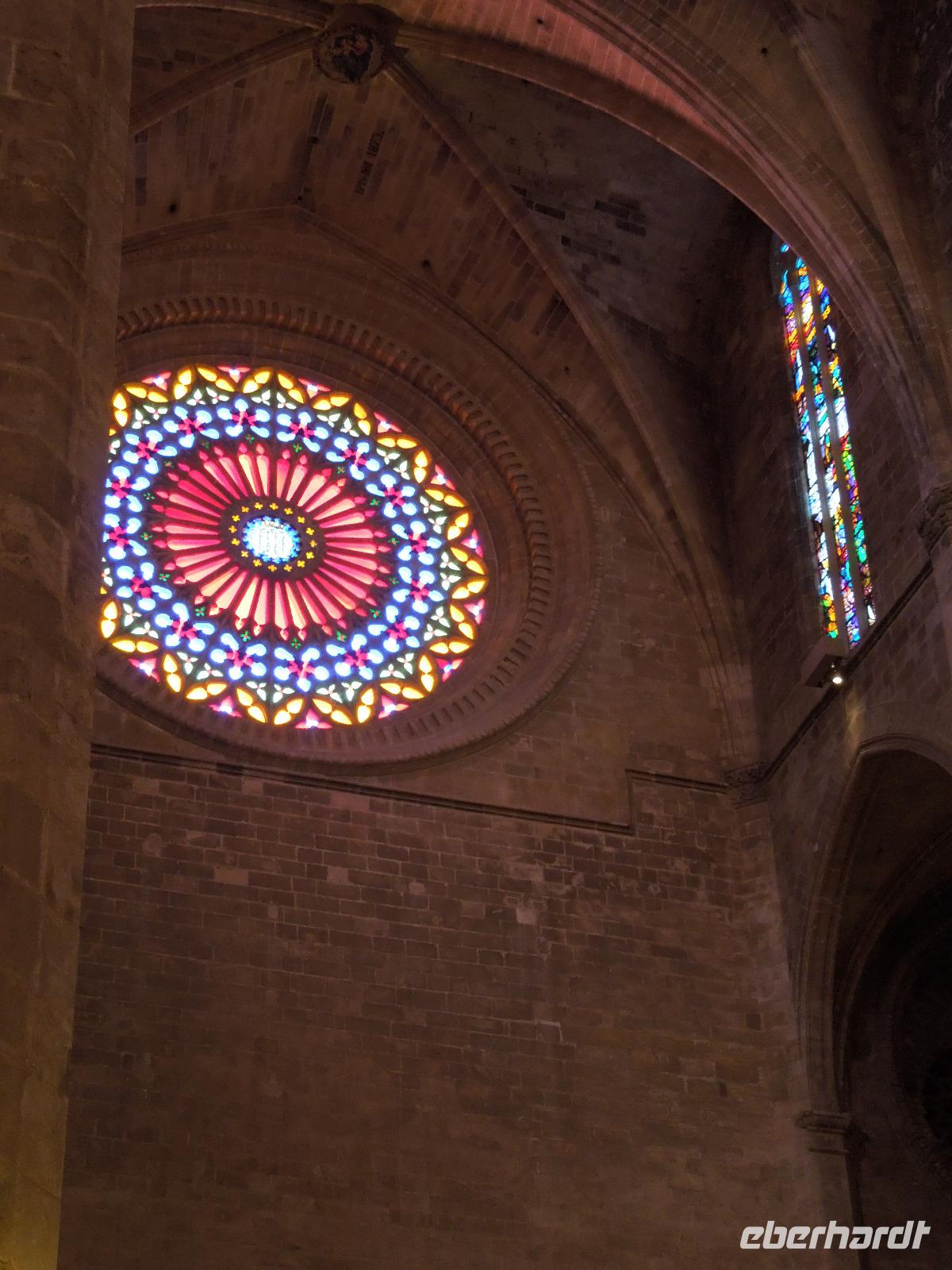 Nach einem ausgiebigen Frühstück fuhren wir mit unserem Busfahrer Christopher und unserer Reiseleiterin Magdalena in die lebendige Hauptstadt Mallorcas - Palma. Zuerst fuhren wir vorbei an der Kathedrale des Lichts zum Schloss Bellver, das in einiger Entfernung zur Stadt über die Bucht von Palma wacht. Die Festung aus dem 13./14. Jahrhundert ist die einzige Rundburg Spaniens und wurde auch als Gefängnis genutzt. Im Innenhof befindet sich ein doppelstöckiger Rundgang, der auch zum Dach der Anlage führt. Von dort hatte man einen fantastischen Blick auf ganz Palma und natürlich auch den Hafen. Nach einer Besichtigung durch Magdalena fuhren wir auch schon weiter zur Kathedrale la Seu. Die Kathedrale ist das Wahrzeichen der Hauptstadt. Der Legende nach hat ein Sturm Jaume I. bei seiner Reise über die Inseln überrascht und er hat die Jungfrau um Hilfe bittend ein Versprechen abgegeben, dass wenn er aus dieser Gefahr mit seinem Leben davonkommen sollte, er ihr zu Ehren eine Kirche bauen lässt. Der Bau der Kirche dauerte fast 400 Jahre. Im Inneren befindet sich eine riesige aus Glas bestehende Fensterrose, die bei Sonne ein buntes Lichtspiel zaubert. Anschließend besuchten wir eine der Markthallen Palmas und nahmen am bunten Treiben dort teil. Es gab eigentlich fast alles: Fisch, Fleisch, Käse, Gemüse, Obst, Kuchen... Danach zeigte uns Magdalena den Placa d' Espanya. Dort fuhr ein öffentlicher Bus wieder zum Hotel zurück. Hier gab es nun verschiedene Möglichkeiten: gleich oder später die ganze Strecke mit dem Bus fahren, die Hälfte der Strecke fahren und die andere Hälfte laufen oder gar die ganze Strecke zum Hotel zurück zu laufen. Nach einem gemeinsamen Abendessen, bei dem wir uns unsere Erlebnisse erzählten, gingen wir ins Bett.