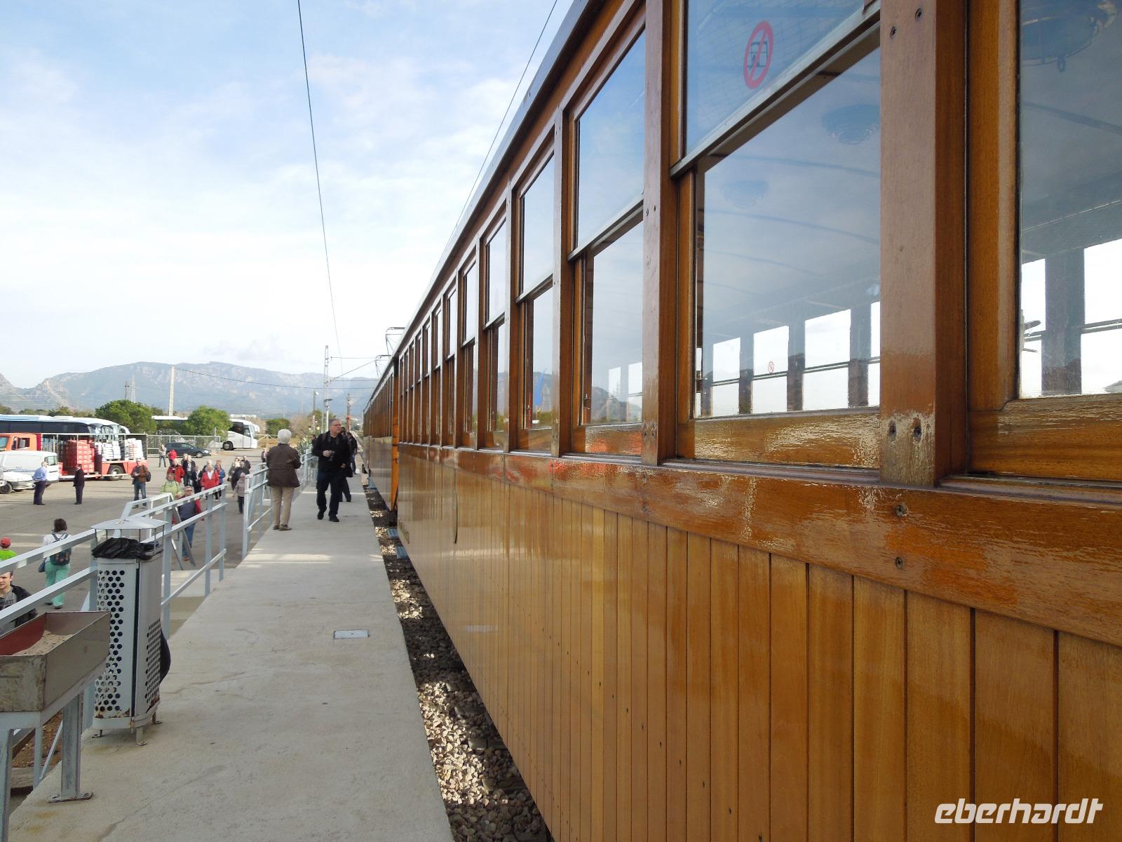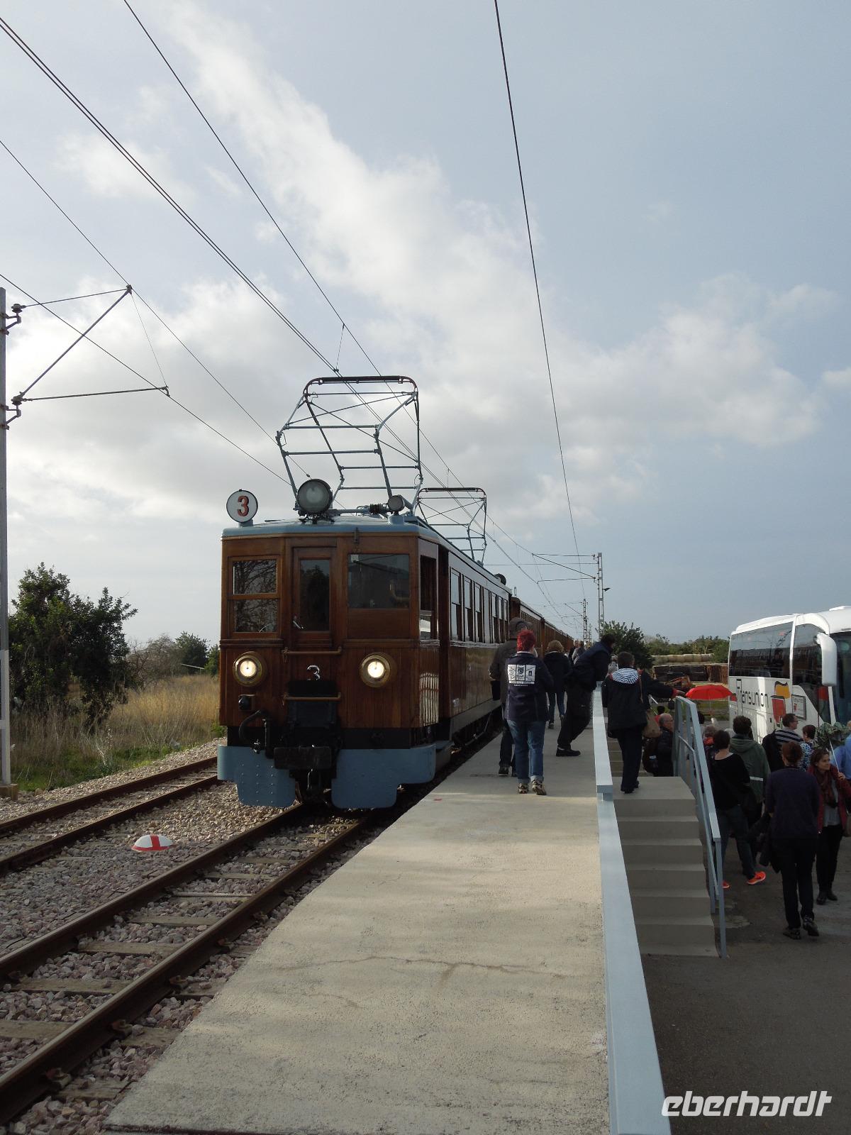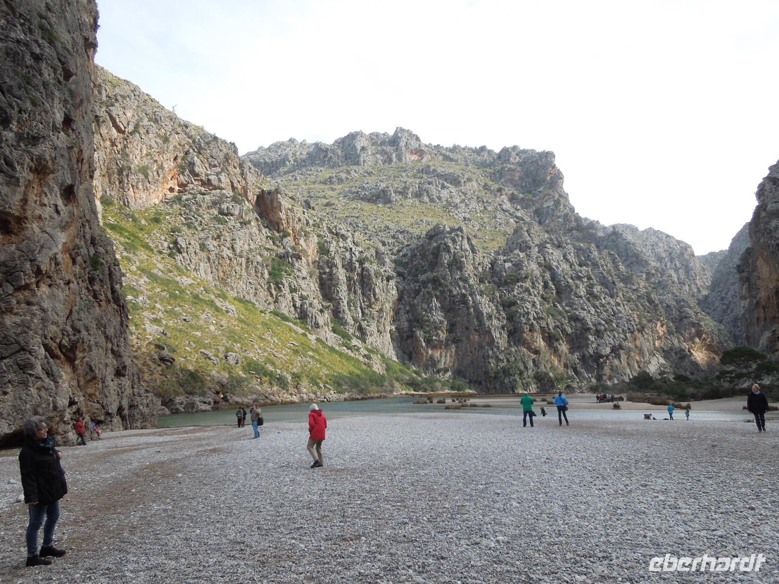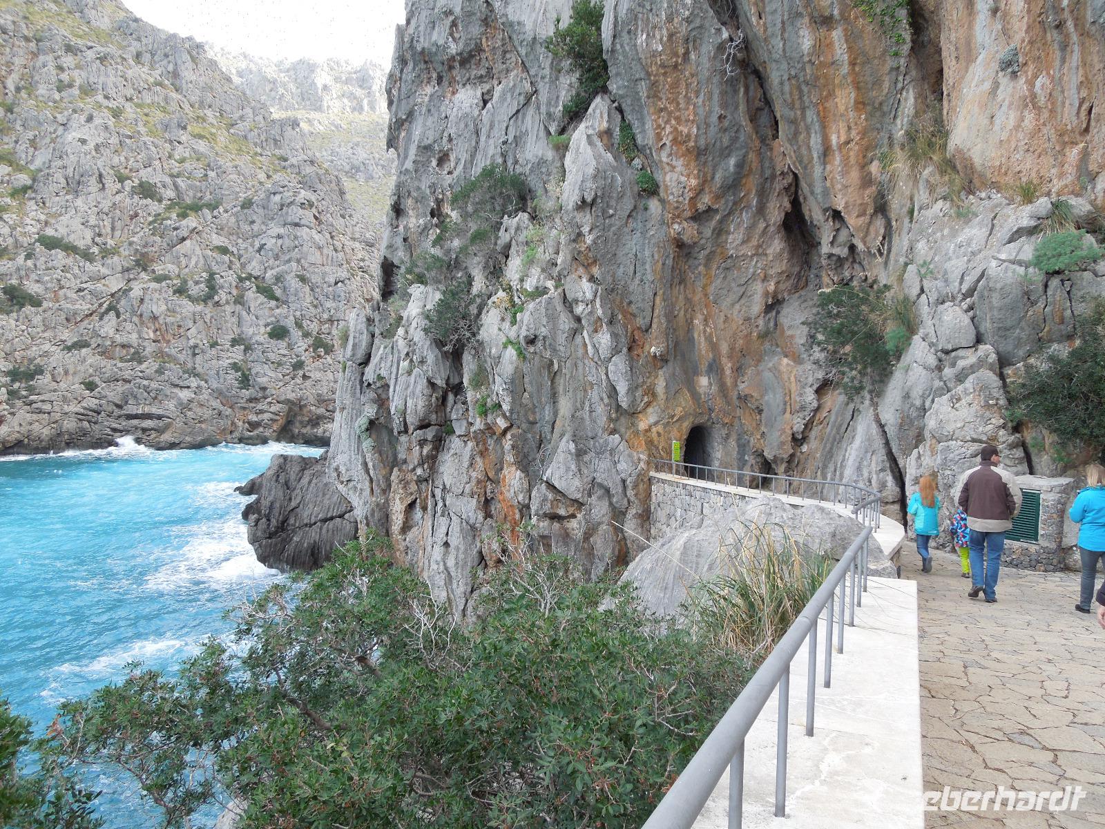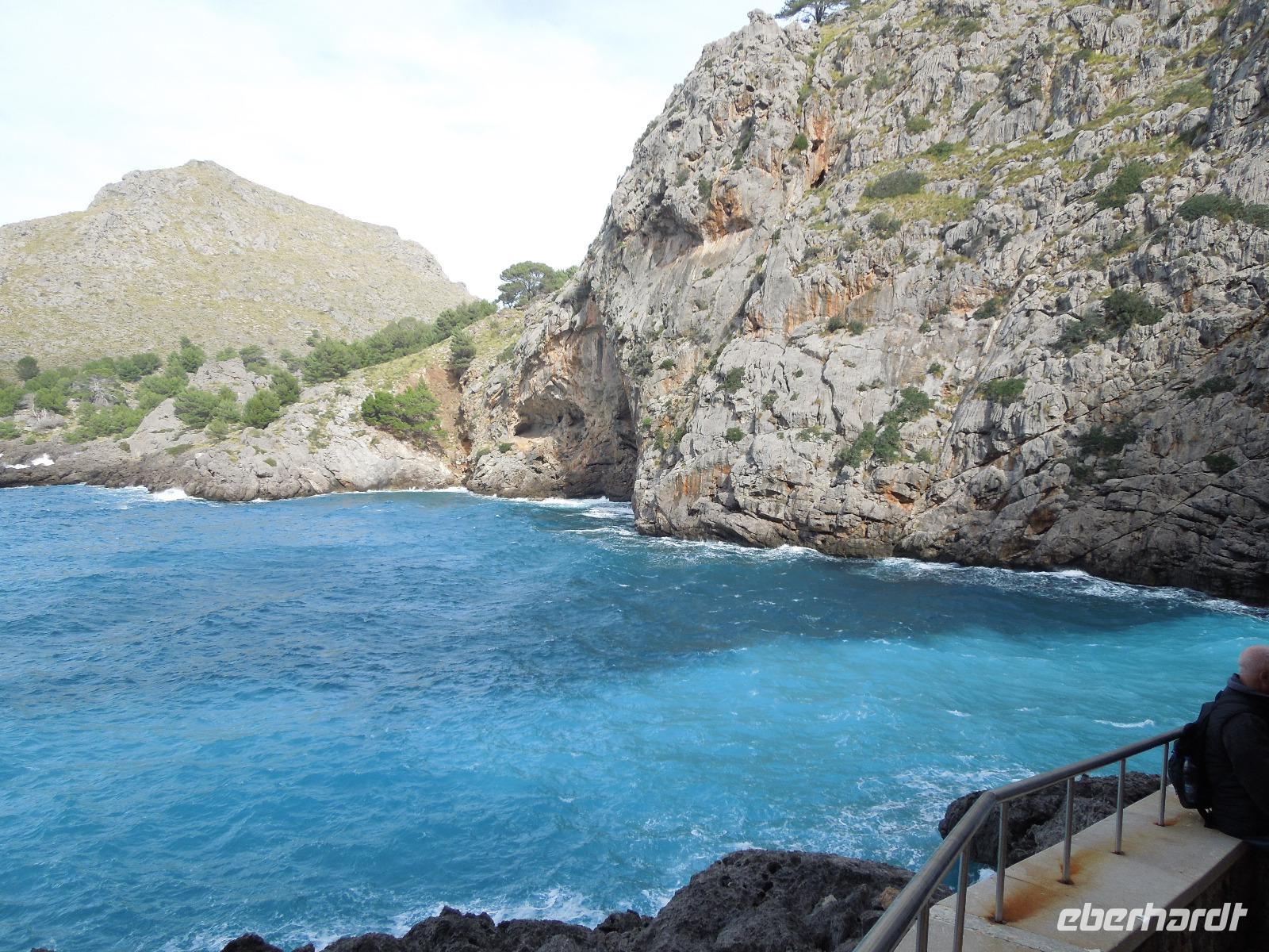 Heute stand eine Inselrundfahrt auf dem Programm. Zuerst fuhren wir kurz hinter Palma, um dort in den Roten Blitz, eine nostalgische Eisenbahn, einzusteigen. Die Schmalspurbahn ist 100 Jahre alt und verbindet Palma mit Sóller. Sie brachte uns durch 13 Tunnel und viele kleinere Ortschaften nach Sóller, das Zentrum des Orangentals an der Nordwestküste Mallorcas. Erzherzog Ludwig Salvator hielt sie für die schönste Ortschaft der Insel. In Sóller stiegen wir in die Straßenbahn und fuhren nach Port de Sóller, dem Hafen von Sóller. Es ist der einzige Hafenort an der Nordwestküste. Hier machten wir eine kleine Pause. Leider fiel die Bootsfahrt nach Sa Calobra aus, da an diesem Tag sehr hoher Wellengang war. Nach unserer Pause fuhren wir mit dem Bus an der beeindruckenden Küste entlang durch das malerische Tramuntana-Gebirge. Unterwegs machten wir einige Fotostopps, um die grandiose Landschaft zu fotografieren. Über viele Serpentinenstraßen mit einem Höhenunterschied von 700 Metern führte unser Weg nach Sa Calobra. Christopher lenkte den Bus geschmeidig über die engen Straßen und brachte uns sicher ans Ziel. Sa Calobra ist ein sehr schöner Naturhafen Norden der Insel. Zwischen zwei riesigen Felsformationen liegt die kleine Bucht Cala de sa Calobra. Das Wasser ist klar und erstrahlt in einem kräftigen Blau. Hinter dem Strand befindet sich der Wildbach Torrent de Pareis. Hier machten wir unsere Mittagspause. Da die Bootstour ausgefallen war, fuhren wir anschließend zum Kloster Lluc und besichtigten es gemeinsam mit Magdalena. Das Kloster ist Mallorcas bedeutendster Wallfahrtsort und ein spirituelles Zentrum in herrlicher Gebirgslage. Danach fuhren wir wieder zurück zu unserem Hotel an der Playa de Palma und nahmen dort gemütlich unser Abendessen ein.