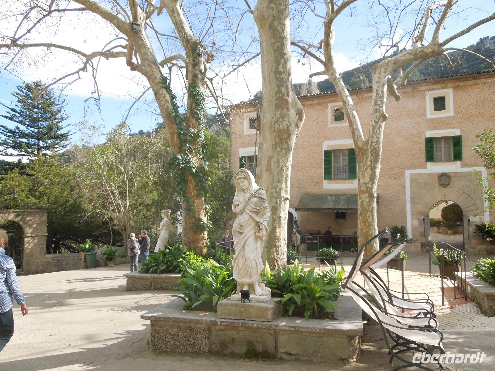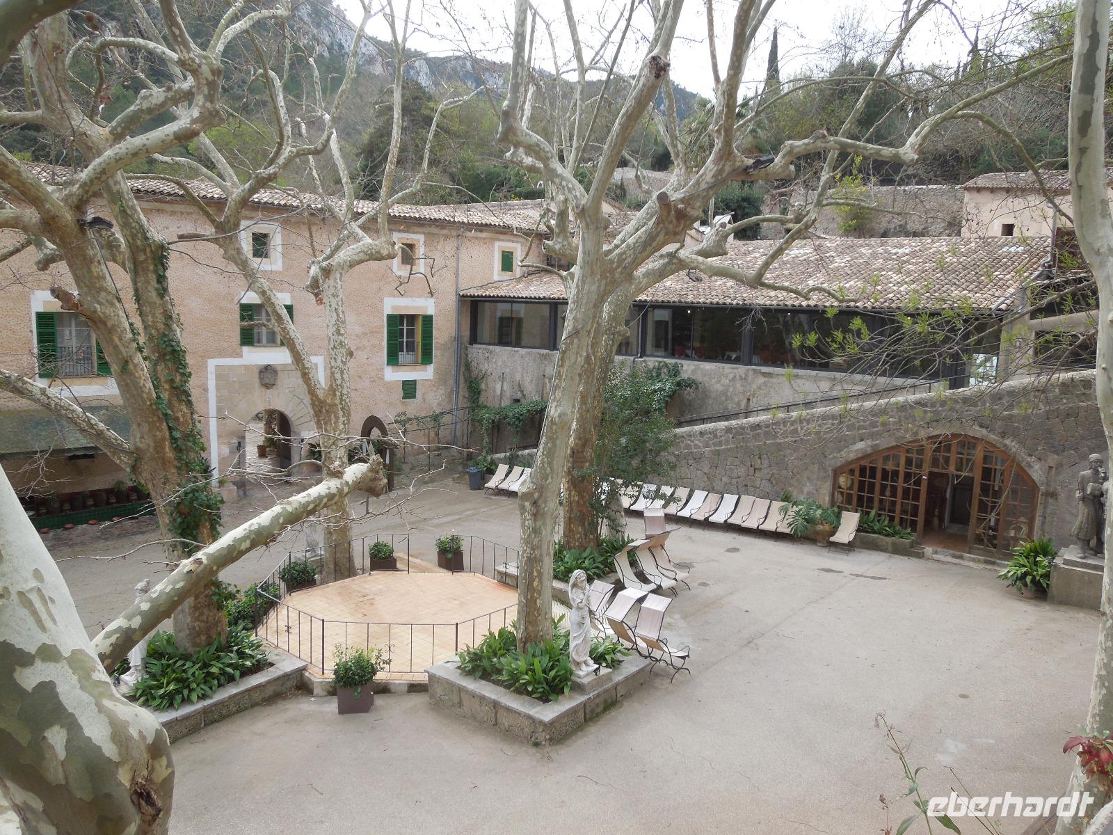 Unser heutiger Ausflug führte uns ins idyllische Tramuntana-Gebirge. Dabei fuhren wir zuerst in das romantische Dorf Valldemossa. Im Nordwesten Mallorcas, in 410 m Höhe, liegt der malerische Ort. Er ist berühmt geworden durch ein Liebespaar, das den Winter 1838/39 hier verbrachte. Fréderic Chopin und seine Lebensgefährtin, die Schriftstellerin Georg Sand. Sie hatten die Wintertage auf Mallorca unterschätzt, die gerade hier, im regenreichen Nordwesten, äußerst ungemütlich sein können. In Valldemossa besichtigten wir das Kloster. Martin I., König von Aragon, gründete im Jahre 1399 das Kloster Cartuja de Jesús Nazareno des Kartäuserordens. Das heute als Kartause von Valldemossa bekannte Kloster zählt zu den berühmtesten Sehenswürdigkeiten der Baleareninsel Mallorca. Bereits im Jahre 1835 wurden die Mönche aus dem Kloster vertrieben, und die einzelnen Klosterzellen verkauft. Diese neun Zellen befinden sich noch immer in Privatbesitz und beherbergen heute unterschiedliche Museen. Sehenswert ist die von 1751 bis 1812 erbaute neoklassische Kirche, eine alte Apotheke des Kartäuserklosters mit den Orignal Apothekergefäßen aus dem 17. und 18. Jahrhundert und die Bibliothek. Anschließend lauschten wir den schönen Klängen eines kleinen Klavierkonzerts. Danach blieb noch Zeit um die romantischen Gassen Valldemossas zu erkunden, Souvenirs zu kaufen oder einen Café zu trinken. Wir fuhren wieder durch die malerische Landschaft des Tramuntana-Gebirges. Unsere Mittagspause machten wir in Sóller, wo wir ein paar Tage vorher bereits mit der Straßenbahn durchgefahren waren. Später besuchten wir das spanische Dorf in Palma. Westlich der Altstadt im Stadtviertel Son Españolet liegt das Pueblo Español (spanisches Dorf). Es handelt sich um das Projekt eines spanischen Architekten, der ein besonderes Architekturmuseum mit originalgetreuen Nachbauten bedeutender Gebäude, wie etwa spanische Häuser, Paläste, Kirchen und Festungen aus ganz Spanien in etwas kleinerem Format in Palma de Mallorca errichtet hat. Das Projekt wurde im Jahre 1967 fertig gestellt und umfasst ein Gelände von ca. 26.000 qm. Verkehrsfrei, umgeben von einer Mauer und kleinen verwinkelten Kopfsteinpflastergassen entsteht der Eindruck sich inmitten eines mittelalterlichen Ortes aufzuhalten. Nach der Besichtigung fuhren wir wieder zurück zum Hotel und trafen uns einige Zeit später wieder zum gemeinsamen Abendessen.