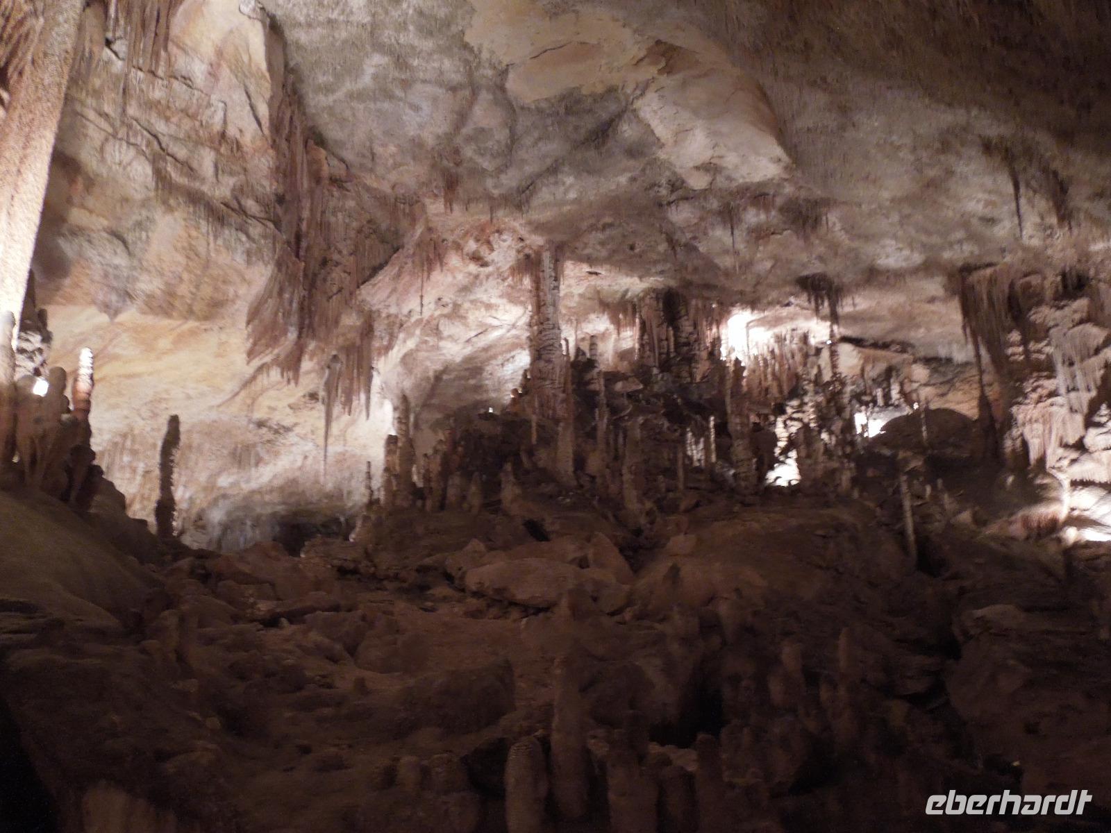 Am heutigen Morgen brachen wir auf, um uns den Osten der Balearen-Insel genauer anzusehen. Zuerst fuhren wir nach San Salvador. Das 1342 gegründete Kloster Santuari de Sant Salvador liegt in 509 Meter Höhe auf dem Berg Puig de Sant Salvador in der Nähe der Stadt Felanitx. Die Ursprünge des Klosters San Salvador lassen sich bis in das Jahr 1348 zurückverfolgen und gehen auf König Pere IV. von Aragón zurück, der den Auftrag für den Bau gab. Die ursprüngliche Pilgerkirche wurde nach einer Pestwelle auf dem gleichnamigen Berg gebaut. Da diese Kirche dem Pilgerstrom nicht mehr gewachsen war, entstand im Jahr 1715 die heutige Kirche. 1885 wurde das Gelände von der Stadt Felanitx versteigert. Bis zum Jahre 1992 wurde das Kloster von Mönchen verwaltet, seit 1992 steht es unter der Leitung zweier mallorquinischer Familien, die hier ein Restaurant betreiben und Zimmer vermieten. Nach der Besichtigung und einer kleinen Pause ging es weiter Richtung Porto Christo. Dort bestaunten wir die einzigartige Drachenhöhle. Das Tropfsteinhöhlensystem befindet sich am Ortsrand von Porto Cristo im Gemeindegebiet von Manacor. Die Höhle erstreckt sich über eine Länge von rund 1.200 Metern. Die Gänge liegen stellenweise bis zu 25 Meter unter der Erdoberfläche. Im Inneren der Höhlen befinden sich neben dem Martelsee noch sechs weitere Seen. Der Martelsee ist einer der grössten unterirdischen Seen der Welt mit etwa 170 Metern Länge, 30 Metern Breite und 4 bis 12 Metern Tiefe. Bei einem kleinen Konzert lauschten wir den fantastischen unterirdischen Klängen und fuhren anschließend über den Martelsee. Später machten wir eine längere Mittagspause in Porto Christo. Geprägt wird der Ort durch seinen schönen Yachthafen und der beidseitig von Felsen geschützten Hafeneinfahrt. Danach fuhren wir zum familiengeführten Weingut Vinya Taujana. Von außen sieht es eigentlich ganz unscheinbar aus - das am Rande des Örtchens Santa Eugènia gelegene, neu gebaute Gut Vinya Taujana der Gebrüder Crespí Coll. Kaum einer vermutet, dass die von außen eher kleine Bodega tief in die Erde reicht und somit viel größer ist, als sie zunächst erscheint. Über drei Stockwerke hinweg ist hier alles zu finden, was die Traube zum Wein macht. Tief unten in der Erde, geschützt vor der starken Hitze des mallorquinischen Sommers, finden sich die Weine. Im fast heilig anmutenden großen Fasskeller, reifen sie bei gedämpftem Licht bis zu ihrer Vollendung heran. Als kleine Überraschung gab es dort eine Führung durch die Räumlichkeiten mit anschließender Verkostung verschiedener Weinsorten und kleinen typisch spanischen Snacks. Hier verabschiedeten wir uns auch schon mal in gemütlicher Runde von unserer Reiseleiterin Magdalena und unserem Buschauffeur Christopher. Wir sprachen ihnen unseren Dank für die wunderschöne Reise aus und fuhren anschließend wieder zum Hotel zurück. Hier nahmen wir wieder unser gemeinsames Abendessen ein.