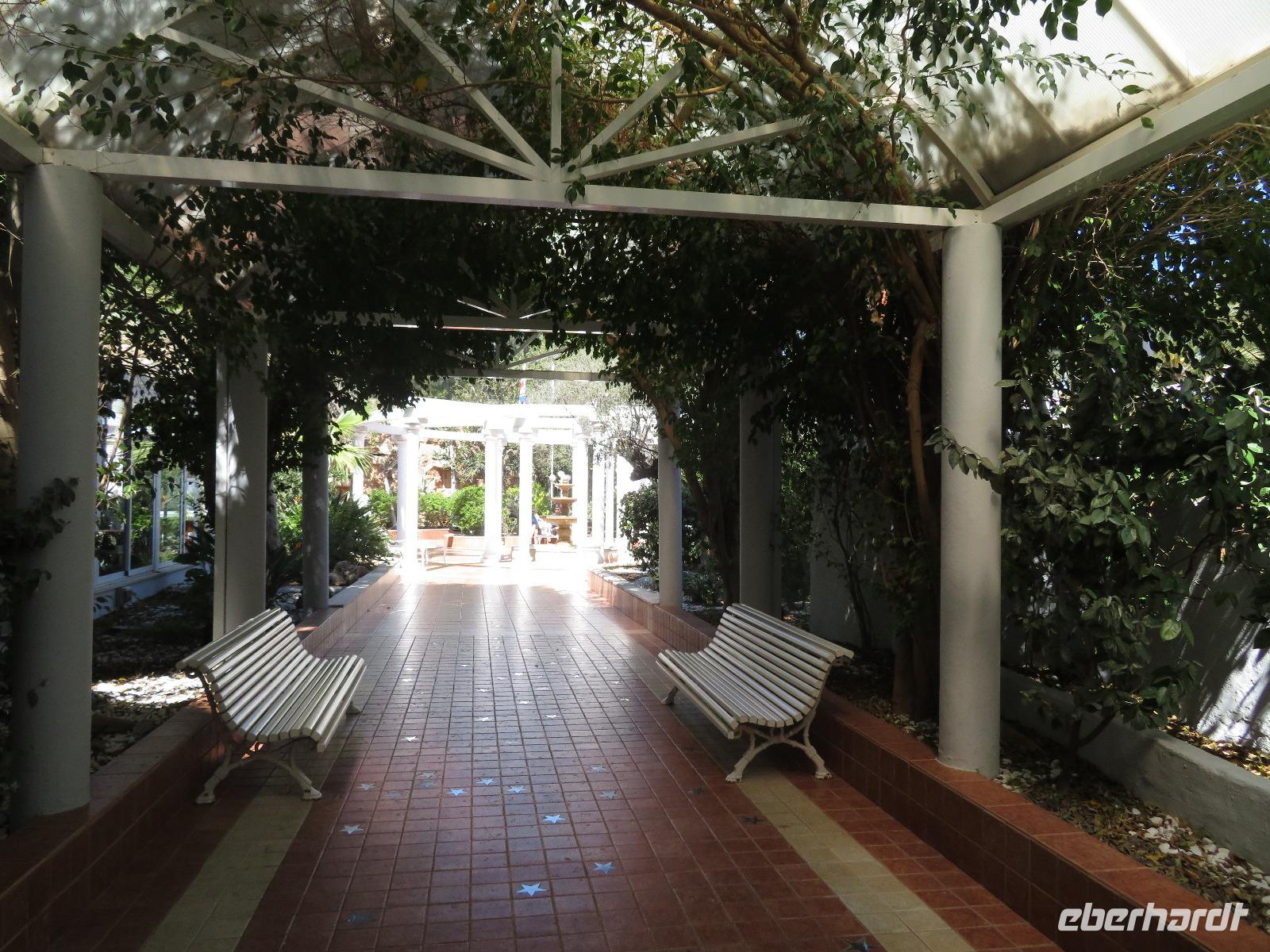 Die idyllisch angelegte Gartenanlage mit den vielen bunten Blumen beeindruckte uns.