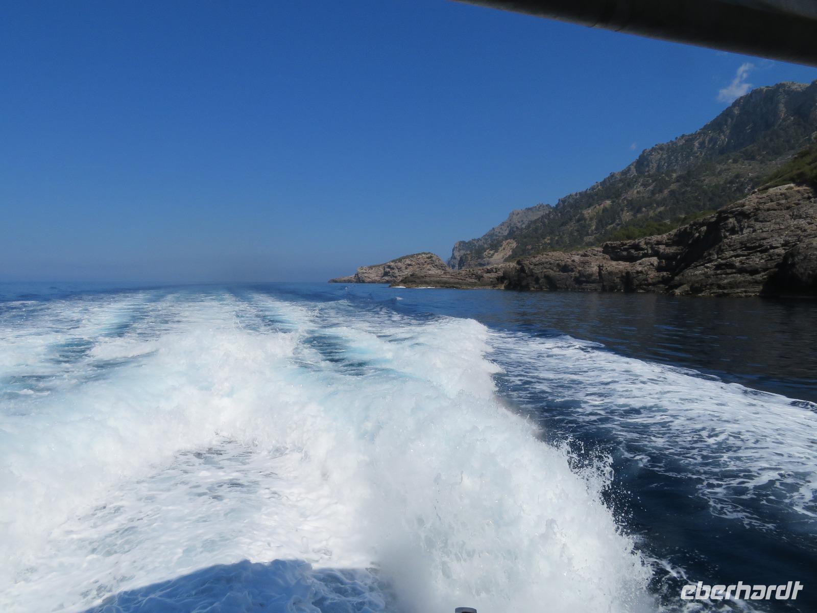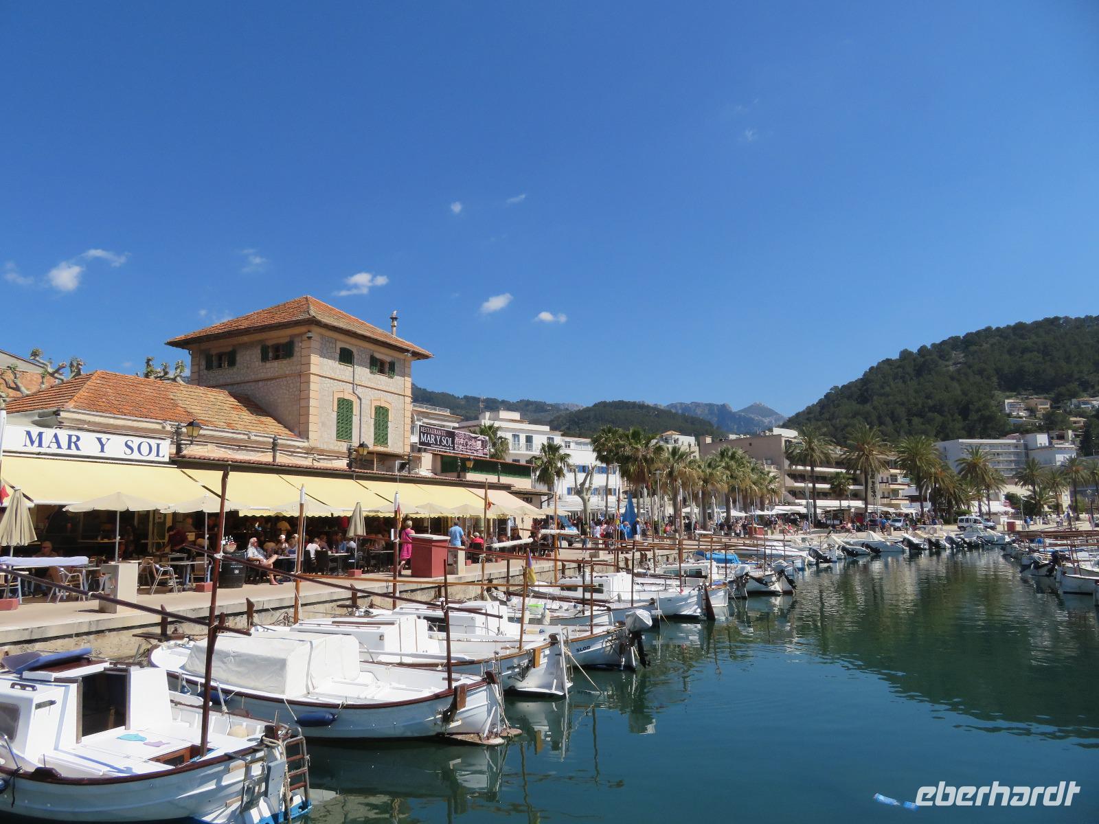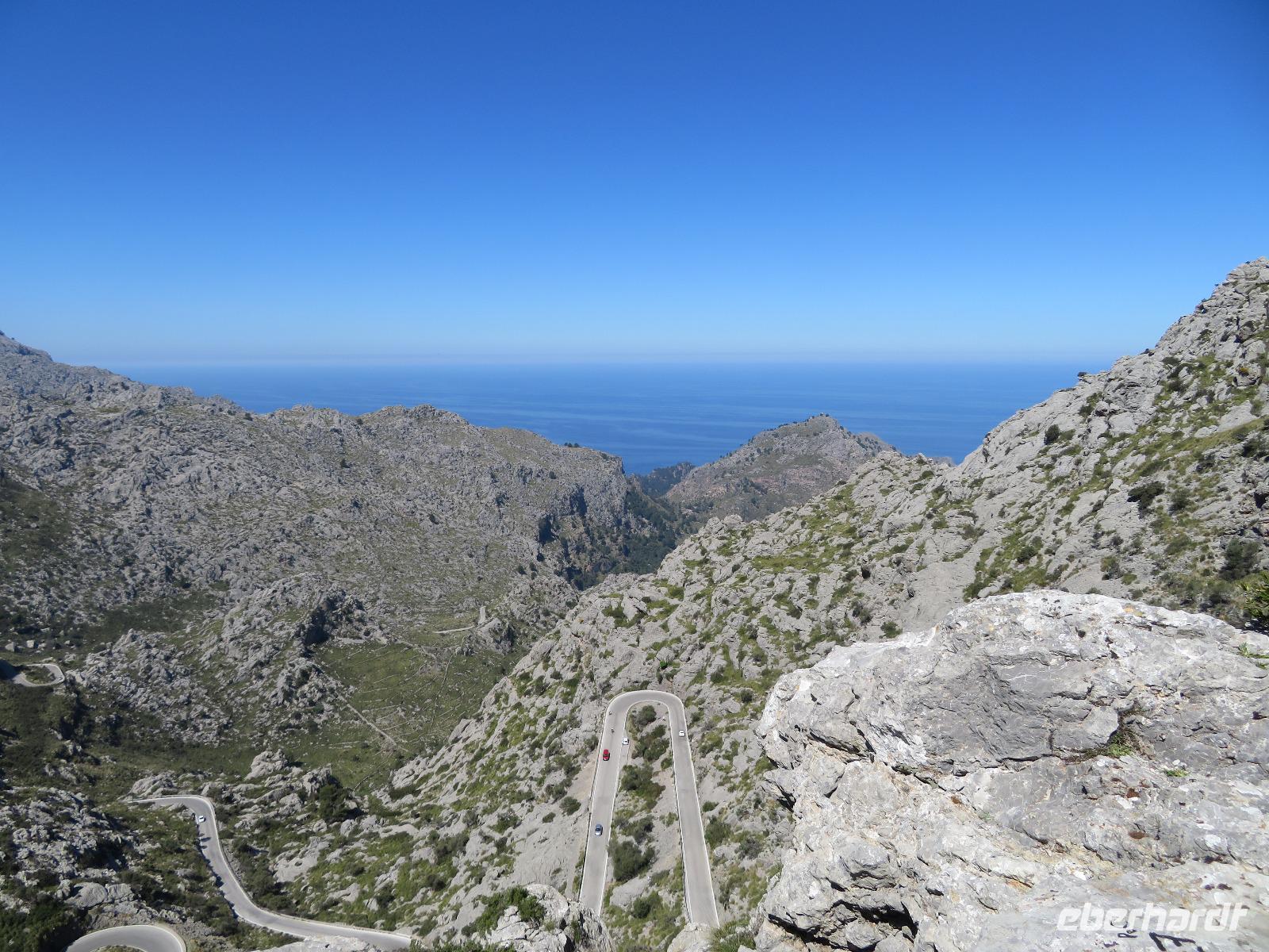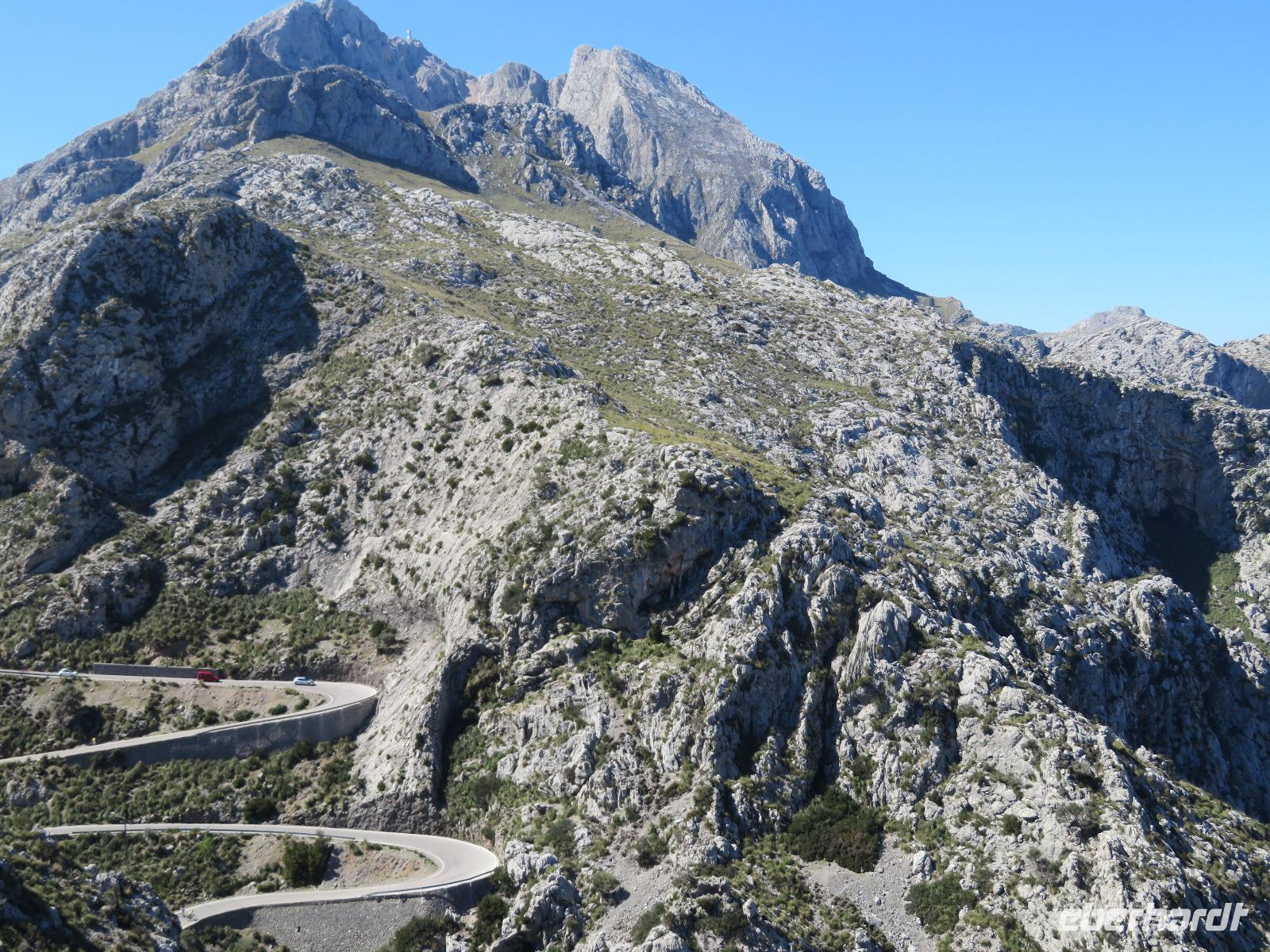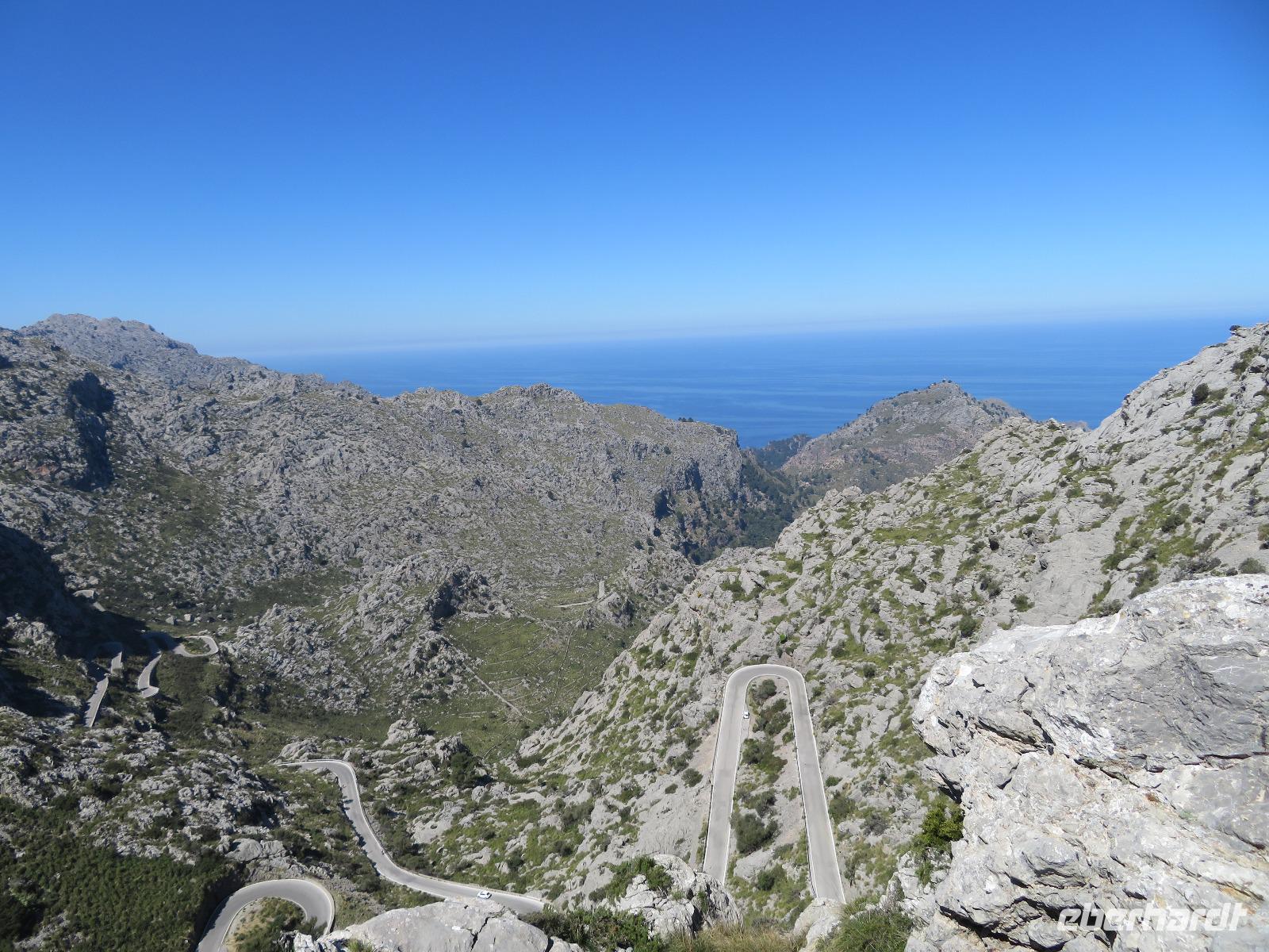 Am sogenannten Kravattenknotten machten wir einen Fotostopp. Viele Serpentinen im Tramuntana Gebirge führten uns hinauf und hinunter. Dabei waren immer unzählige Radfahrer unterwegs. Nach einer Mittagspause in dem kleinem Fischerdorf Sa Calobra ging es aufs Schiff. Vorbei an der Steilküste ging die romantische Fahrt bis Port de Soller. Dort gab es wieder eine kleine Pause, um den Ort kennenzulernen. Gemeinsam stiegen wir dann in die historische Straßenbahn (1913) und fuhren bis Soller. Dort stiegen wir in den bekannten "roten Pfeil", die Eisenbahn, um. Sie ist ein MUSS. Durch 13 Tunnel und über 2 Brücken ging es Richtung Palma zurück. Unser Bus wartete bereits und im Hotel trafen wir uns später wieder zum Essen.