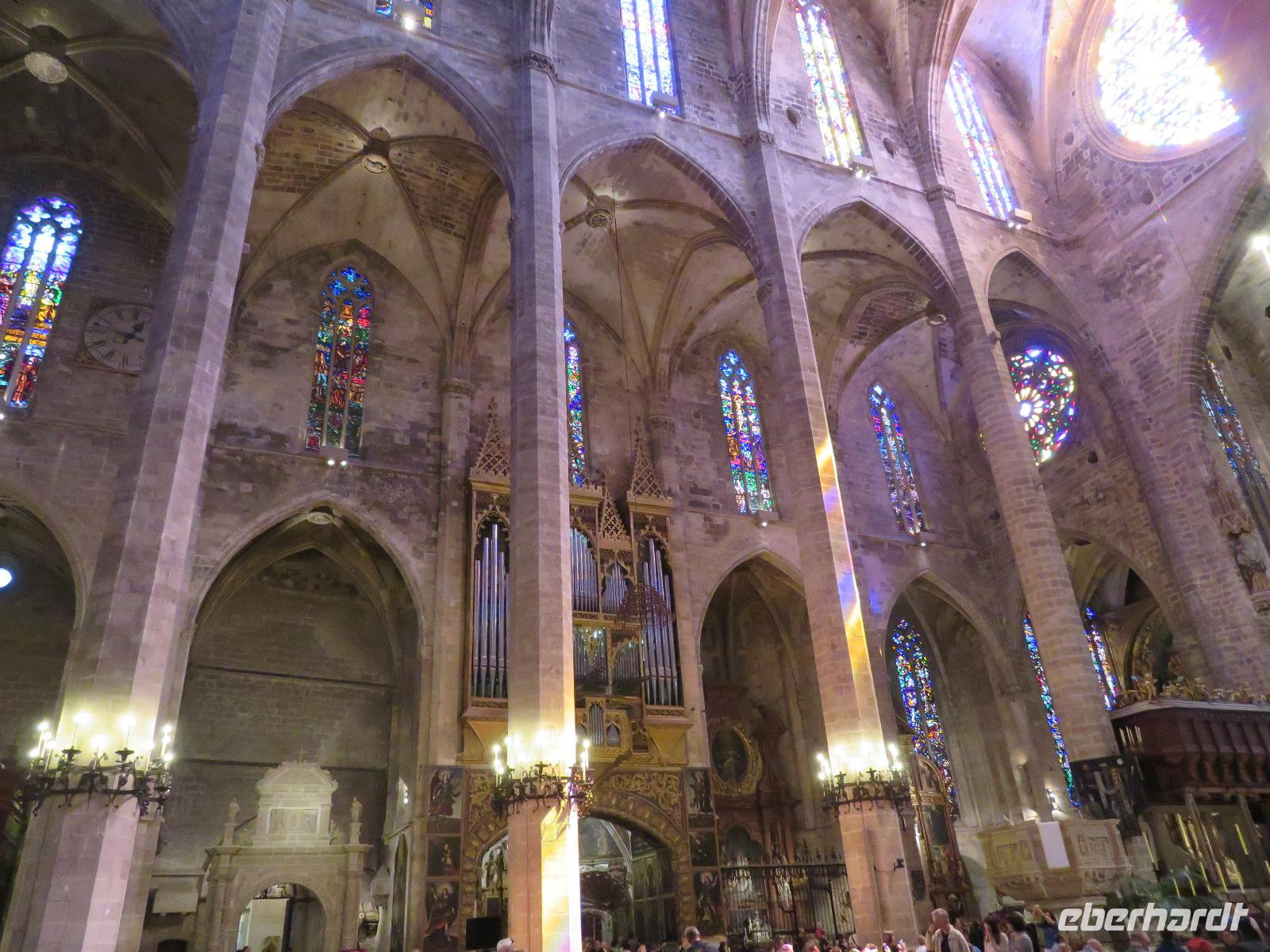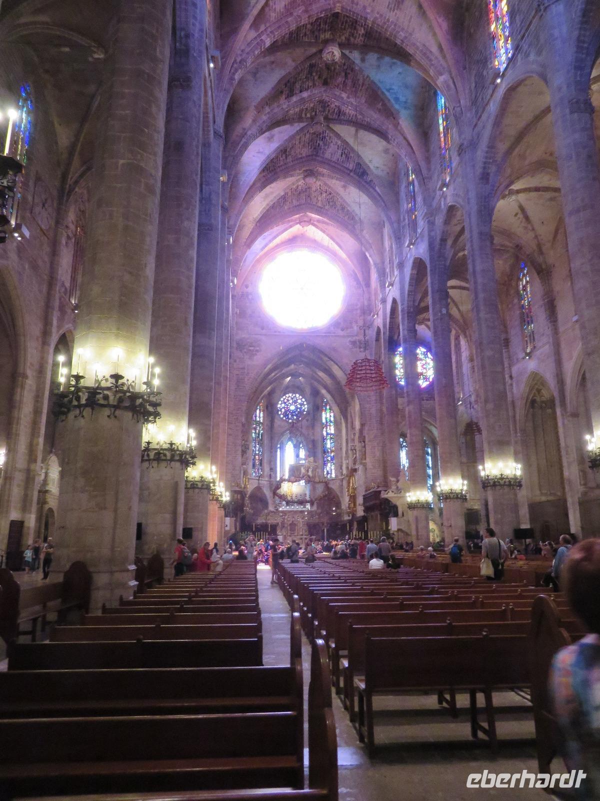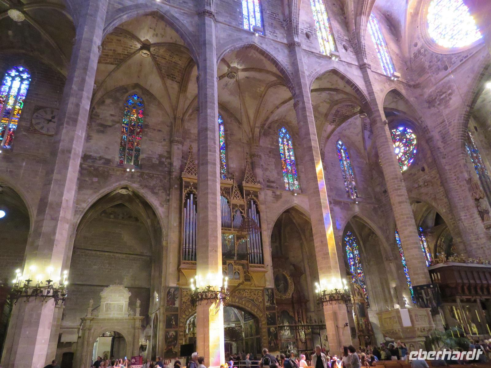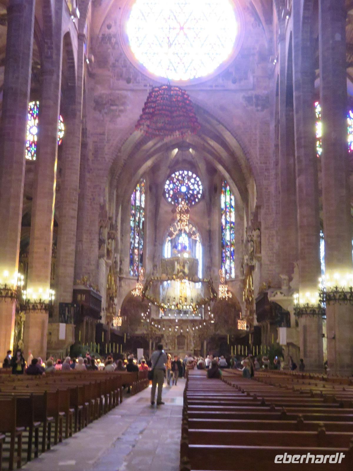 Nach einer wiederum kurzen Busfahrt ging es hinunter zur Kathedrale "La Seu". Das Wahrzeichen Palmas strahlte in der Sonne. Magdalena erzählte uns viel über die Geschichte und die Entstehung, des gotischen Bauwerks. Die großen bunten Fenster (Durchmesser von 11,5 m) gaben ein tolles Licht.