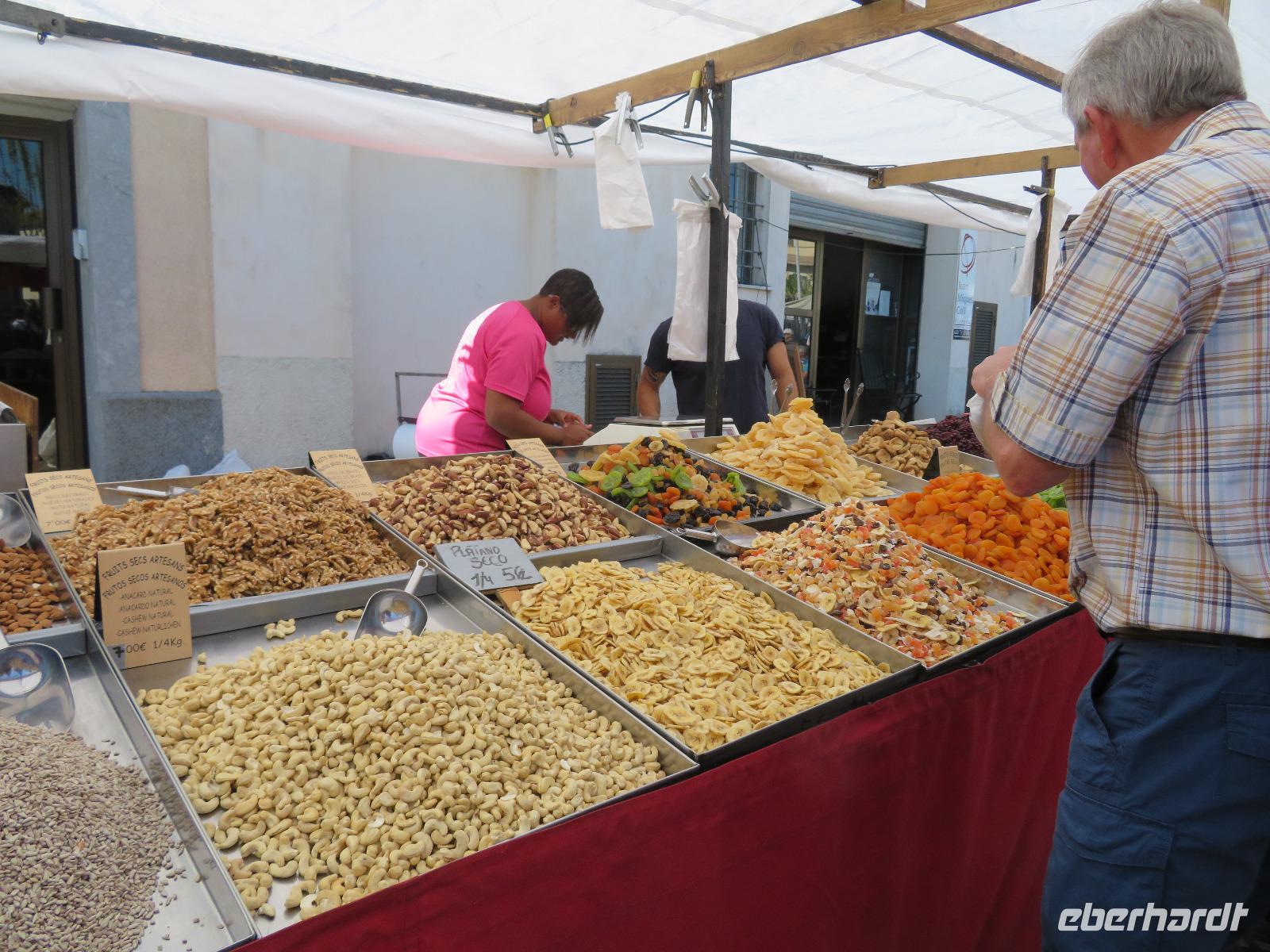 Kurz vor 9 trafen wir uns mit Isabel unserer heutigen Reiseleiterin am Bus. Sie zeigte uns als erstes den großen Wochenmarkt in Sineu. Dort konnte man alles kaufen. Vor allem auch viele Tiere. Esel, schwarze Schweine, Hühner, Hasen, Hunde, Schafe, Ziegen, aber auch Gemüse, Backwaren und Oliven. Es machte Spaß dem bunten Treiben zuzuschauen.