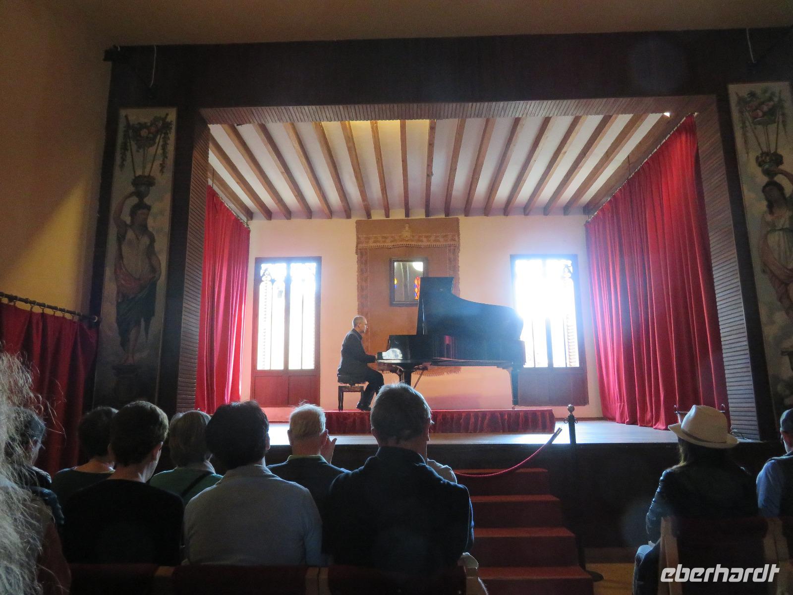 Nachdem uns Magdalena abgeholt hatte, ging es mit dem Bus nach Valldemossa. Dort besichtigten wir das Kloster und die vielen Räume, wie die historische Apotheke, die Bibliothek und die Wohnräume der Mönche. Wir erfuhren viel über den berühmten Komponisten Frederic Chopin, der hier eine Zeitlang mit seiner Geliebten George Sand wohnte, im Winter 1838/39. Er wollte das gesunde Klima nutzen, um gesund zu werden. Bei einem kleinen Konzert konnten wir seiner Musik lauschen. Später konnten wir dann leckeren selbstgemachten mallorquinischen Mandelkuchen und Schokolade probieren. Nach einer Pause ging es weiter nach Soller. Wir gingen gemeinsam in die Stadt und schauten dem Treiben auf dem Marktplatz zu oder machten Mittagspause.