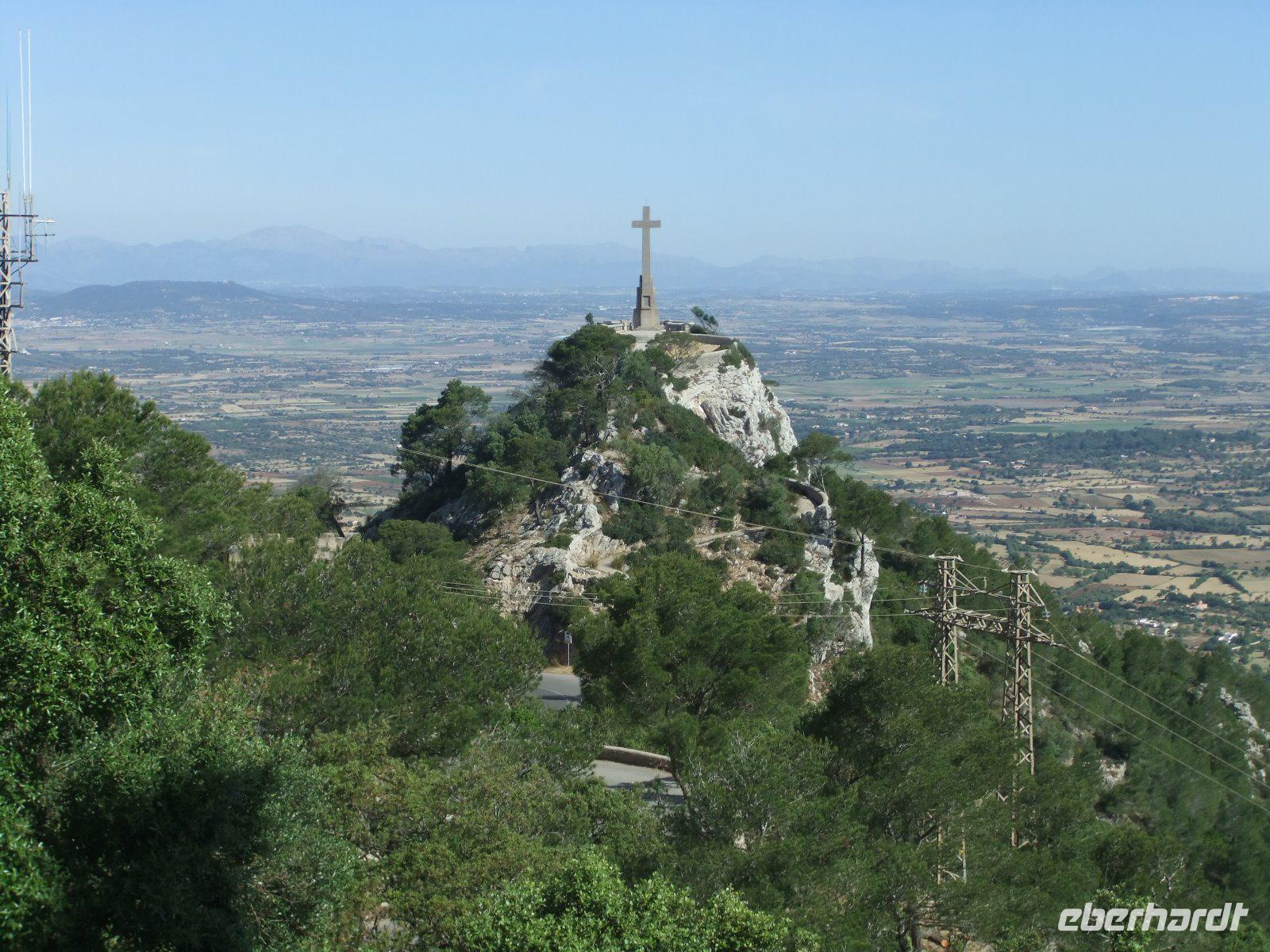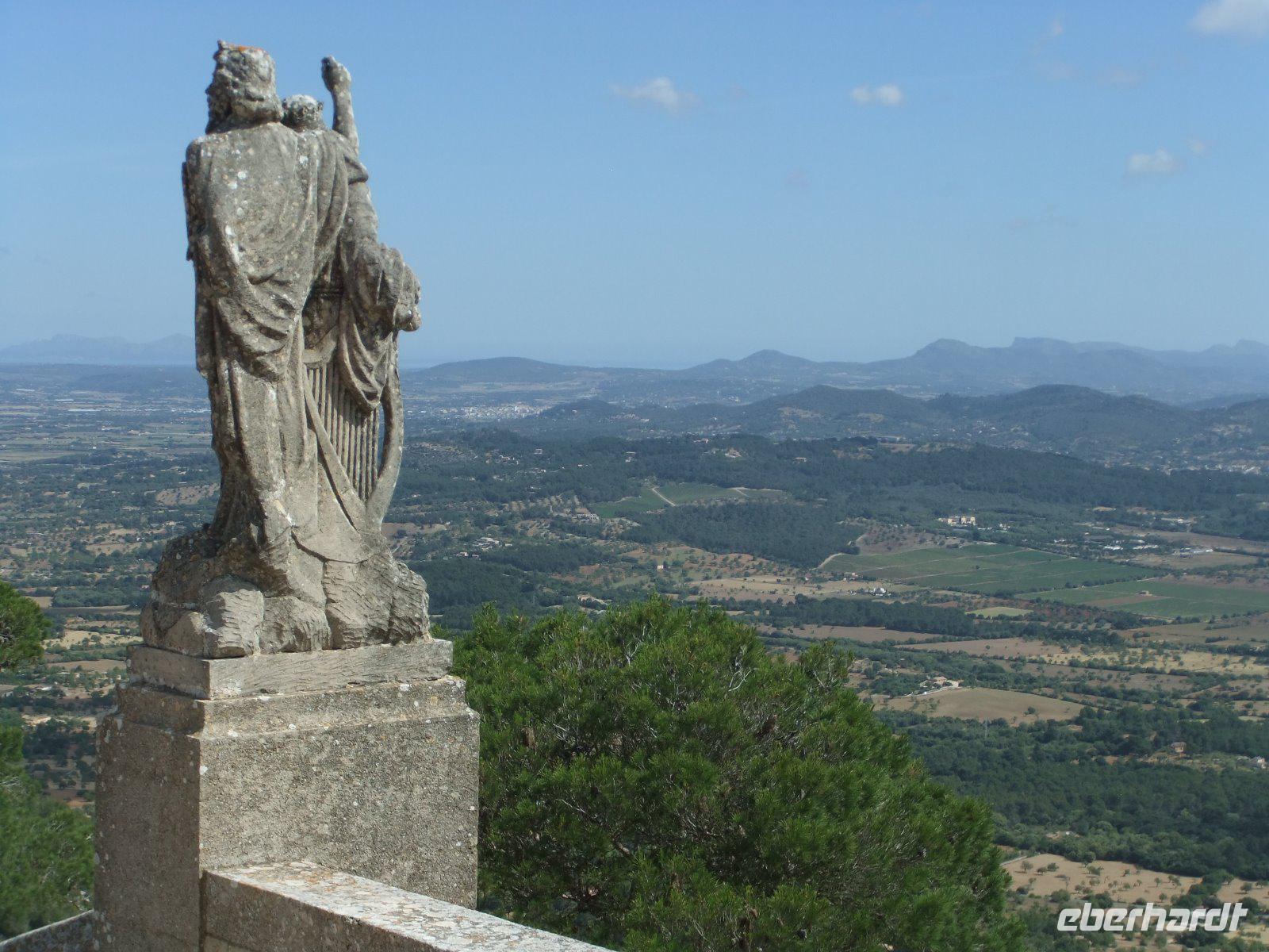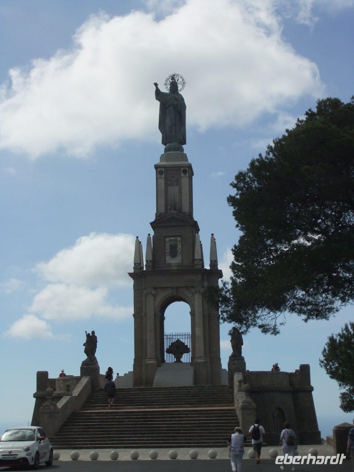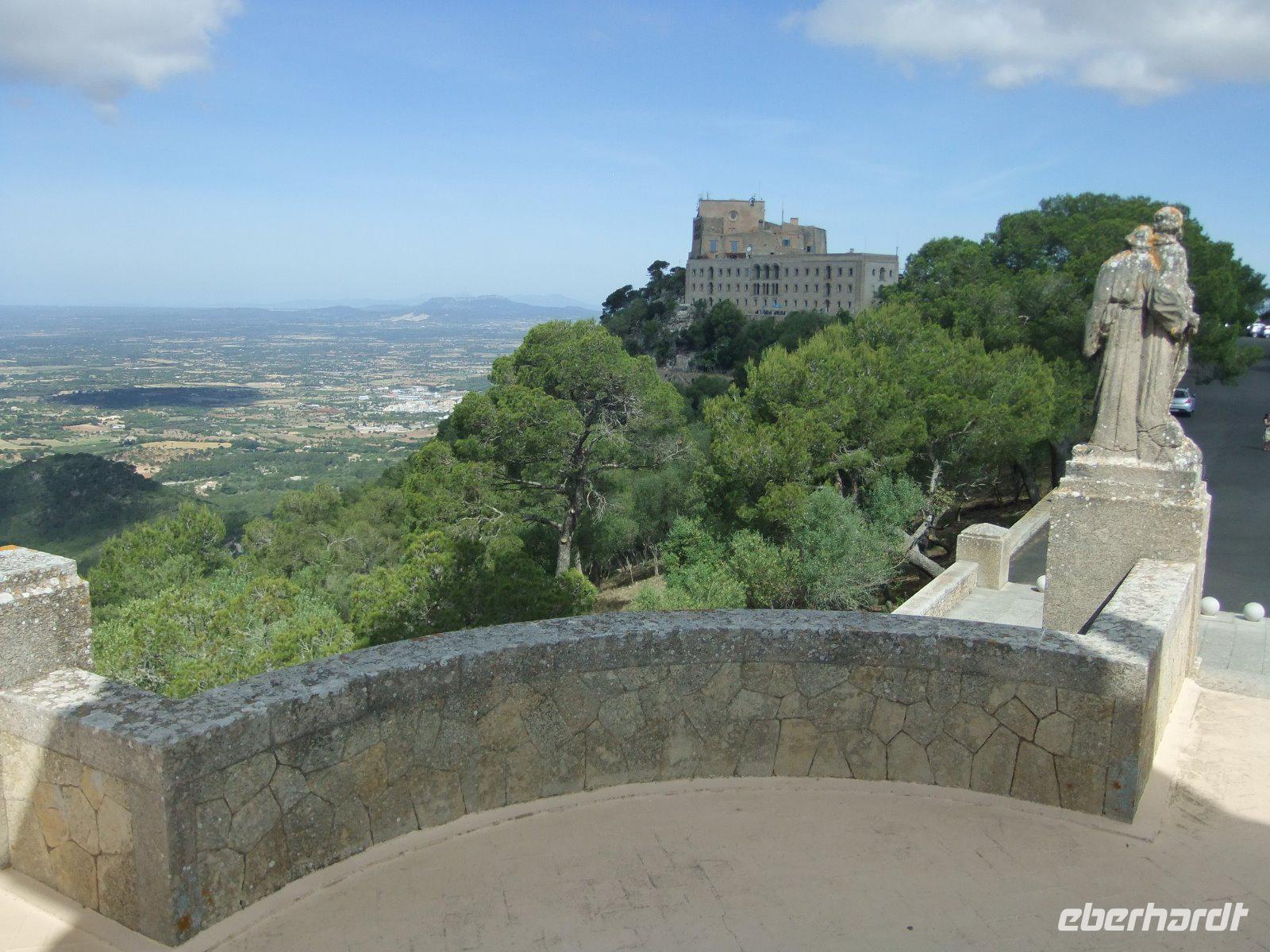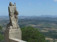 Gut gestärkt vom Frühstücksbuffet - bei dem man u.a. mit Sekt auf die kommenden Tage anstoßen konnte - treffen wir uns im Hotelfoyer. Auch unsere örtliche Reiseleiterin Magdalena können wir heute begrüßen. Sie wird uns in den nächsten Tagen bei interessanten Ausflügen ihre Insel zeigen. Heute soll es in den Westen der Insel gehen. Durch die weite Ebene fahren wir vorbei am Klosterberg Randa und dem Städtchen Campos nach Felanitx. Ab hier schlängelt sich die Straße 4,5 Kilometer über enge Serpentinen hinauf zum Wallfahrtsort San Salvador, dessen großes Steinkreuz schon von weitem zu sehen ist. Oben lauschen wir in der Kirche der Musik von Richard Wagner, bestaunen den Alabaster-Altar und die kleine Madonna. Danach genießen wir bei klarer Sicht den spektakulären Rundblick über ganz Mallorca. Sogar die kleine Insel Cabrera ist heute zu sehen. Zum Abschluss spazieren wir noch über die „Himmelsleiter" zur 7 Meter hohen Christus-Statue.
