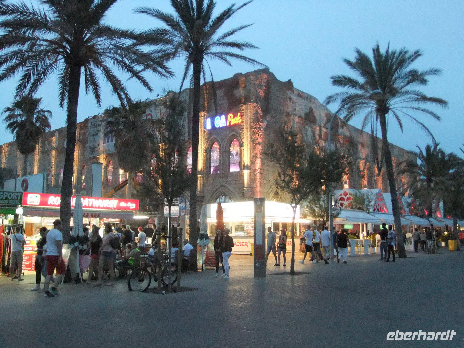Den Abend nutzen die meisten Gäste für einen Bummel entlang der Strandpromenade. Einige Gäste fahren auch mit dem kleinen Touristenzug oder besuchen am „Ballermann 6" die bekannten Lokale „Oberbayern", „Bierkönig" und „Megapark".
