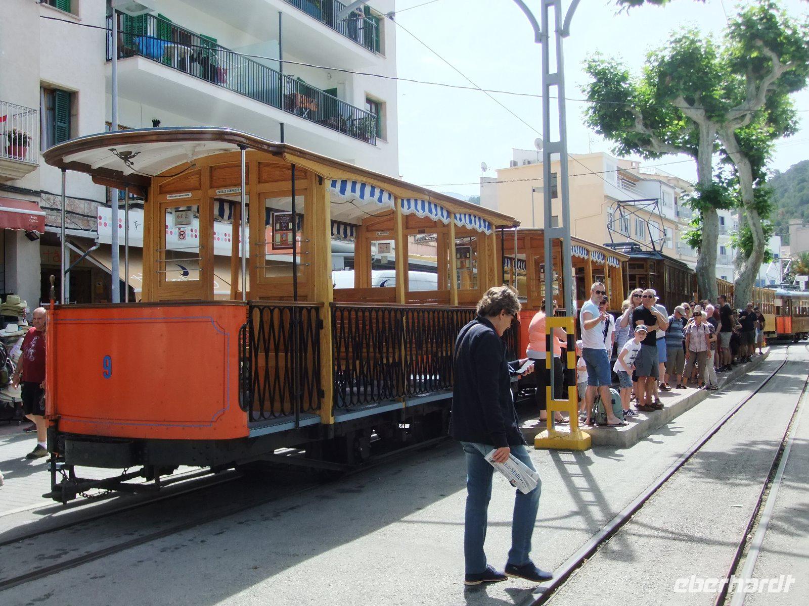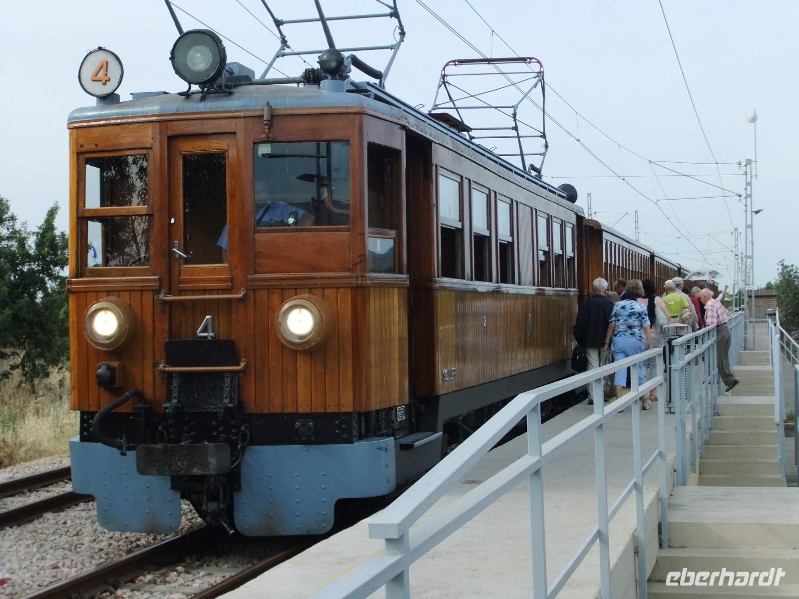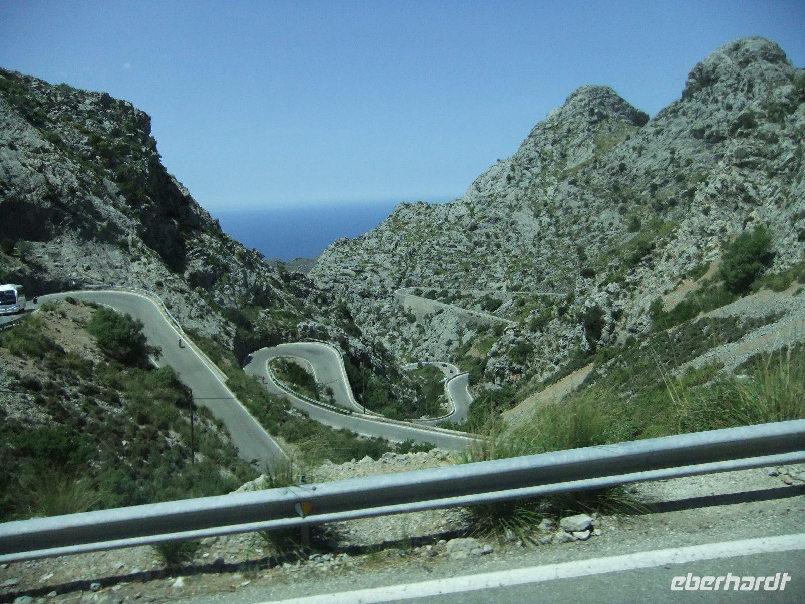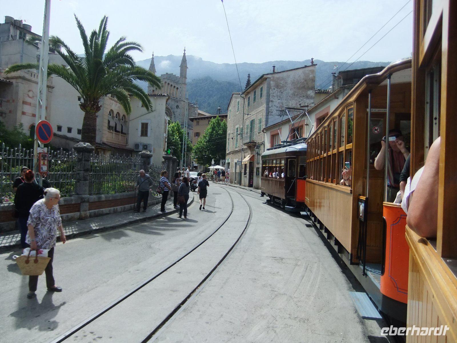 Heute wollen wir den Nordwesten der Insel erkunden. Das Programm verspricht vor allem verkehrstechnisch eine große Abwechslung. Zunächst geht es mit dem Bus in die Nähe der Inselhauptstadt. Hier wechseln wir zum ersten Mal das Verkehrsmittel. Wir steigen ein in den „Roten Blitz". So nennt man die historische Eisenbahn aus dem Jahr 1912. Diese bringt uns gemächlich durch Oliven- und Orangenplantagen und 13 Tunnel. Unterwegs gibt es sogar einen Fotostopp mit Blick auf Soller und den höchsten Berg der Insel, den Puig Major. In Soller steigen wir um in das nächste nostalgische Verkehrsmittel. Diesmal ist es eine Straßenbahn von 1913. Mit ihr fahren wir anfangs über den Marktplatz der Stadt, vorbei an der Kirche und durch die engen Gassen, dann weiter Richtung Meer. Nach 15 Minuten erreichen wir Port de Soller. Nur wenige Schritte sind es bis zum Ausflugsboot, das bereits auf uns wartet. Mit dem Schiff fahren wir entlang der Steilküste. Wir genießen bei bestem Wetter die 45minütige Tour. Dann erreichen wir Sa Calobra. Das Dorf besteht zwar nur aus wenigen Häusern, ist aber aufgrund der schönen Badebucht, in welche der Sturzbach Torrent de Parais mündet, bekannt und beliebt bei Touristen. Die meisten Gäste von uns nutzen die Zeit und spazieren durch die beiden engen Felstunnel zu dieser „Klippenklemme". Dann wird noch ein Gruppenfoto gemacht und mit dem Bus geht es mit immer wieder schönen Ausblicken auf der berühmtesten Serpentinenstraße der Insel durch das Tramuntana-Gebirge. Am sogenannten „Krawattenknoten" machen wir eine kurze Pause, um zu fotografieren und frischgepresstem Orangensaft zu trinken. Bald ist mit 682 Metern die höchste Stelle erreicht. Wir fahren weiter durch Steineichenwälder sowie weite Mandel- und Olivenhaine. Auch am bekannten Kloster Lluc und am Ort Inca, der durch die Schuhproduktion bekannt ist, kommen wir vorbei.