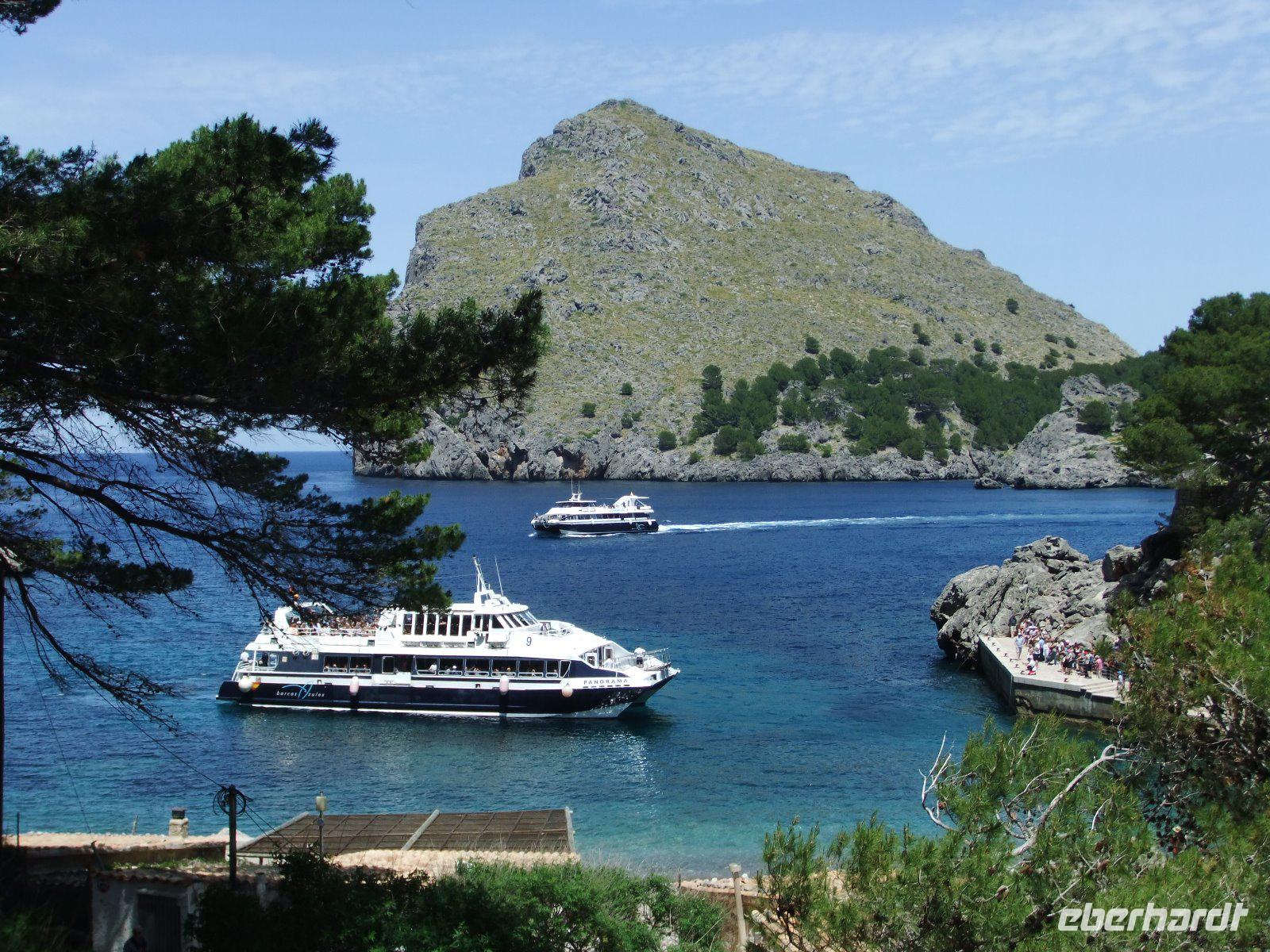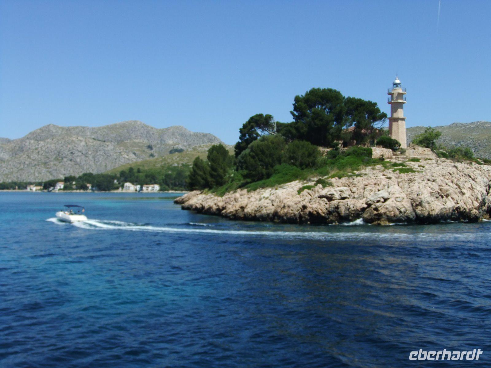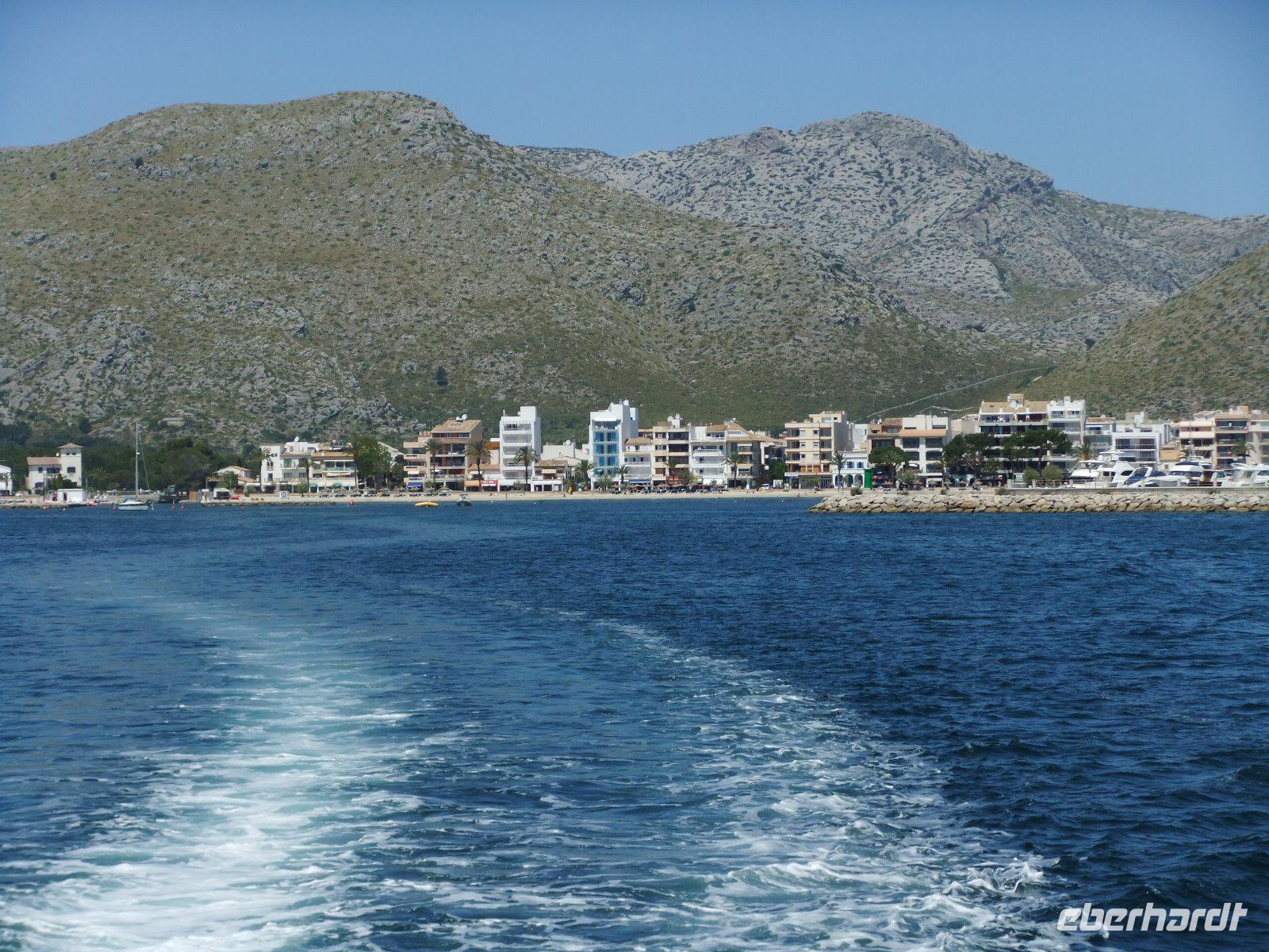 Wir fahren weiter über Llubi, La Puebla und Pollenca nach Port Pollenca. Wie bereits vorgestern wollen wir wieder eine Bootsfahrt unternehmen. Diesmal geht es in rasantem Tempo entlang der Steilküste nach Playa Formentor auf der nördlichen Landzunge der Insel. Hier befindet sich eine besonders schöne Badebucht, an der wir eine Pause machen.