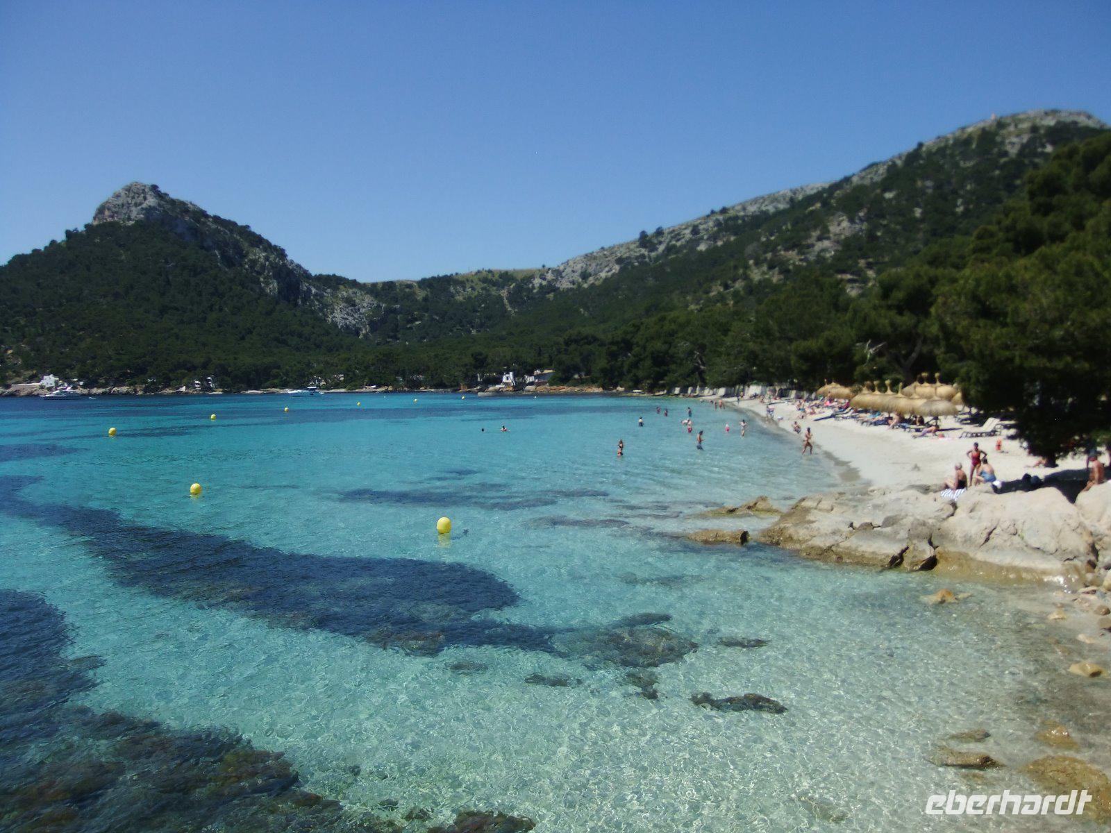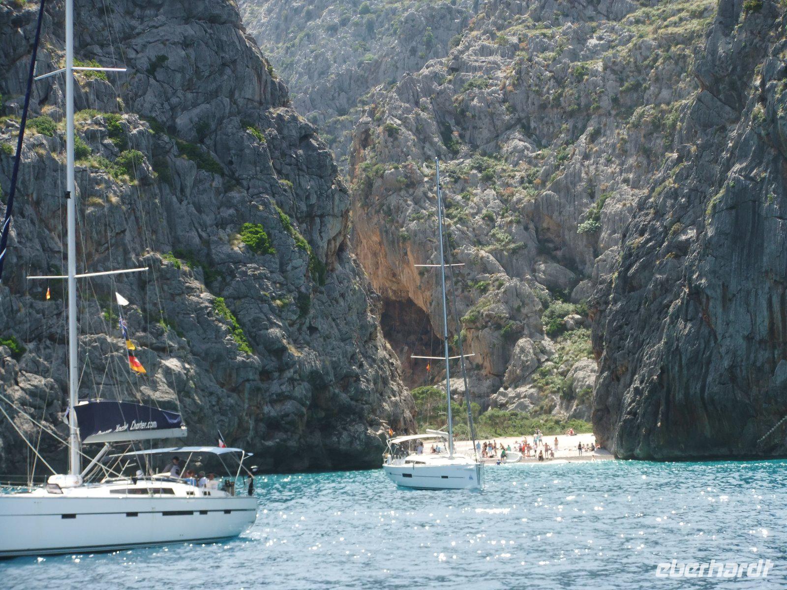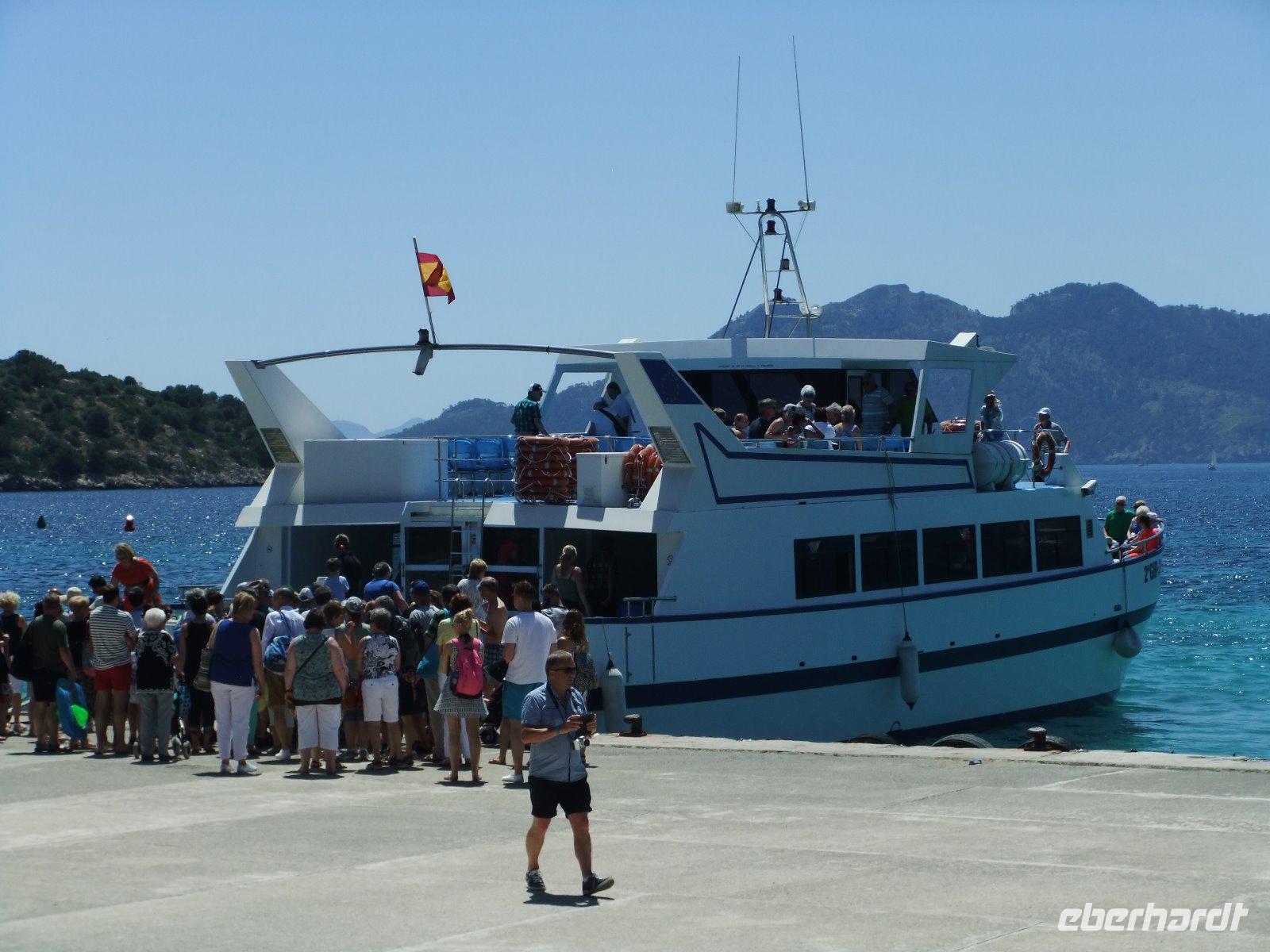 Wir fahren weiter über Llubi, La Puebla und Pollenca nach Port Pollenca. Wie bereits vorgestern wollen wir wieder eine Bootsfahrt unternehmen. Diesmal geht es in rasantem Tempo entlang der Steilküste nach Playa Formentor auf der nördlichen Landzunge der Insel. Hier befindet sich eine besonders schöne Badebucht, an der wir eine Pause machen.