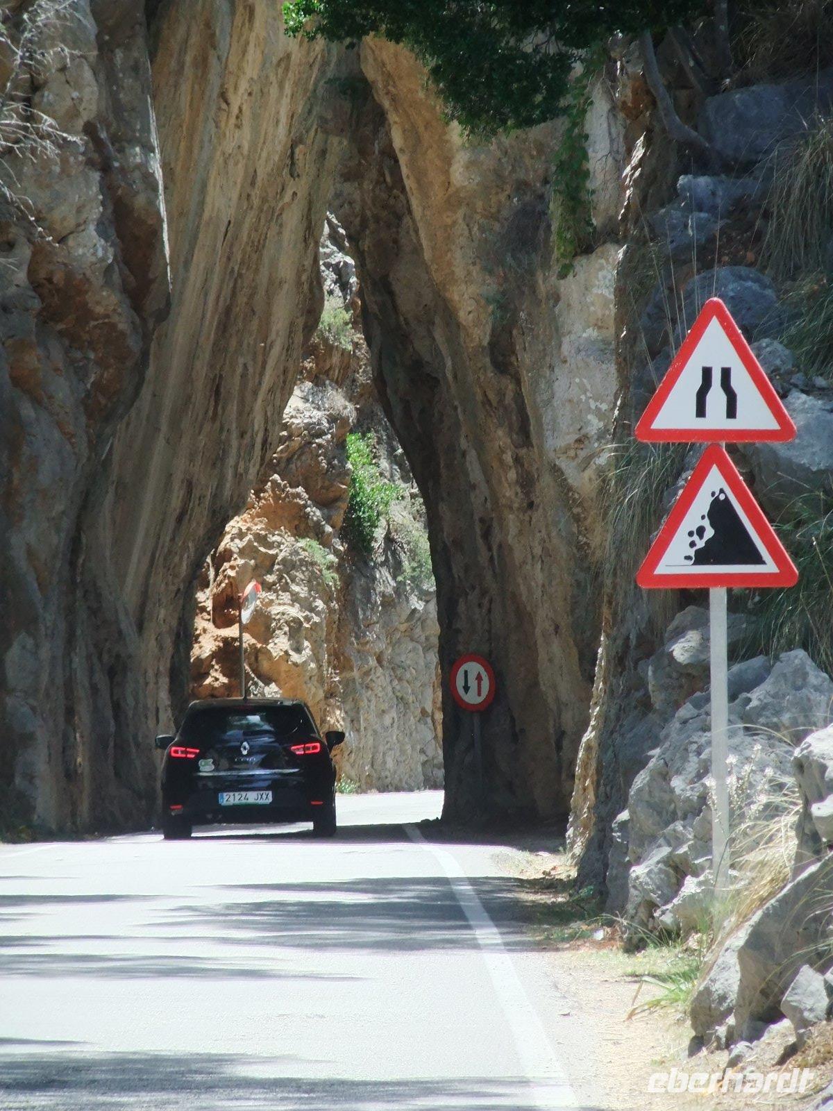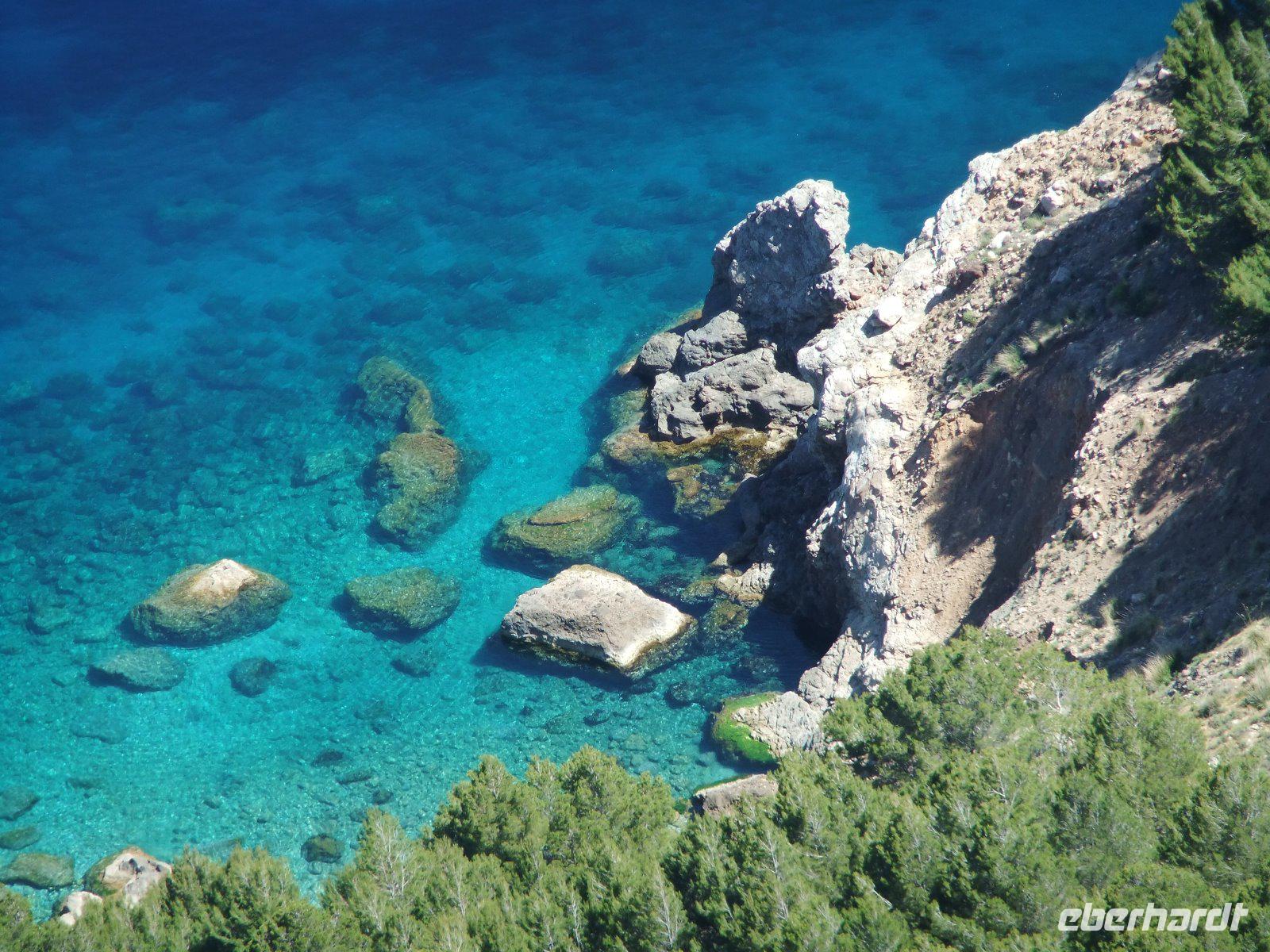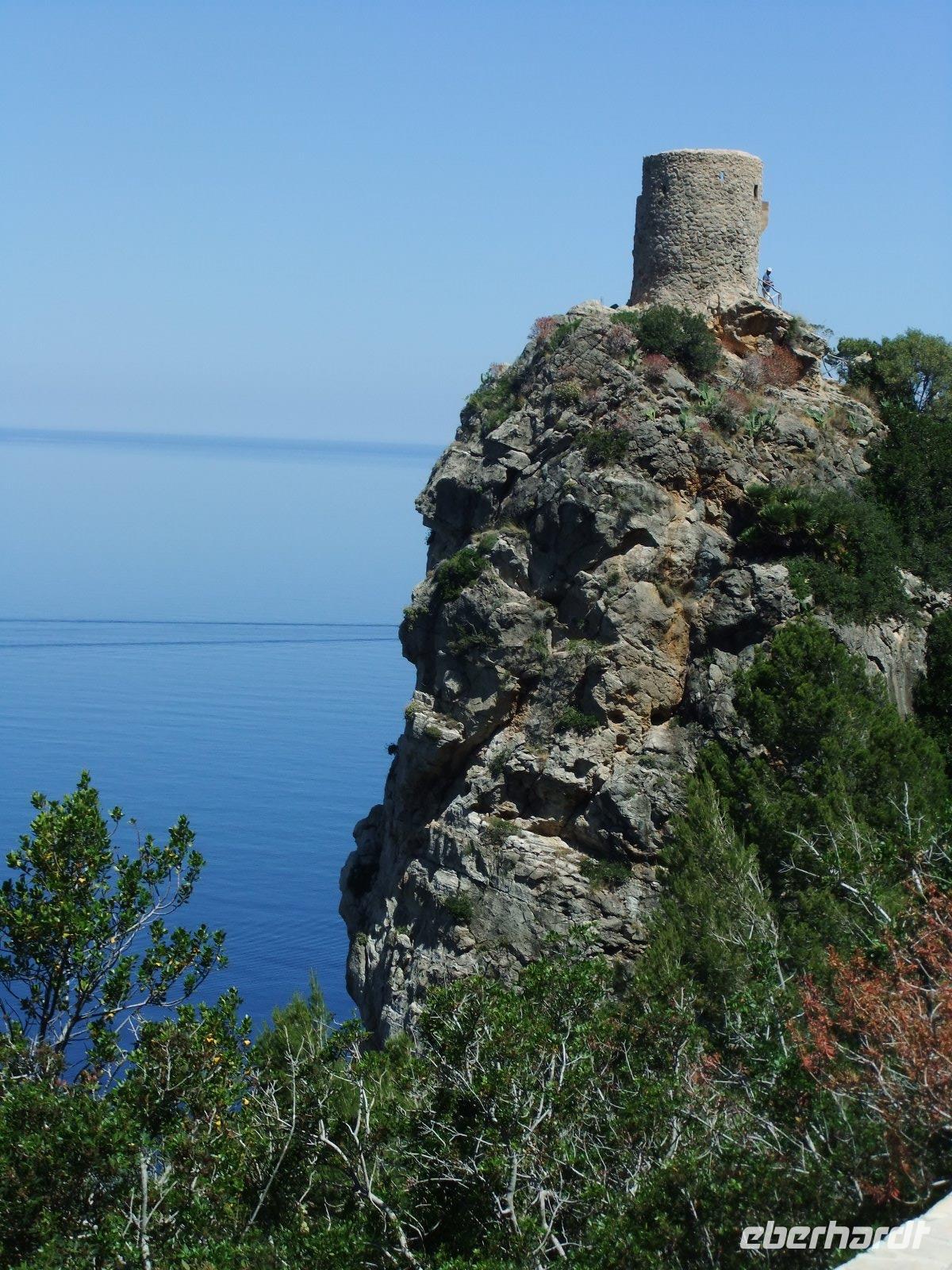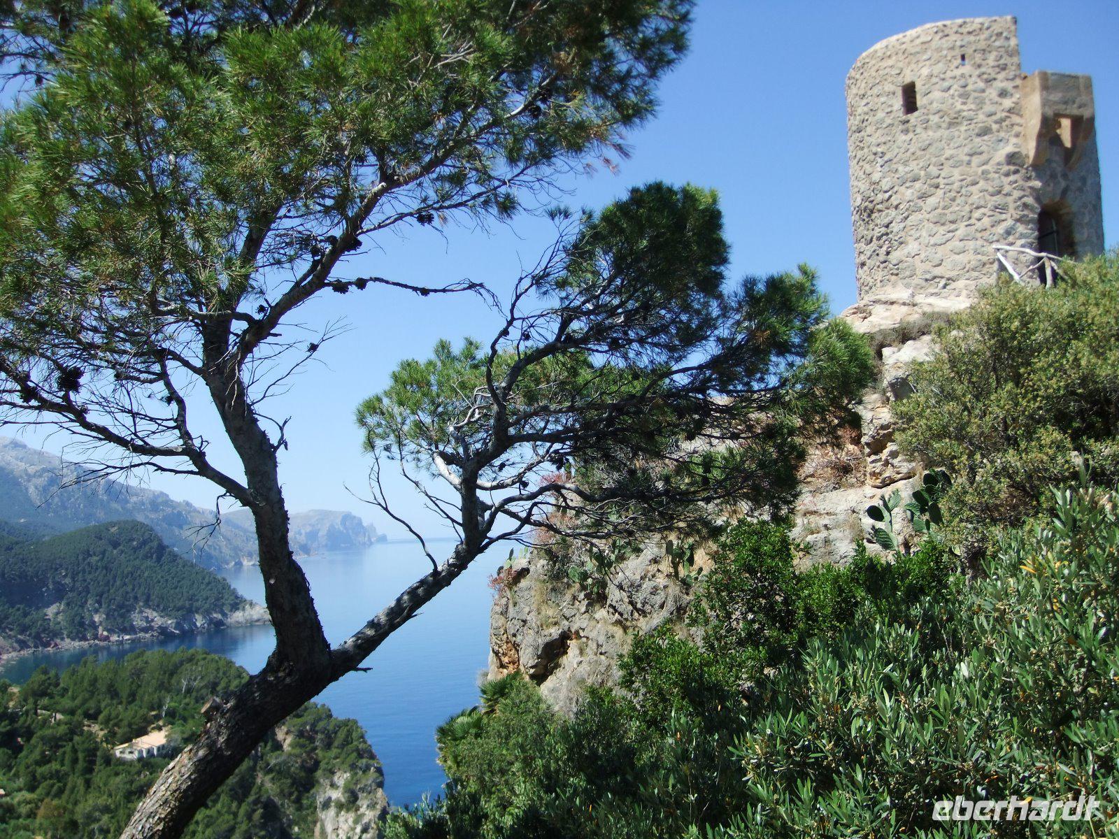 Nun „klettert" der Bus auf den Grat der Landzunge, wir sehen das Meer rechts und links von uns. Bald erreichen wir einen der schönsten Aussichtspunkte der Insel, wo man in mehr als 200 m Höhe über dem Meer u.a. auf die Insel Colomer schauen kann. In der entgegengesetzten Richtung reicht der Blick bis zur Bucht von Pollenca.