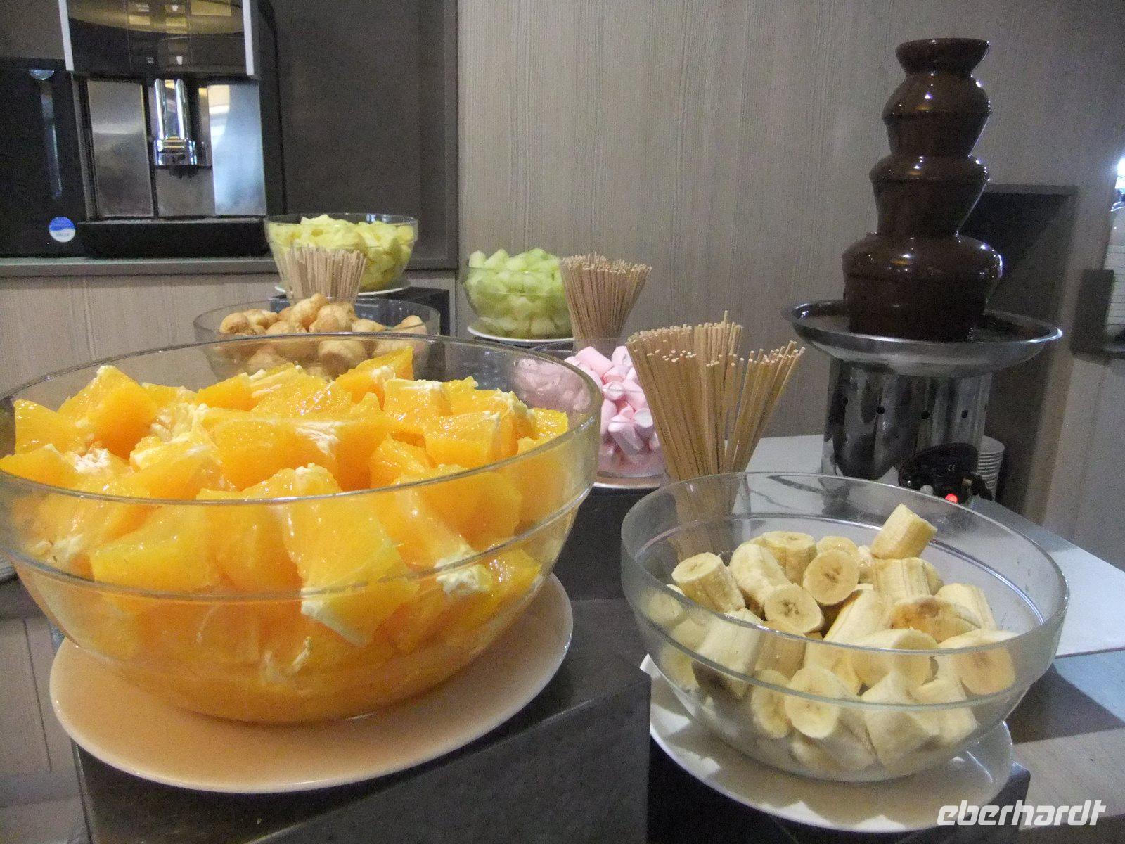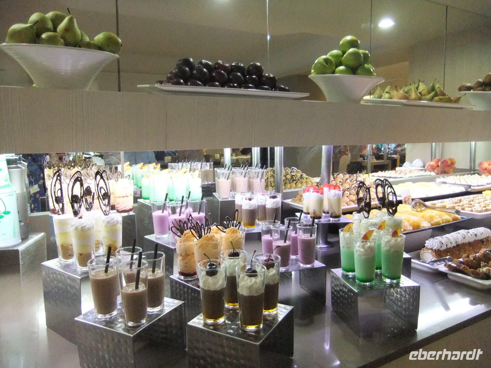 Noch einmal genießen wir am Abend die Köstlichkeiten des Buffets. In den letzten Tagen wurden wir diesbezüglich wirklich verwöhnt. Neben der großen Auswahl an kalten und warmen Speisen, der Vielfalt an Tapas, dem umfangreichen Obst-, Gemüse- und Fischangebot sowie zahlreichen Dessertvariationen gab es oft auch eine besondere Überraschung. Gern erinnern wir uns z.B. an die Schokoladenbrunnen oder die großen Schinken.
