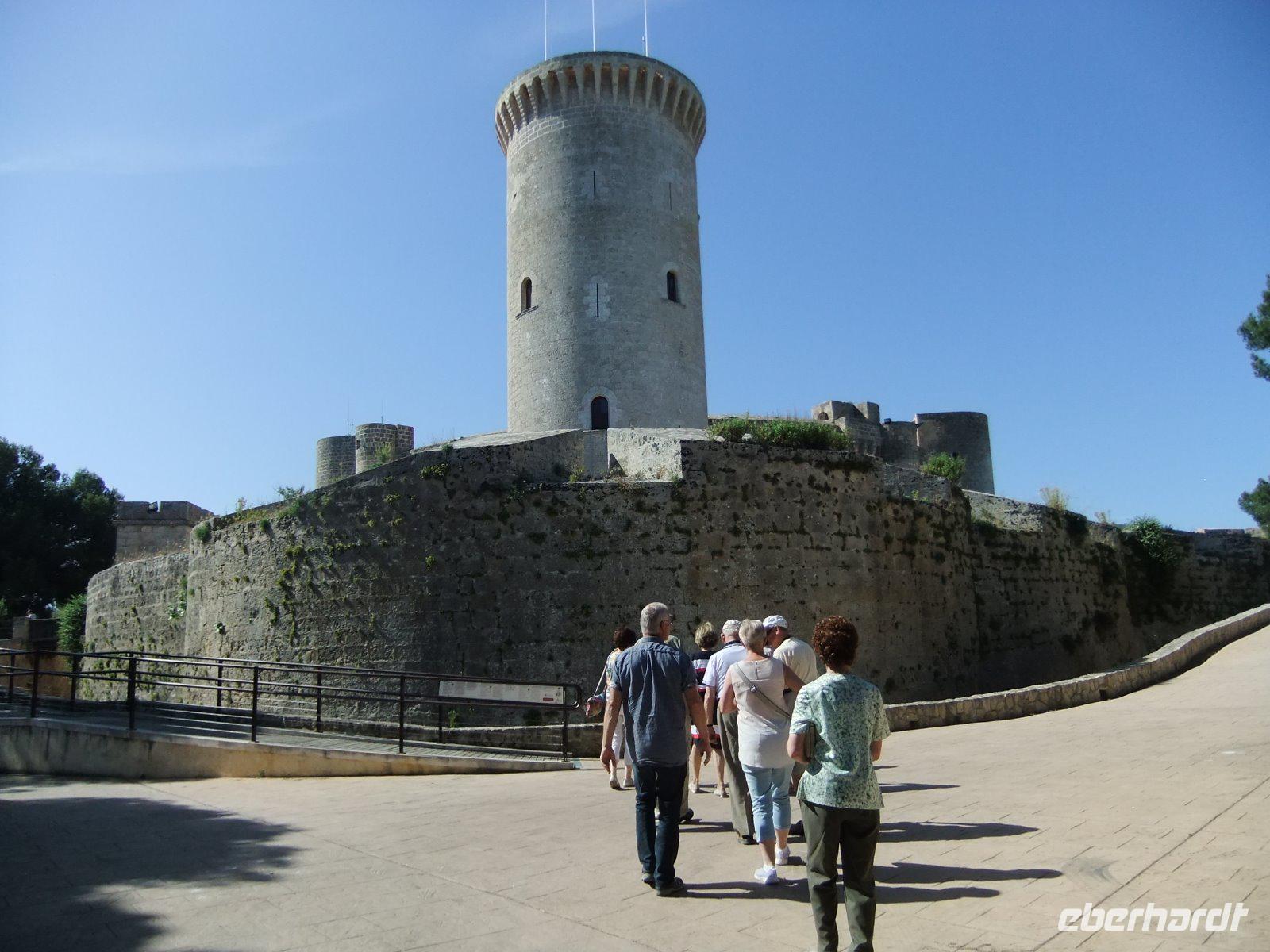 Die Inselhauptstadt ist heute unser Ziel und Magdalena verspricht einen architektonisch abwechslungsreichen Ausflug. Nach kurzer Fahrt erreichen wir Palma de Mallorca. Zunächst besuchen wir das hoch über der Stadt gelegene Schloss Bellver. Es wurde Anfang des 14. Jahrhunderts auf einem 112 Meter hohen Hügel am Rande der Stadt errichtet und zählt zu den originellsten Bauten der Insel. Über zwei ehemalige Wassergräben erreichen wir den kreisförmigen Wehrbau mit den vier Türmen und dem ebenfalls kreisrunden Innenhof. Vom oberen Festungsring haben wir eine schöne Sicht auf Palma. Einige Gäste besuchen noch das Stadthistorische Museum im Schloss, dann fahren wir weiter.