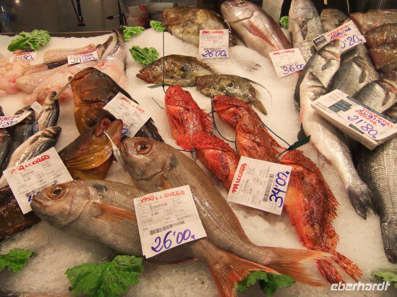 Nach dem Besuch der Kathedrale spazieren wir zunächst durch die engen Gassen der Hauptstadt und werfen einen Blick in die Innenhöhe. Bald erreichen wir das Rathaus und die Placa Major. Wir nehmen den Weg über die Fußgängerzone San Miquel, wo sich edle Geschäfte aneinander reihen. Unser Ziel ist die Markthalle von Palma. Hier ist besonders die Auswahl an Fisch sehr groß. Aber auch Obst, Gemüse, Fleisch- und Käsespezialitäten werden angeboten.