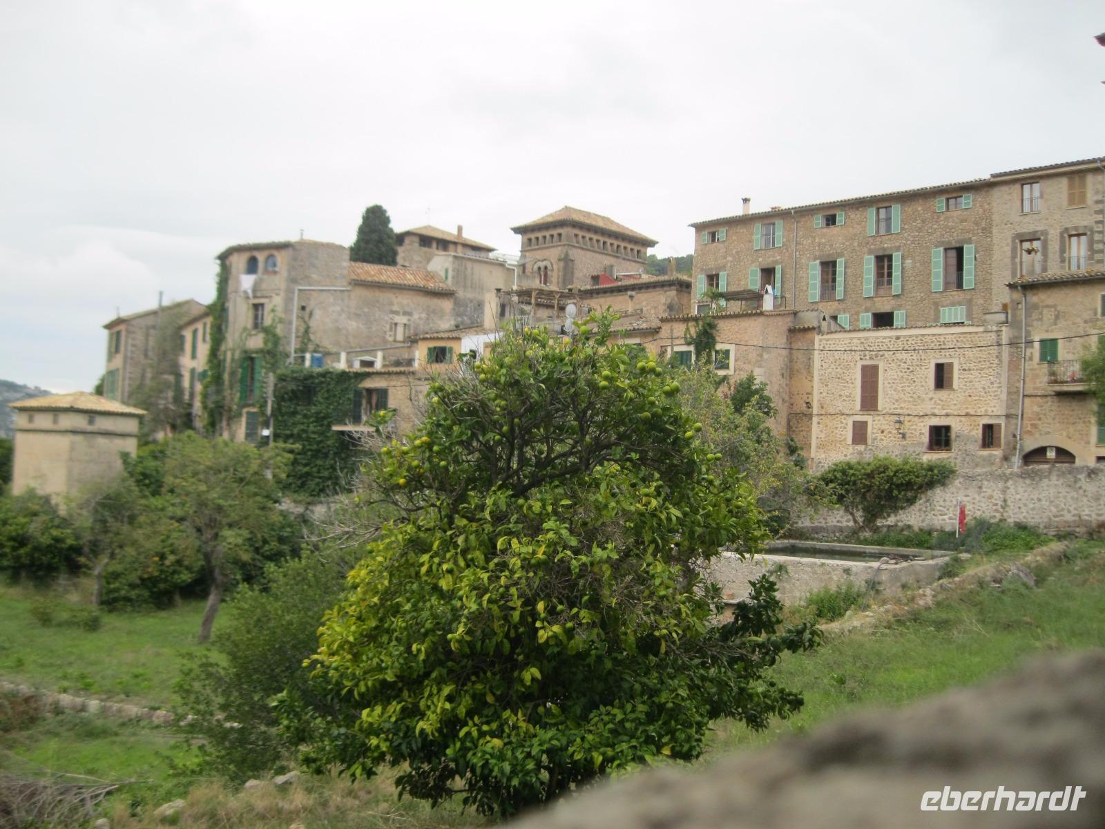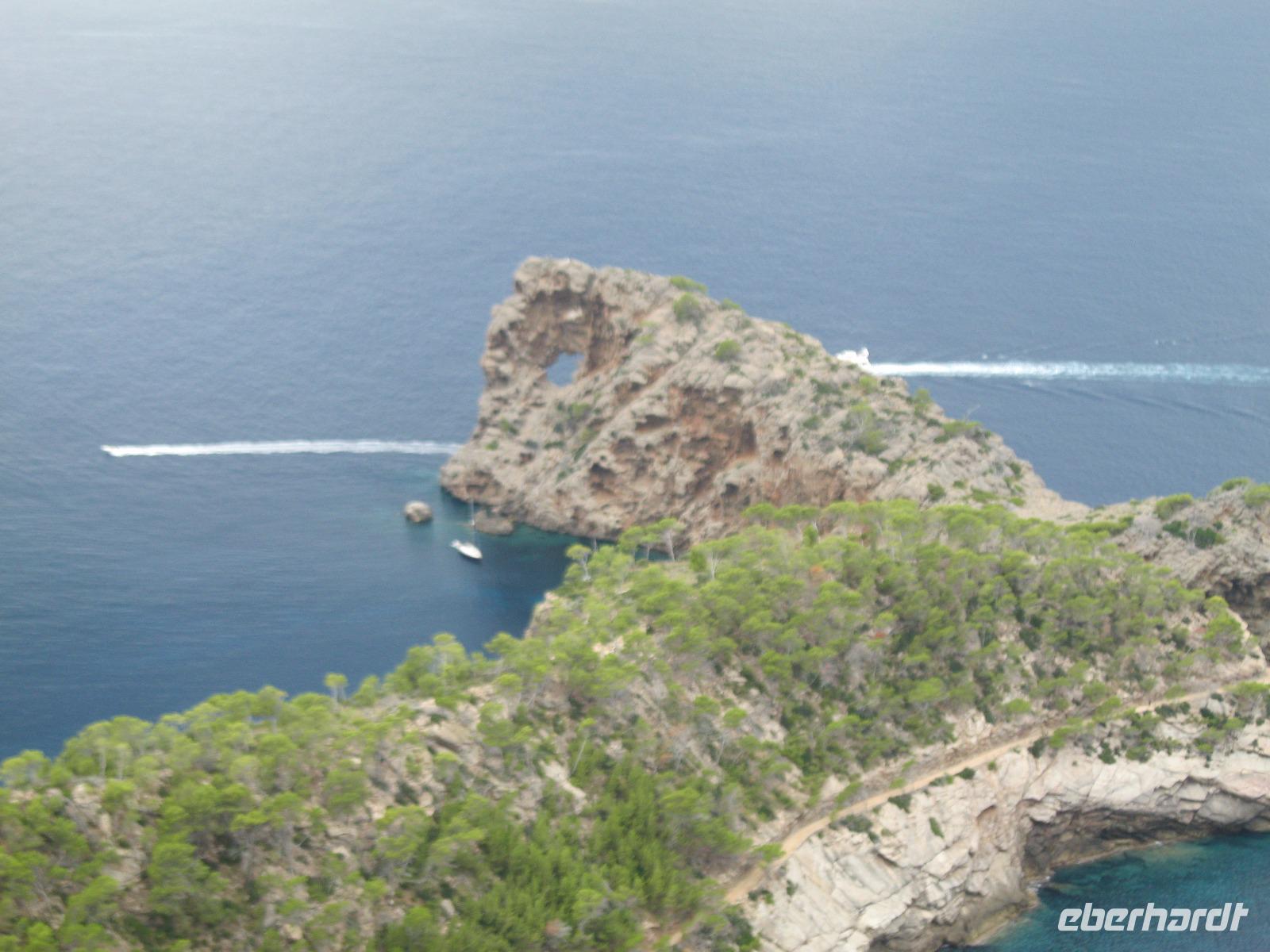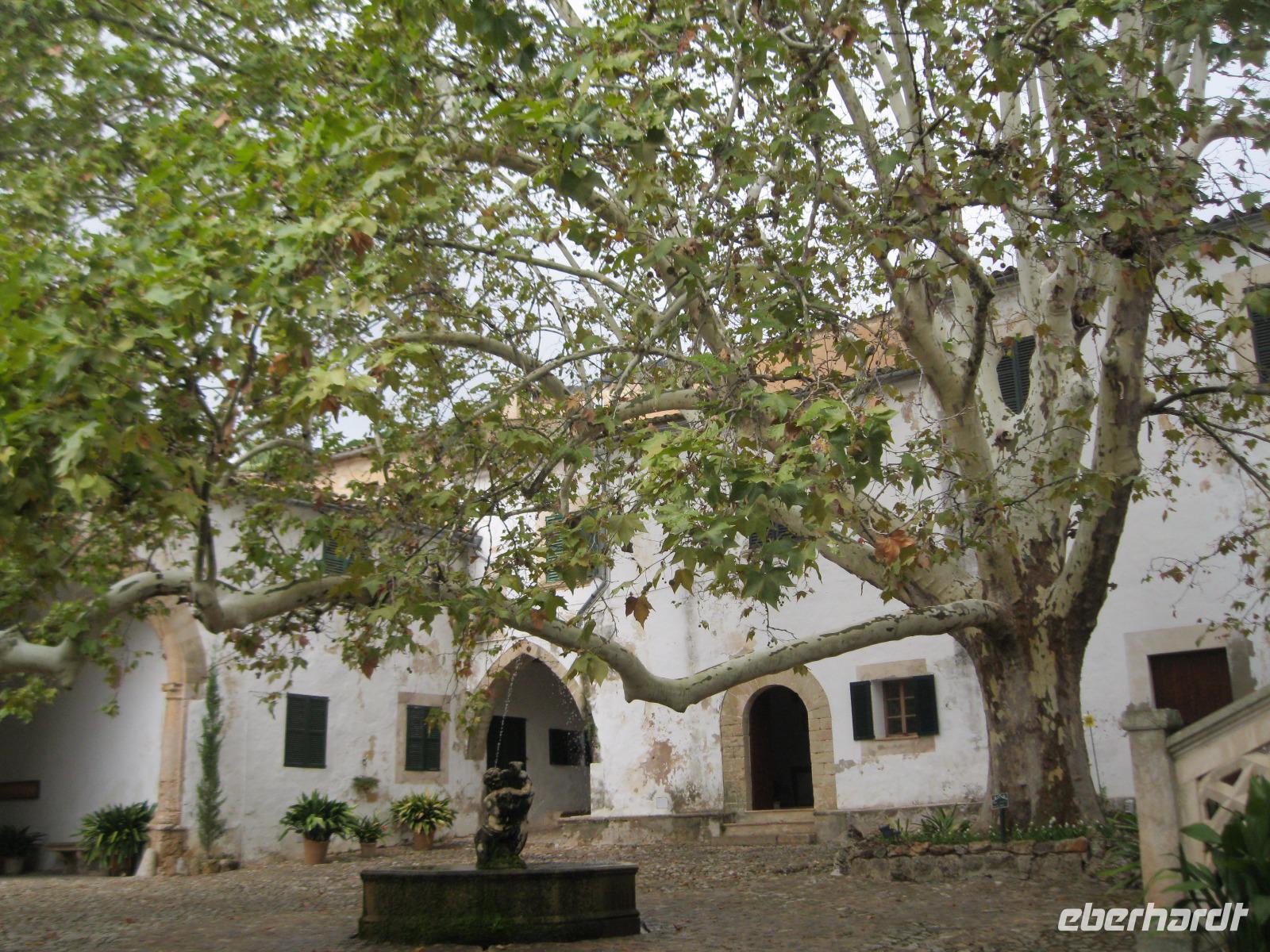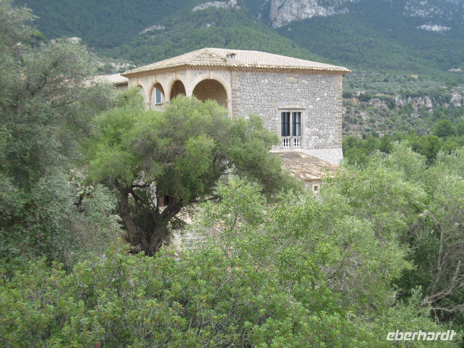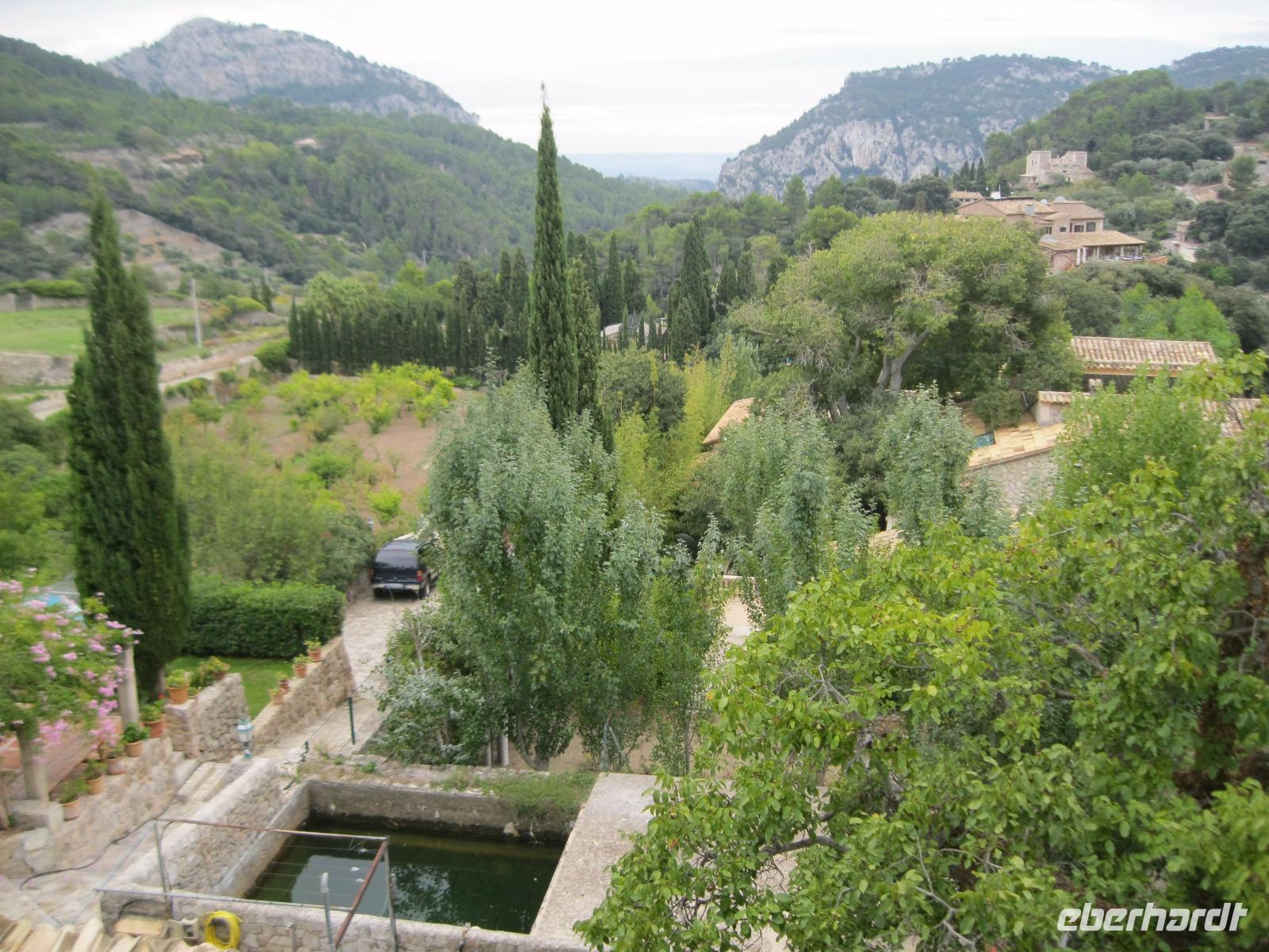 Vom Königspalast zum Kloster entwickelte sich die Kartause von Valldemossa. Bekanntheitsgrad erlangte die Gegend durch einen Erholungsaufenthalt von Chopin und seiner Geliebten George Sand. Viele literarische (ein Winter auf Mallorca) und musikalische (Regentropfen Präludium) Werke entstanden hier in dieser Zeit. Am Ende der Führung lauschten wir einem Klavierkonzert. Wir kehrten zum typischen Mandelkuchenessen in ein kleines Cafe ein. Im angrenzenden Geschäft konnte man abermals Liköre verkosten. Unsere Tour ging 18 km über schmale Serpentinen zum Meer hinunter. Auf der Strecke legten wir einen Fotostopp in San Maroc ein. Es war der Landsitz von Erzherzog Salvator von Österreich. Er war ein Förderer der Insel und fühlte sich auch der weiblichen Bevölkerung sehr zugetan. Heute gehört das Anwesen Michael Douglas und eine Stiftung ist darin untergebracht. Am „Gelöcherten" wurden Fotos geschossen. Wer fängt das Schiff darin ein? Weiter ging es durch das Künstlerdorf Deja der Küste entgegen. In Port Soller gingen wir ein Stückchen zu Fuß zum Zentrum und genossen unsere Mittagspause. Leider hielt der Wettergott sein Versprechen vom Sonnenschein nicht und schickte uns Regenschauer. Am Nachmittag schlenderten wir, vom Nieselregen begleitet, durch die arabischen Gärten von Alfabia. Wir schauten uns auch im prachtvollen Herrenhaus um, in dem schon gekrönte Häupter genächtigt haben. Zum Anwesen gehört eine alte Ölpresse, die leider nicht mehr in Betrieb ist. Auf der Fahrt dorthin sahen wir die alten Olivenbäume. Die Ernte hatte gerade begonnen.