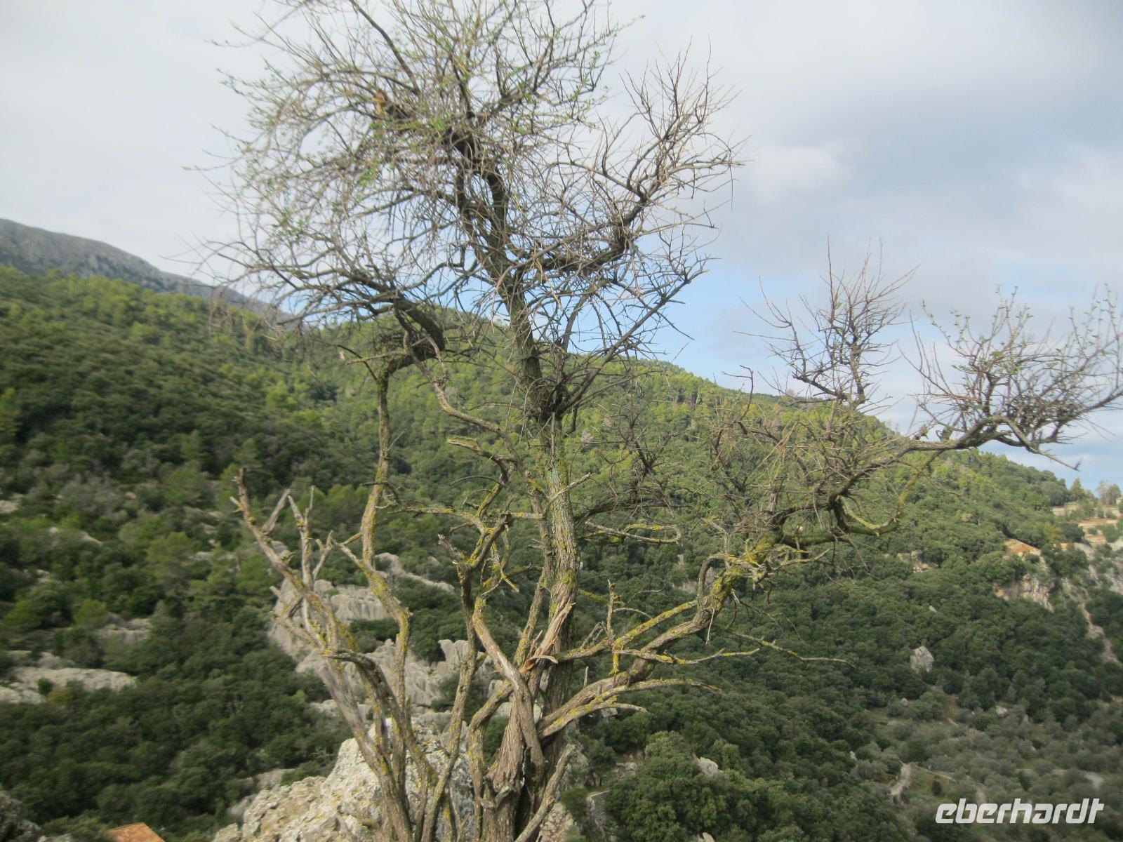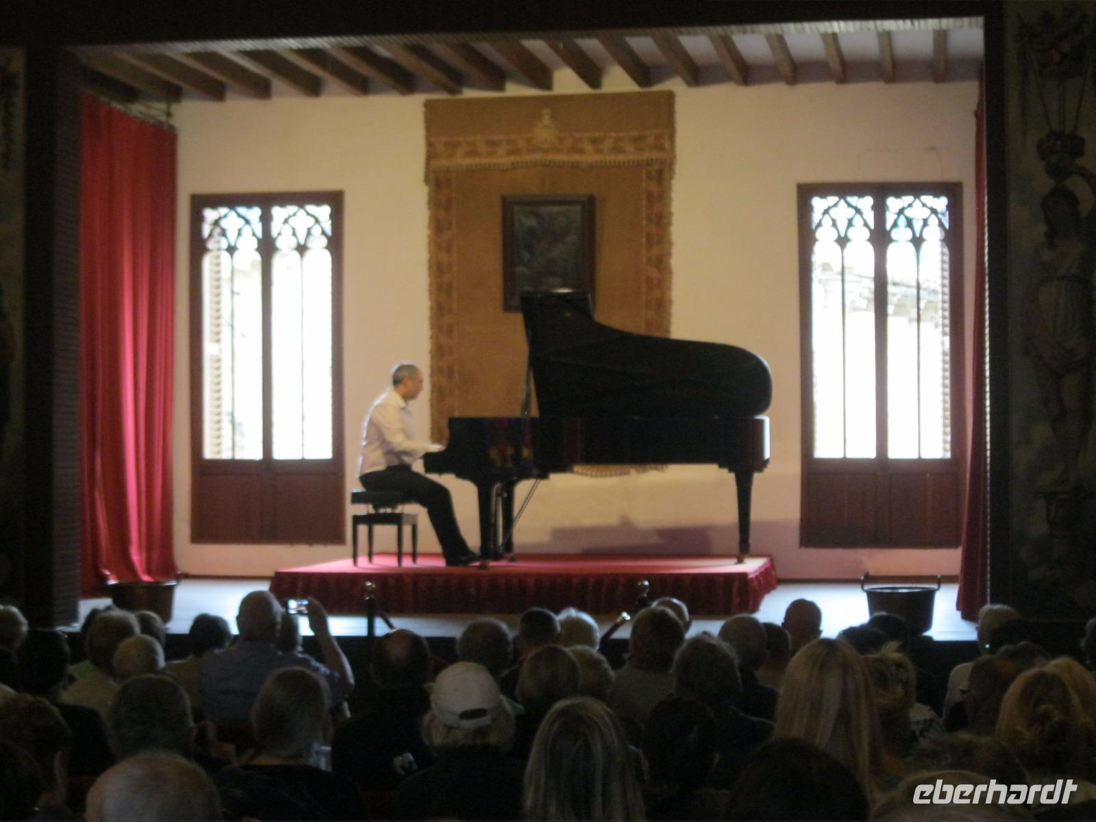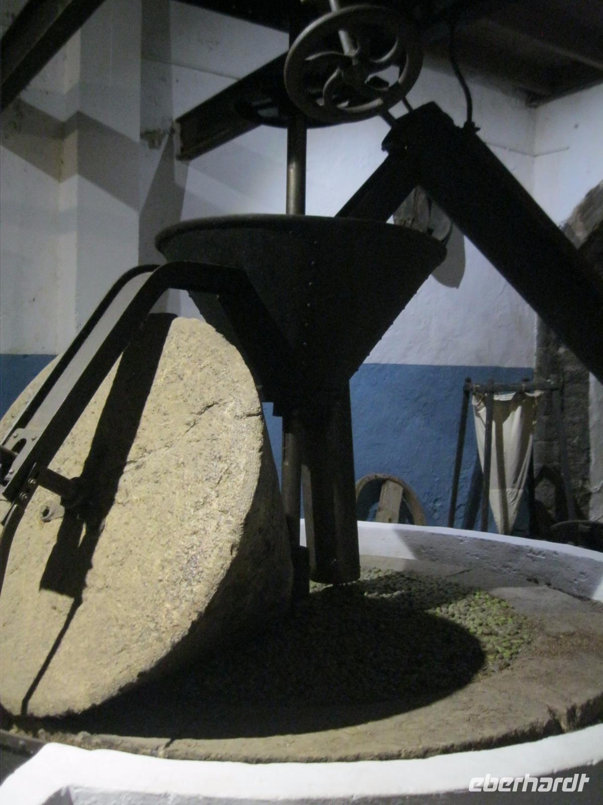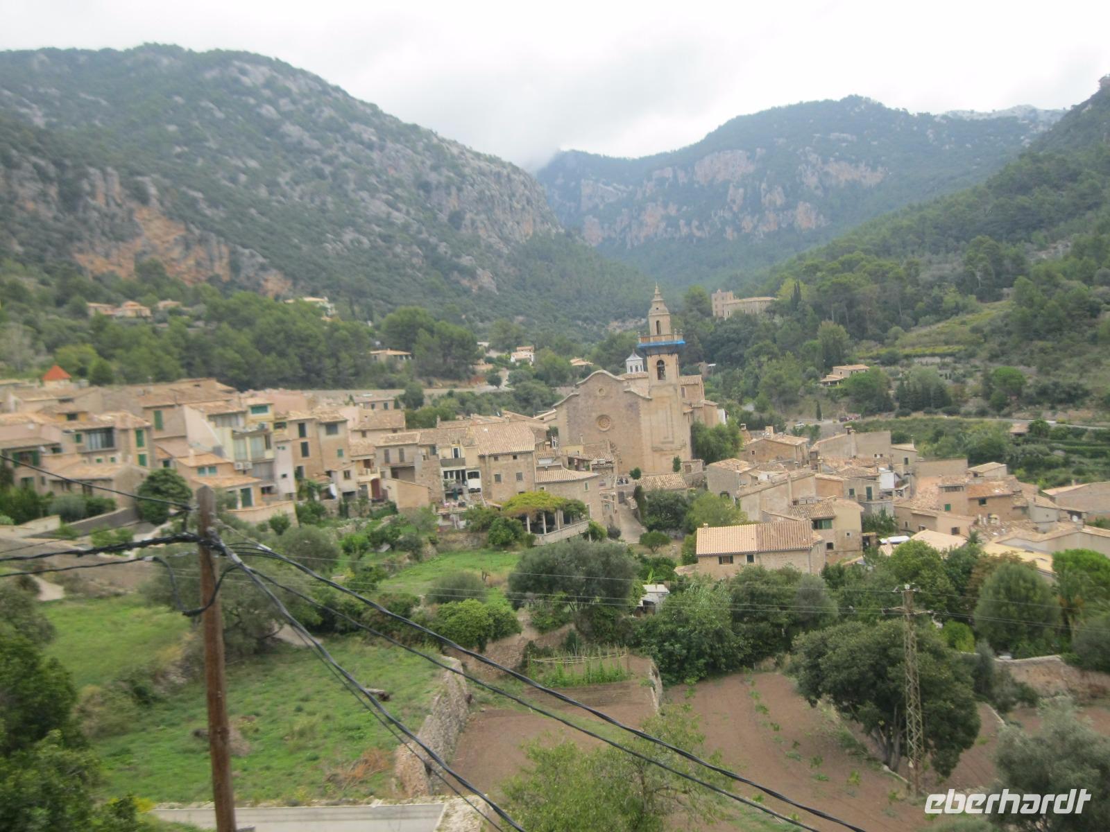 Vom Königspalast zum Kloster entwickelte sich die Kartause von Valldemossa. Bekanntheitsgrad erlangte die Gegend durch einen Erholungsaufenthalt von Chopin und seiner Geliebten George Sand. Viele literarische (ein Winter auf Mallorca) und musikalische (Regentropfen Präludium) Werke entstanden hier in dieser Zeit. Am Ende der Führung lauschten wir einem Klavierkonzert. Wir kehrten zum typischen Mandelkuchenessen in ein kleines Cafe ein. Im angrenzenden Geschäft konnte man abermals Liköre verkosten. Unsere Tour ging 18 km über schmale Serpentinen zum Meer hinunter. Auf der Strecke legten wir einen Fotostopp in San Maroc ein. Es war der Landsitz von Erzherzog Salvator von Österreich. Er war ein Förderer der Insel und fühlte sich auch der weiblichen Bevölkerung sehr zugetan. Heute gehört das Anwesen Michael Douglas und eine Stiftung ist darin untergebracht. Am „Gelöcherten" wurden Fotos geschossen. Wer fängt das Schiff darin ein? Weiter ging es durch das Künstlerdorf Deja der Küste entgegen. In Port Soller gingen wir ein Stückchen zu Fuß zum Zentrum und genossen unsere Mittagspause. Leider hielt der Wettergott sein Versprechen vom Sonnenschein nicht und schickte uns Regenschauer. Am Nachmittag schlenderten wir, vom Nieselregen begleitet, durch die arabischen Gärten von Alfabia. Wir schauten uns auch im prachtvollen Herrenhaus um, in dem schon gekrönte Häupter genächtigt haben. Zum Anwesen gehört eine alte Ölpresse, die leider nicht mehr in Betrieb ist. Auf der Fahrt dorthin sahen wir die alten Olivenbäume. Die Ernte hatte gerade begonnen.