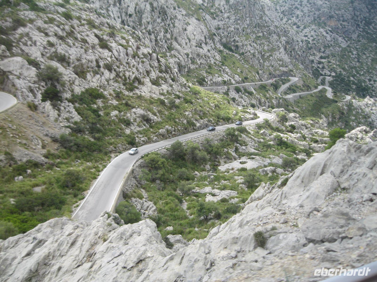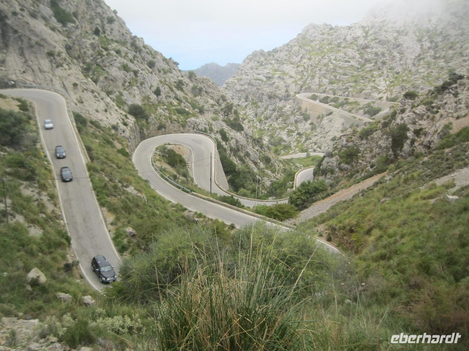 Über Inka, im Inselinneren, gelangten wir zum Kloster Lluc. Es ist das beliebteste religiöse Zentrum und besitzt das Schutzheiligtum - die schwarze Madonna - der Insel. Was für Wien die Sängerknaben sind, sind für Mallorca die „kleinen Blauen Sänger". Der Knabenchor lebt dort im Kloster und sie werden auch dort unterrichtet. Von der berühmtesten Serpentinenstraße der Insel hatten wir einen schönen Blick auf die höchste Erhebung, den Puig Major mit 1445m Höhe. Diese Straße wurde 1939 fertiggestellt und ist bekannt für die Krawattenknoten Kurve (Nus de sa Corbata). Geplant hatte sie Antonio Paretti, der Begründer der Fremdenverkehrsindustrie von Mallorca. Wir erreichten nun den Naturhafen von Sa Colobra. Dort erwartete uns das Boot welches uns, entlang der zerklüfteten Küste nach Port Soller brachte. Leider auch wieder im Regen. Vom Hafen fuhren wir mit dem sogenannten „Roten Blitz" hinauf in die Stadt Soller. Anschließend stiegen wir in den hölzernen Traditionszug und durch 13 Tunnel erreichten wir den Haltepunkt vor den Toren Palmas. So mancher Gast hatte heute sein ganz eigenes Insel-Abenteuer, es endete gut!