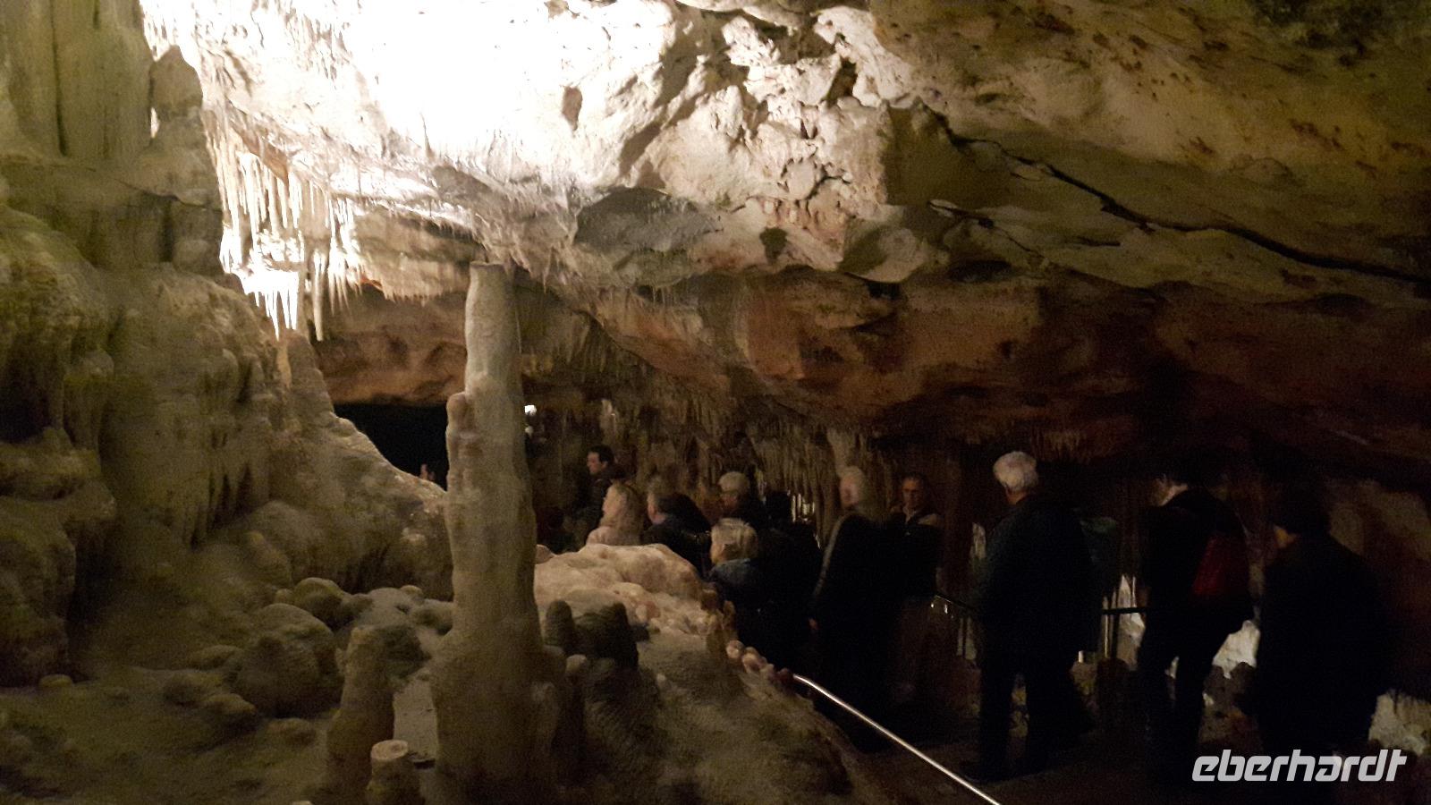 Unser erster Ausflugstag führte uns in den östlichen Teil der Balearen-Insel. Zunächst besuchten wir das Kloster San Salvador, markant auf dem höchsten Berg der Umgebung auf ca. 500 Höhenmetern gelegen. Eine wahrhaft spektakuläre Serpentinenstraße führte uns dort hinauf und immer wieder beeindruckten uns die tollen Ausblicke auf die umliegende Hügellandschaft. Nach der Besichtigung dieses Heiligtums, dessen Ursprünge immerhin bis ins 14. Jahrhundert zurück reichen, ging es für uns an die Ostküste bis zum Küstenstädtchen Porto Cristo weiter, wo wir unsere Mittagspause verbrachten. Wir schlenderten entlang der kleinen Promenade oder nutzen die Möglichkeit, uns kulinarisch zu stärken. Am Nachmittag besuchten wir dann einen der touristischen Höhepunkte dieser Gegend, nämlich die bekanntesten Tropfsteinhöhlen Mallorcas - die Drachenhöhlen! Es handelt sich um ein wahrhaft einzigartiges Höhlensystem, welches für alle gut zu Fuß zu bewältigen war. Als Höhepunkt genossen war dann ein Klangerlebnis der besonderen Art, ein klassisches Konzert mit Lichtspielen! Es bot sich außerdem die Gelegenheit, eine kleine Strecke mit einem Ruderboot inmitten der Höhle zurück zu legen. Mit vielen schönen ersten Eindrücken von Mallorca ging es später zum Hotel zurück.