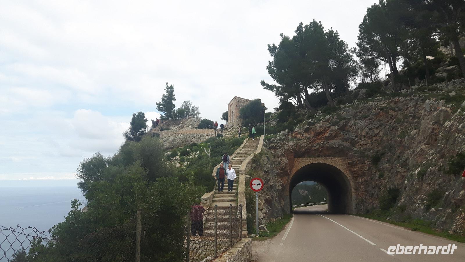 Wir starteten wiederum gegen 9 Uhr zu einer kontrastreichen Inselrundfahrt und wollten die herrlichsten Gegenden Mallorcas entdecken - darüber gab es die unterschiedlichsten Vorstellungen! Nördlich von Palma hieß es bereits erstmals "Umsteigen", wir verließen den Bus und der sogenannte "Rote Blitz", eine elektrische Schmalspurbahn, brachte uns nach Sóller. Wir zuckelten bei leider schlechten Sichtverhältnissen durch die Landschaft und passierten zudem mehrere Tunnel. Am Bahnhof von Sóller verließen wir den Zug und weiter ging es mit einer nostalgischen Straßenbahn vorbei an Oliven-, Orangen- bzw. Zitronenhainen bis nach Port de Sóller. Es regnete in Strömen und somit entschieden sich die meisten Gäste gegen die eigentlich geplante Bootsfahrt - kurzerhand kehrten wir im nächstgelegenen Restaurant direkt am Hafen ein. Eine heiße Suppe und ein dazu passendes Getränk trugen jetzt erheblich zur Steigerung unserer Stimmung bei. Zu diesem Zeitpunkt wussten wir allerdings noch nicht, dass unser weiterer Tagesplan buchstäblich ins Wasser fallen sollte... Die Gebirgsstraße zum Küstenort Sa Calobra musste wegen Schneefall gesperrt werden und somit gab es keine Möglichkeit, diese sogenannte Traumstraße Europas zu passieren. Nun entschieden wir uns, einen großen Umweg zu fahren und zumindest als kleinen Ausgleich das berühmte Kloster Lluc, einen bedeutenden Wallfahrtsort, zu besuchen. Dieses liegt malerisch inmitten des Tramuntana-Gebirges und zieht jährlich zahlreiche Pilger aus der ganzen Welt an. Jeder will natürlich die berühmte "Schwarze Madonna" im Inneren einer kleinen Kapelle der Klosterkirche sehen und siehe da, das taten wir selbstverständlich dann auch. Außerdem beherbergt das Kloster ein interessantes Museum - echt sehenswert!