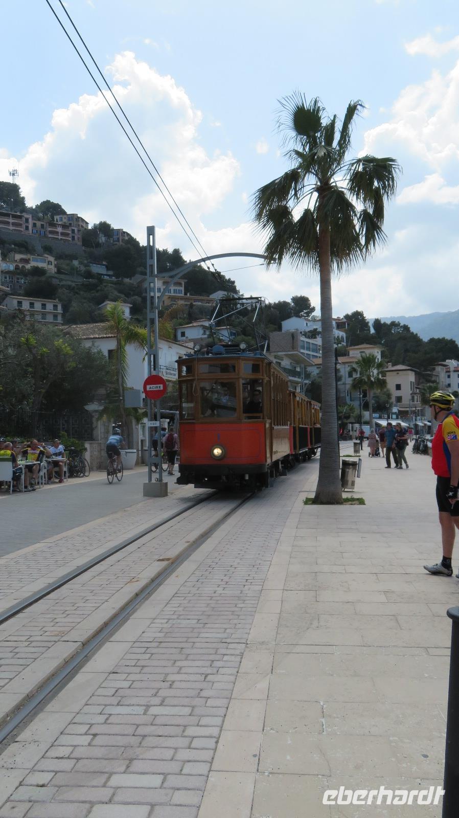 Als erstes fuhren wir mit dem Bus bis zum Zug. Der rote Blitz ist sehr berühmt. Die nostalgische Schmalspurbahn ist ein MUSS. Wir genossen die Fahrt durch Orangen- und Zitronenplantagen, durch die vielen Tunnel bis Soller. Dort stiegen wir in die Straßenbahn um, die uns nach Port Soller brachte. Von dort ging es mit dem Schiff weiter nach Sa Calobra. Das "Verkehrsmittelhopping" klappte sehr gut und machte viel Spaß.