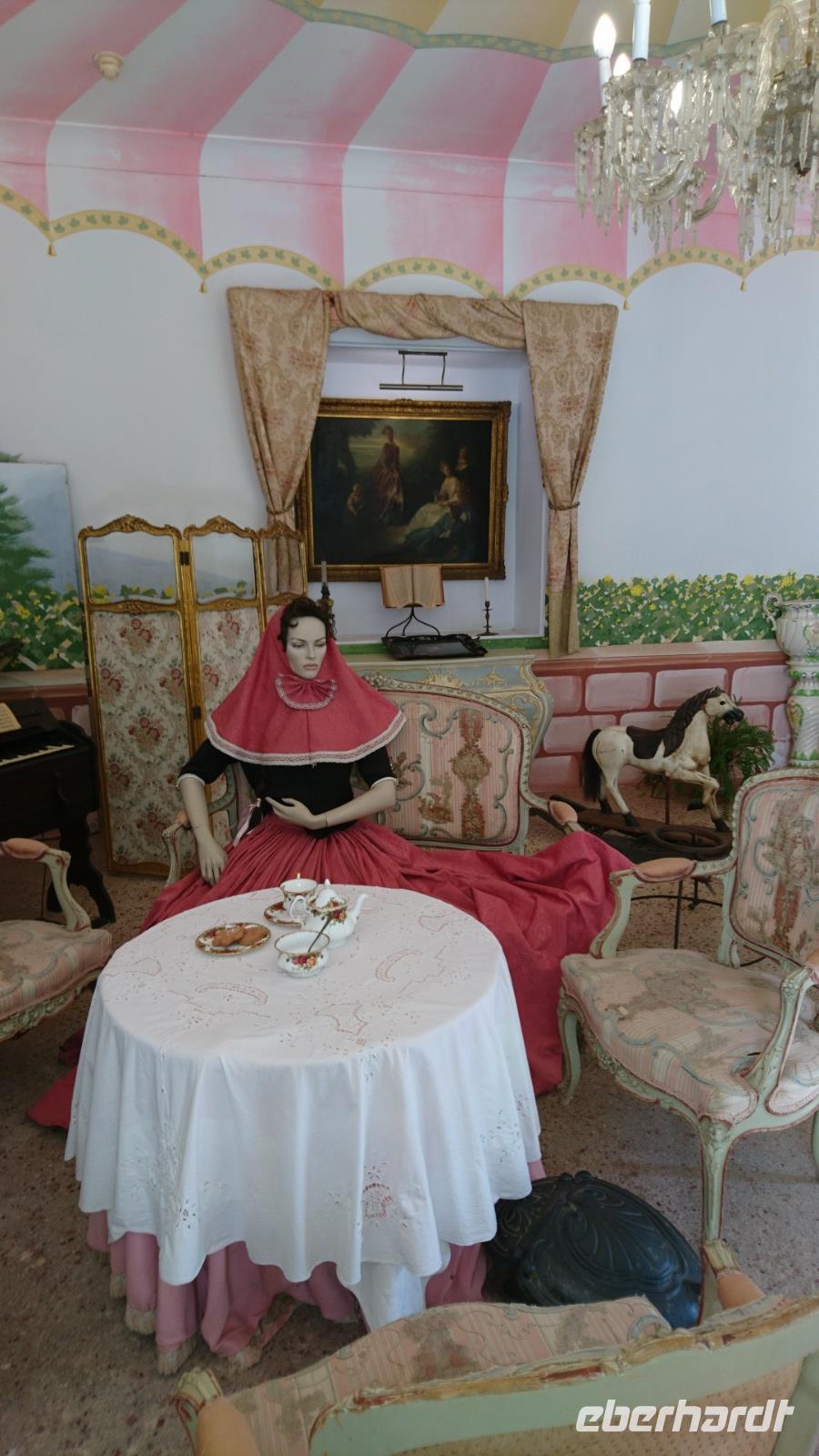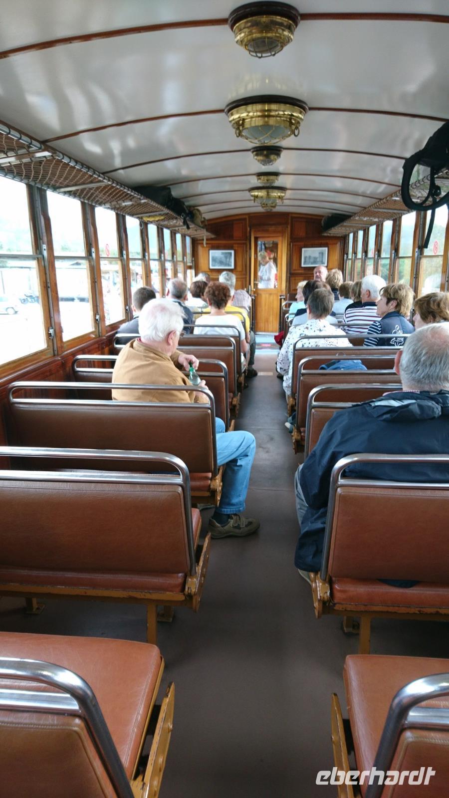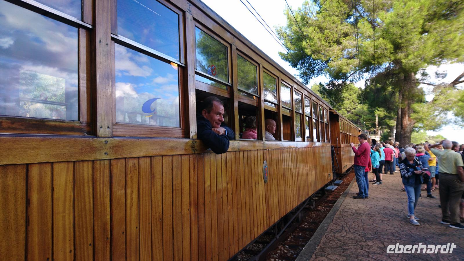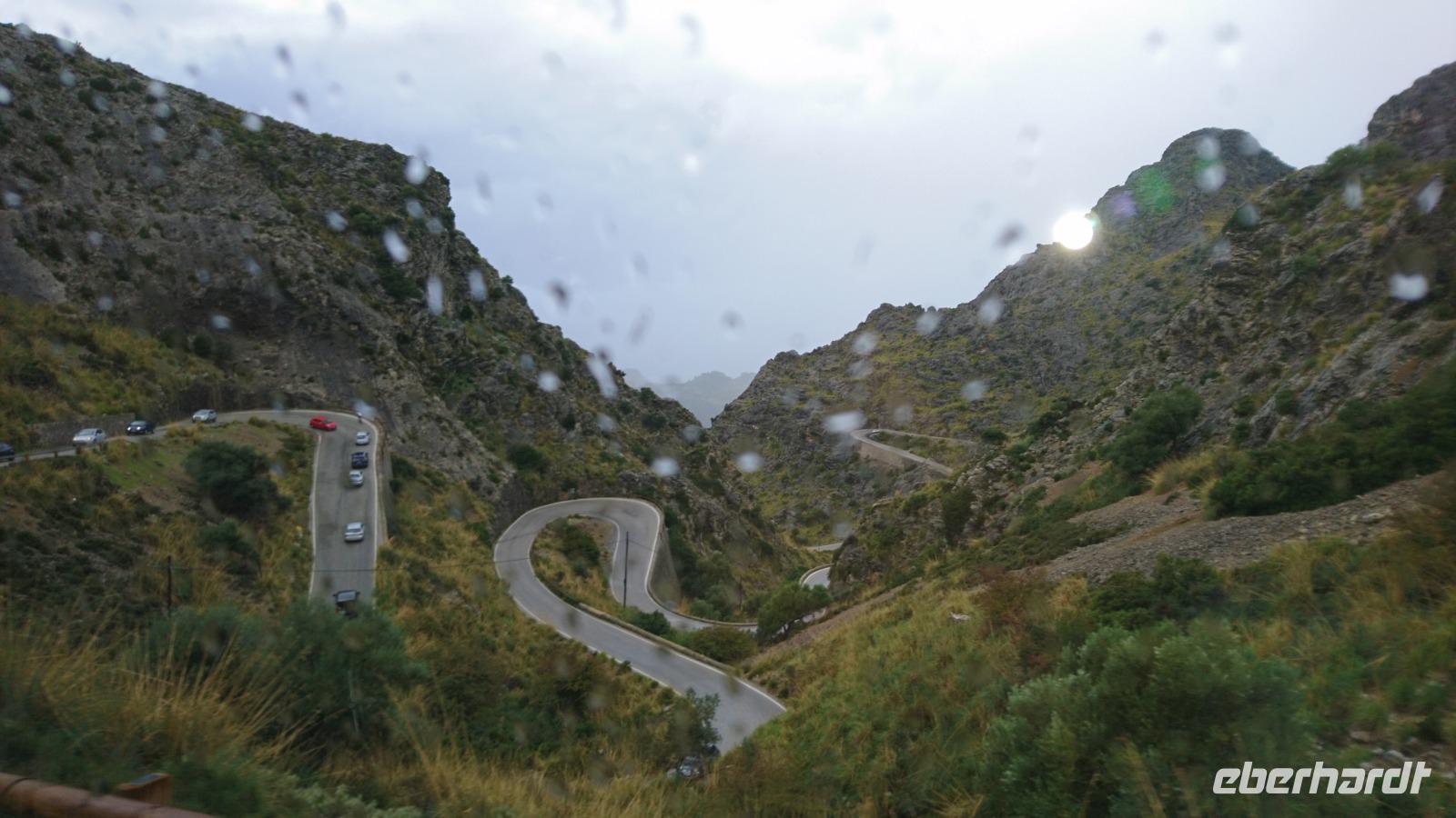 Übers Meer zum Gebirge.Heute erwartete uns wohl die abwechslungsreichste Tour auf der größten Baleareninsel.In Palma starteten wir mit der ,1921 in Dienst gestellten, hölzernen Eisenbahn.Auf der 28 km langen Strecke, durch die Serra d Alfabias,fuhren wir durch 13 Tunnel und überquerten einen Viadukt sowie 2 Brücken.In Soller stiegen wir in die hochbetagte Tranvia um,die seit 1913 zum Hafen fährt.Gleich weiter ging es von Port Soller aus, mit einem Schiff-leicht schaukelnd(das Bordpersonal verteilte Tüten) entlang der zerklüfteten Kalksteinfelsen,zum Naturhafen von Sa Colobra.Gerade festen Boden erreicht ,öffnete der Himmel seine Schleusen.Nach kurzer Pause kletterten wir, bequem im Bus sitzend, die Serpentinenstraße bis zur Kravattenknoten Kurve, in ca.800m Höhe, hinauf.Auf abenteuerliche Weise,mit vielen Fahrad Freunden und Auto Touristen, teilten wir uns die ,von Antonio Paretti geschaffene, Straße durch dasTramuntana Gebirge. An Steineneichen Wäldern vorbei,erreichten wir das Kloster Lluc.Die üppige Vergoldung des Kirchenraumes hat Antonio Gaudi geschaffen.In einer kleinen Kapelle kann man die Schutzpatronin der Insel-die Moreneta- besuchen.Die hier lebenden Franziskaner unterrichten den , 1531 gegründeten, Knabenchor.Heute wird er allerdings von Mädchenstimmen unterstützt und nennt sich nur noch „die kleinen Blauen".Über Inka ,in der Inselmitte gelegen,fuhren wir- begleitet vom Nachmittags Stau- Richtung Ca'n Pastilla.Magdalena wollte uns die Schinkenstraße ,mit Bierkönig und Megapark, am berühmt-berüchtigten Ballermann 6 zeigen.(bei Regenwetter und zu früher Stunde noch unspektakulär,aber sehen wollten wir es schon)Am Aquarium ,nicht weit vom Hotel entfernt,war dafür" anstehen" angesagt.