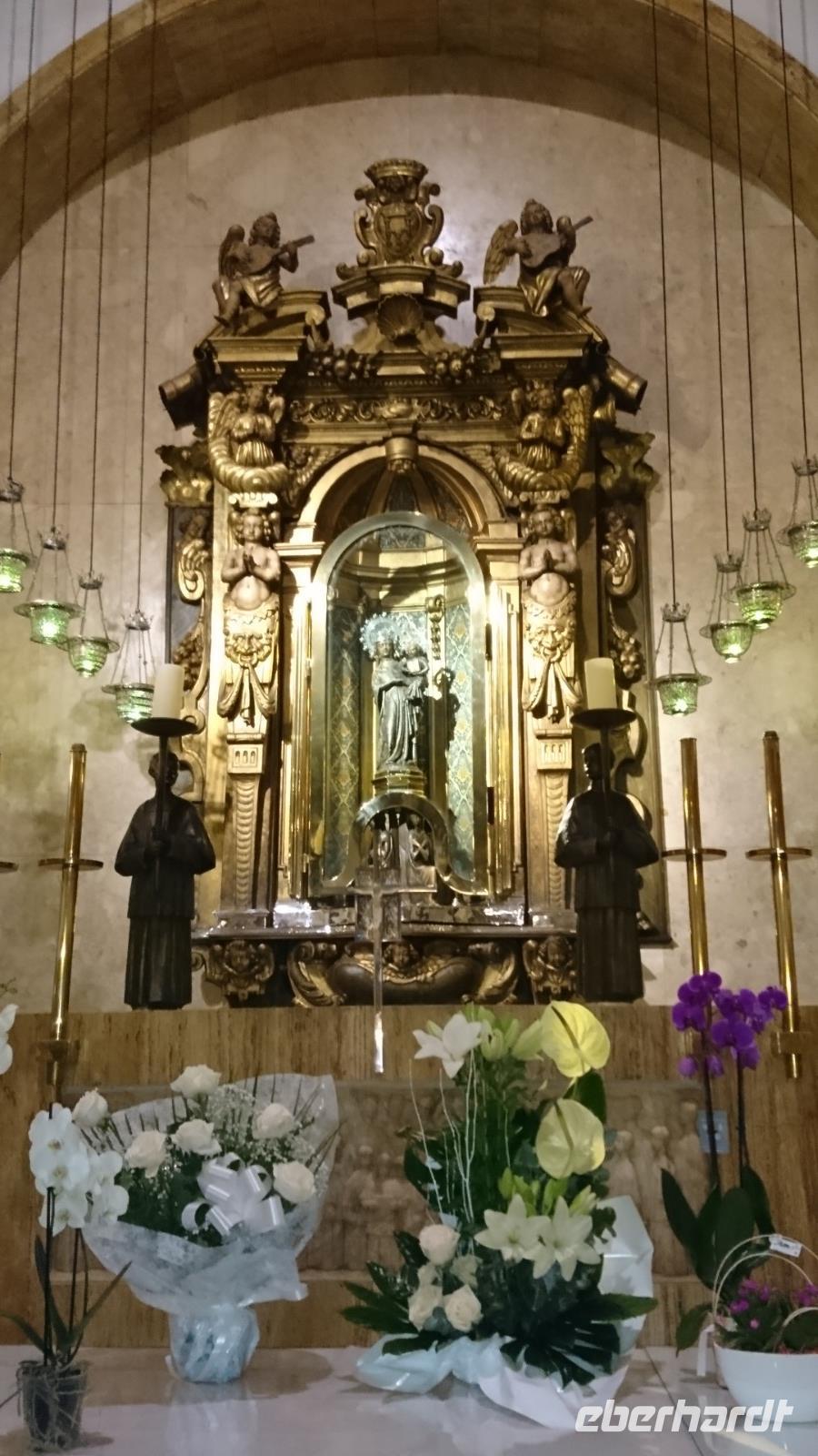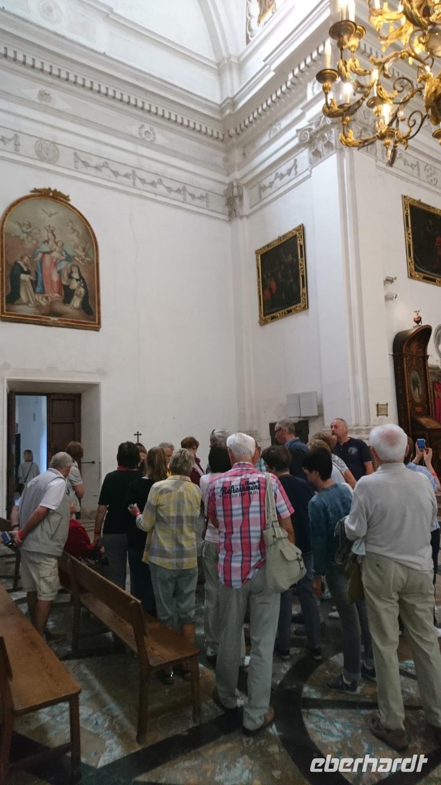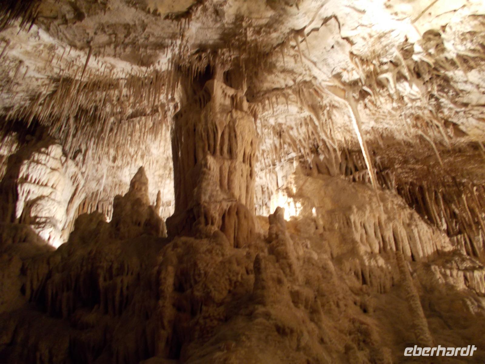 Wegen eines Straßenradrennens ,Sperrung vieler Straßen,tauschten wir kurzer Hand die Ausflüge.Die Tour führte uns heute von Süd nach Ost.Über Llucmajor und Felanitx,den angeblichen Geburtsort von Kolumbus, ging es über eine schmale Straße hinauf zu Sant Salvador.Die einstige Einsiedelei ,von Paulus und Antonius, gehört heute dem Klerus.Die Wallfahrtskirche ist der kleinen Madonna gewidmet,die ein Hirtenjunge gefunden haben soll.Die Einwohner von Campos hatten sich zur Wallfahrt getroffen und erklommen den Rosenkranzweg zu Fuß - aber wir hatten Petro am Steuer und den Bus ! Zu den Klängen von Wagners Pilgerchor ,aus Tannenhäuser,betrachteten wir in Ruhe das barocke Erscheinungsbild der Kirche.Vom Aussichtspunkt,des 7m hohen Christusmonument, hatten wir einen weiten Blick ins Land.Die Fahrt führte uns weiter zur schönsten Tropfsteinhöhle des Landes-Caves del Drac.Von 25m über dem Meeresspiegel ging es hinab in eine steinerne Märchenwelt,die uns bis zu einem ,am tiefsten Punkt gelegenen, unterirdischen See führte. Der Martelsee ist der größte unterirdische See der Welt und da geben Musiker ,auf lautlos gleitenden Booten,ein kleines Konzert.Den Abschluß bildete Offenbachs- Barcarola .Wieder „aufgetaucht"fuhren wir in den Hafenort Portocristo,der zum Bummeln einlud.Mallorca ist nicht nur wegen der Perlenherstellung bekannt,nein auch wegen Keramik und Likör.Und genau dies schauten wir uns auf der Rückfahrt noch an.Über zwanzig Likörsorten konnten verkostet werden,darunter auch der bekannte Tunnel ,in verschiedenen Geschmacksrichtungen.Ein schöner, erster Ausflugstag ging entspannt zu Ende.