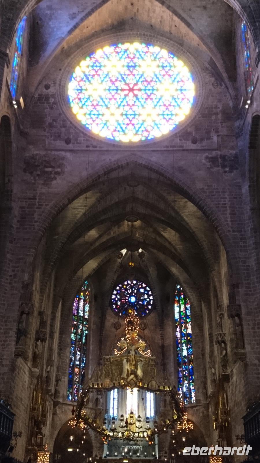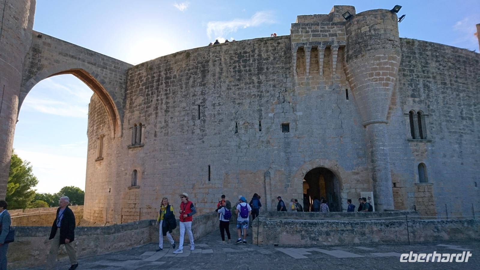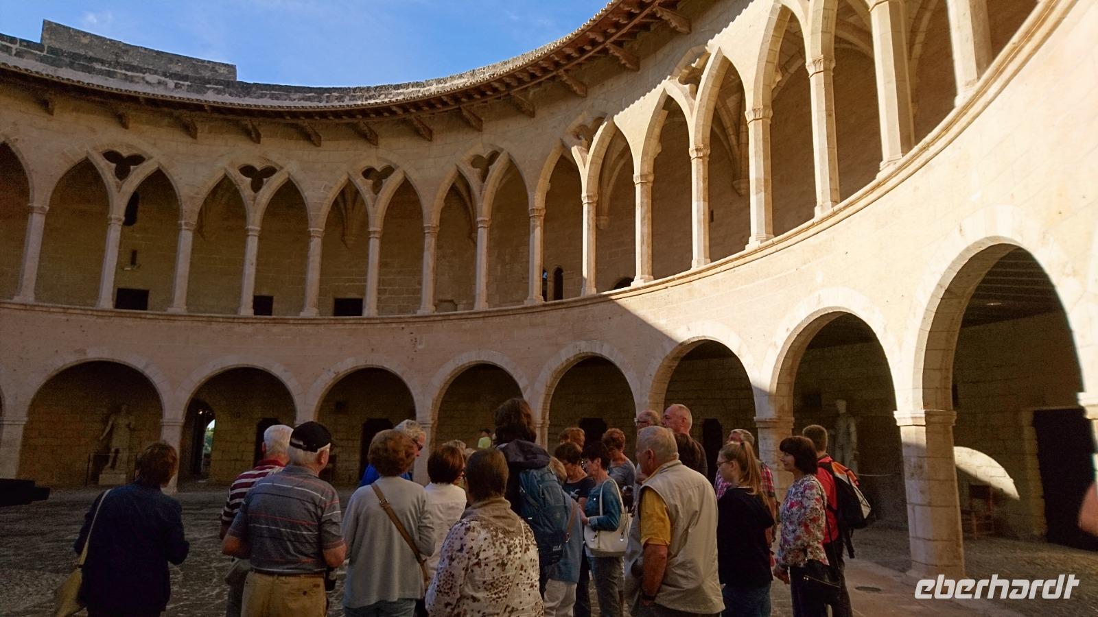 Der heutige Tag war der Kultur Palmas gewidmet.Zuerst besuchten wir das Castell de Bellver,hoch über der Bucht von Palma gelegen.Die ungewöhnliche Anlage ,des kreisrunden Palas, wurde als Sommerresidenz der Königsfamilie Jaume II errichtet.Von der doppelstöckigen Galerie hatten wir einen tollen Blick auf die Inselhauptstadt.Von hier aus konnten wir in den Hafen schauen.Es lagen fünf Kreuzfahrschiffe vor Anker und mit diesen Gästen teilten wir uns die Besichtigungen.Der Bus brachte uns hinunter in die Altstadt.Wir begannen unseren Rundgang an der ,an einem künstlich angelegten See trohnenden, Catedral La Seu.Im Inneren spürte man sofort die Handschrift von Antonio Gaudis.Danach schlenderten wir durch kleine, urige Gassen dem Rathaus entgegen.Über die Placa Major gelangten wir zur Markthalle.Magdalena zeigte uns noch die Bushaltestelle,von wo aus wir bequem unser Hotel erreichen konnten.Zuvor war aber noch reichlich Freizeit eingeplant.Leider blieben wir auch heute nicht von Regenschauern verschont.