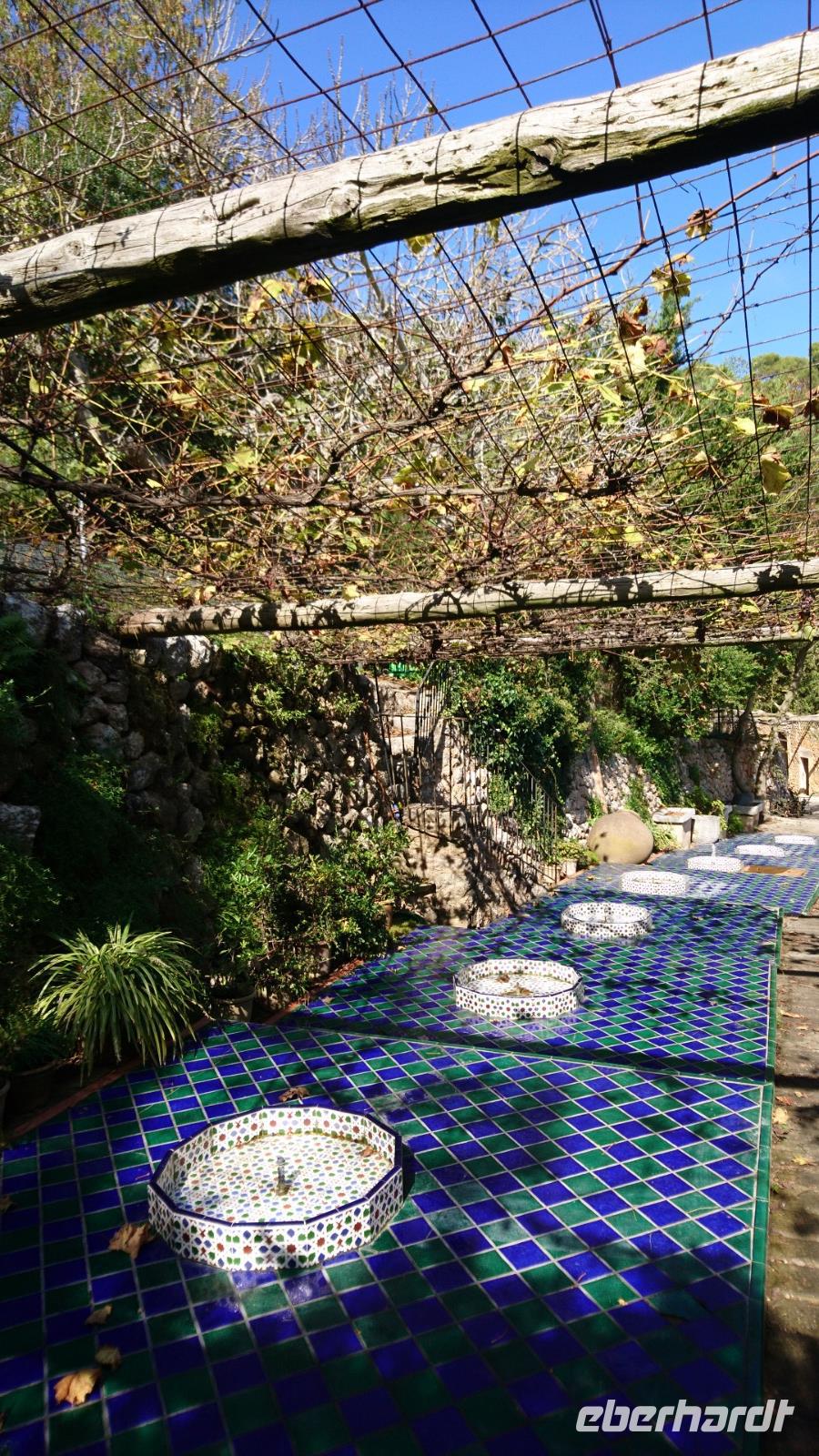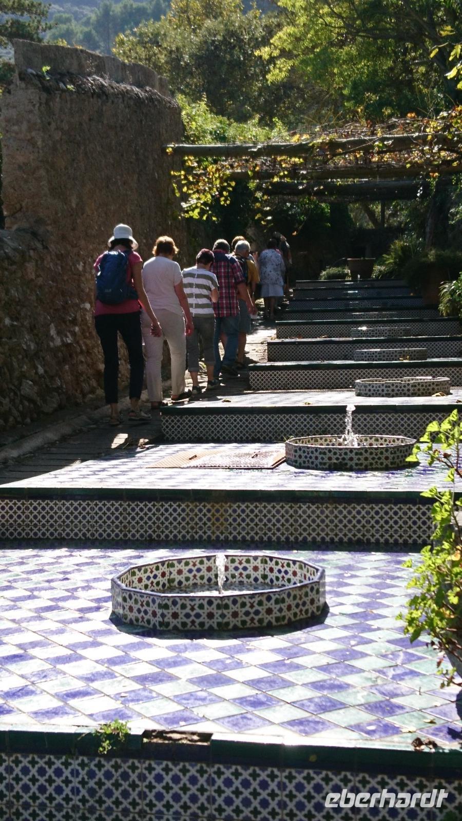 Vom Königspalast zum Kloster entwickelte sich die Kartause von Valldemossa. Bekanntheitsgrad erlangte die Gegend durch einen Erholungsaufenthalt von Chopin und seiner Geliebten George Sand.Viele literarische (ein Winter auf Mallorca) und musikalische (Regentropfen Präludium )Werke entstanden hier in dieser Zeit.Am Ende der Führung lauschten wir einem Klavierkonzert.Man konnte zum typischen Mandelkuchenessen in ein kleines Cafe einkehren,oder im angrenzenden Geschäft abermals Liköre verkosten.Unsere Tour ging 18 km ,über schmale Serpentinen zum Meer hinunter.Auf der Strecke legten wir einen Fotostopp in San Maroc ein.Es war der Landsitz von Erzherzog Salvator von Österreich.Er war ein Förderer der Insel und fühlte sich auch der weiblichen Bevölkerung sehr zugetan.Heute gehört das Anwesen Michael Douglas und eine Stiftung ist darin untergebracht.Am „Gelöcherten" wurden Fotos geschossen.Weiter ging es durch das Künstlerdorf Deja der Küste entgegen.In Port Soller gingen wir ein Stückchen zu Fuß zum Zentrum und genossen unsere Mittagspause.Am Nachmittag schlenderten wir durch die arabischen Gärten von Alfabia.Wir schauten uns auch im prachtvollen Herrenhaus um,in dem schon gekrönte Häupter genächtigt haben.Zum Anwesen gehört eine alte Ölpresse, die leider nicht mehr in Betrieb ist.Auf der Fahrt dorthin sahen wir die alten Olivenbäume . Die Ernte war fast schon beendet .