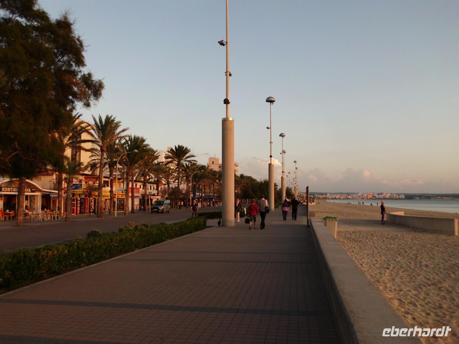 Nach einem verspäteten Frühstück machte man sich auf in den Tag. Die Strandpromenade lockte zu langen Spaziergängen oder einer Radtour. Das bewölkte Wetter hielt uns zwar davon ab ins Meer zu gehen, nicht jedoch davon sich an den Strand zu legen. Andere wiederum frischten ihre Erinnerungen von früheren Aufenthalten in Mallorca auf.