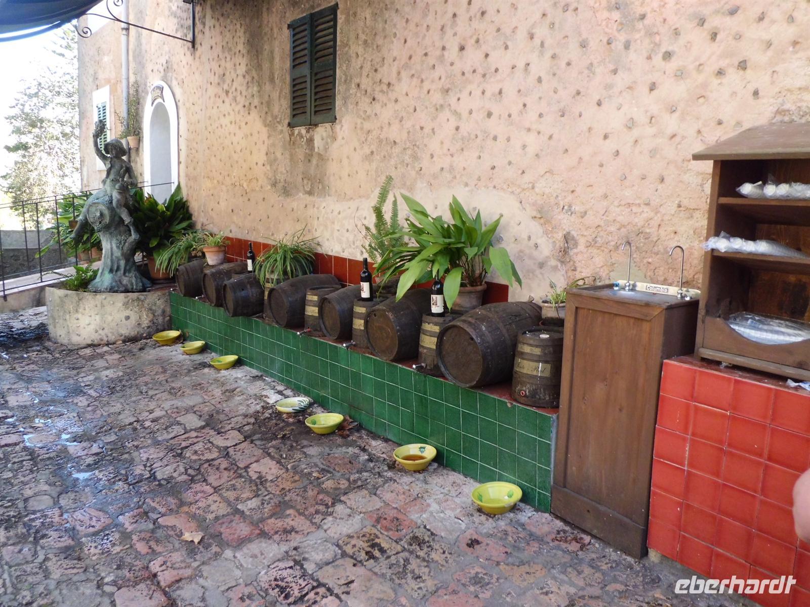 Der heutige Ausflug führt uns an die Westküste Mallorcas vorbei an den Küstenorten Palma Nova, Santa Ponsa und Paguera nach Port de Andratx. Auf der Fahrt dahin liest uns Madgalena ihre lange Liste mit all den Prominenten und weniger Prominenten vor, die hier ihre kleine und große Anwesen haben. Wir bestaunen im Hafen die Yachten, die nur darauf warten, das es Sommer wird…Von Andratx geht es weiter immer entlang der Küste zum Guthof „La Granja“. Dank einer immer sprühenden Fontäne aus Quellwasser entstand La Granja schon zu Araberzeiten. Das Herrenhaus und alle Wirtschafträume sind liebevoll und mit viel Aufwand und Zeit gestaltet wurden. Sie zeigen das frühere Landleben sehr anschaulich. Im Innenhof können wir schmackhaften Krapfen, die Bunyoles, und leckeren Wein probieren.