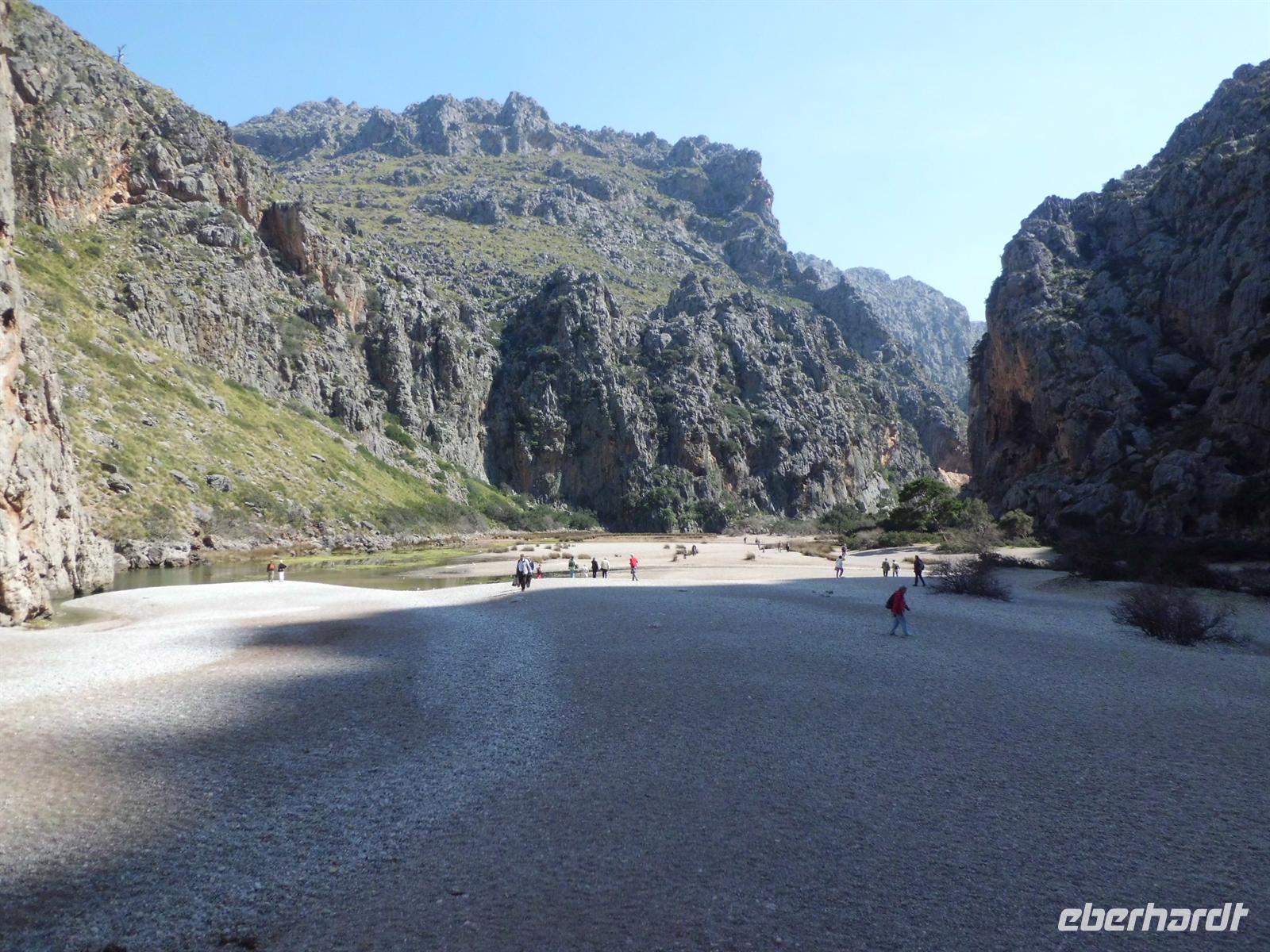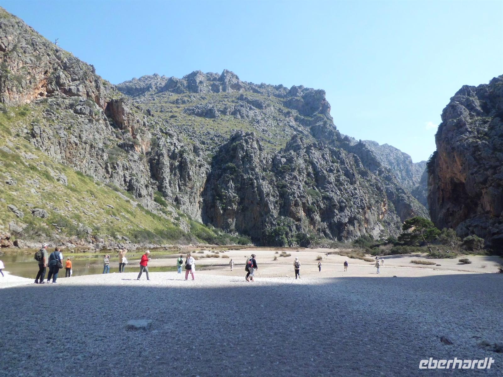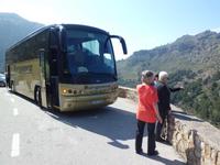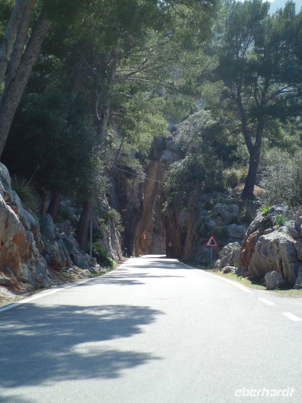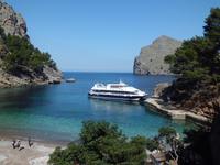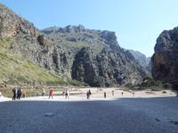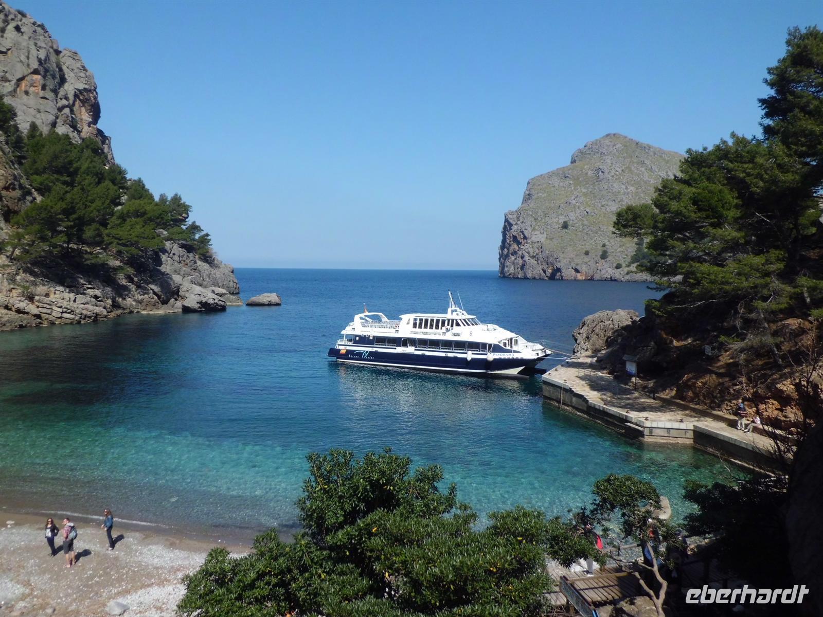 Unser letzter Ausflug zusammen mit Madgalena und Toni steht bevor. Selbstverständlich scheint wieder die Sonne! Heute werden wir 4 verschiedene Verkehrsmittel nutzen, um mit der „Große Inselrundfahrt“ das imposante Tramuntanagebirge komplett zu erleben. Da die Strasse von Inca nach Lluc auf Grund eines Oldtimerrennens am Vormittag gesperrt ist, beginnen wir unsere Inselrunde in Palma. Bei einer kleinen Stadtrundfahrt zeigt uns Madgalena nochmals die Rambla von Palma. Wir erreichen kurz nach halb zehn den Bahnhof des „Roten Blitzes“ in Son Reus. Unser Zug steht auch schon zum Einsteigen bereit und schon kann die Fahrt vorbei an blühenden Mandelbäumen, Zitronen- und Orangenplantagen und Olivenhainen beginnen. Durch 13 Tunnel schlängelt sich der Rote Blitz durch das Gebirge nach Soller. Hier angekommen steigen wir auch sofort in die bereitstehende Strassenbahn um. Diese ist nicht ganz so bequem wie eben der Zug, aber nicht weniger spektakulär. Quietschend und ratternd geht die Fahrt von Soller nach Port de Soller. Auch hier steigen wir fast nahtlos auf den Katamaran um, der uns entlang der steilen Nordküste nach Sa Calobra bringt. Das Meer ist ruhig („Stilles Wasser“ J) und allen bekommt die Seefahrt gut. In der Bucht von Sa Calobra verbringen wir unsere Mittagspause. Wir spazieren durch einen 50m langen und dunklen Fußgängertunnel zur benachbarten Torrent de Pareis, die durch Auswassung entstandene Schlucht und sein Durchbruch zum Meer. Pünktlich zur verabredeten Zeit steht auch Toni mit unserem Bus bereit, um uns wohl spektakulärste Serpentinenstrasse hinauf zu bringen. 15 Kilometer mit vielen Haarnadel-Serpentinen inklusive der „Krawattenknoten“-Straßenführung über fast 900m Höhenunterschied verlangen vollstes fahrerischen Können. Toni meistert es mit Bravour, zumal sehr viele Radsportler diese Straße als Trainingslager nutzen. Am Nachmittag besuchen wir die Klosteranlange Lluc mit der schwarzen Madonna. Einige nutzen die Nachmittagssonne für einen Kaffee, andere steigen den Kalvarienberg hinauf. Am späten Nachmittag müssen wir uns dann leider von unserer Reiseleiterin Magdalena und unserem Chaffeur Toni verabschieden. Sie haben uns in der Woche viele schöne und neue Seiten Mallorcas gezeigt!