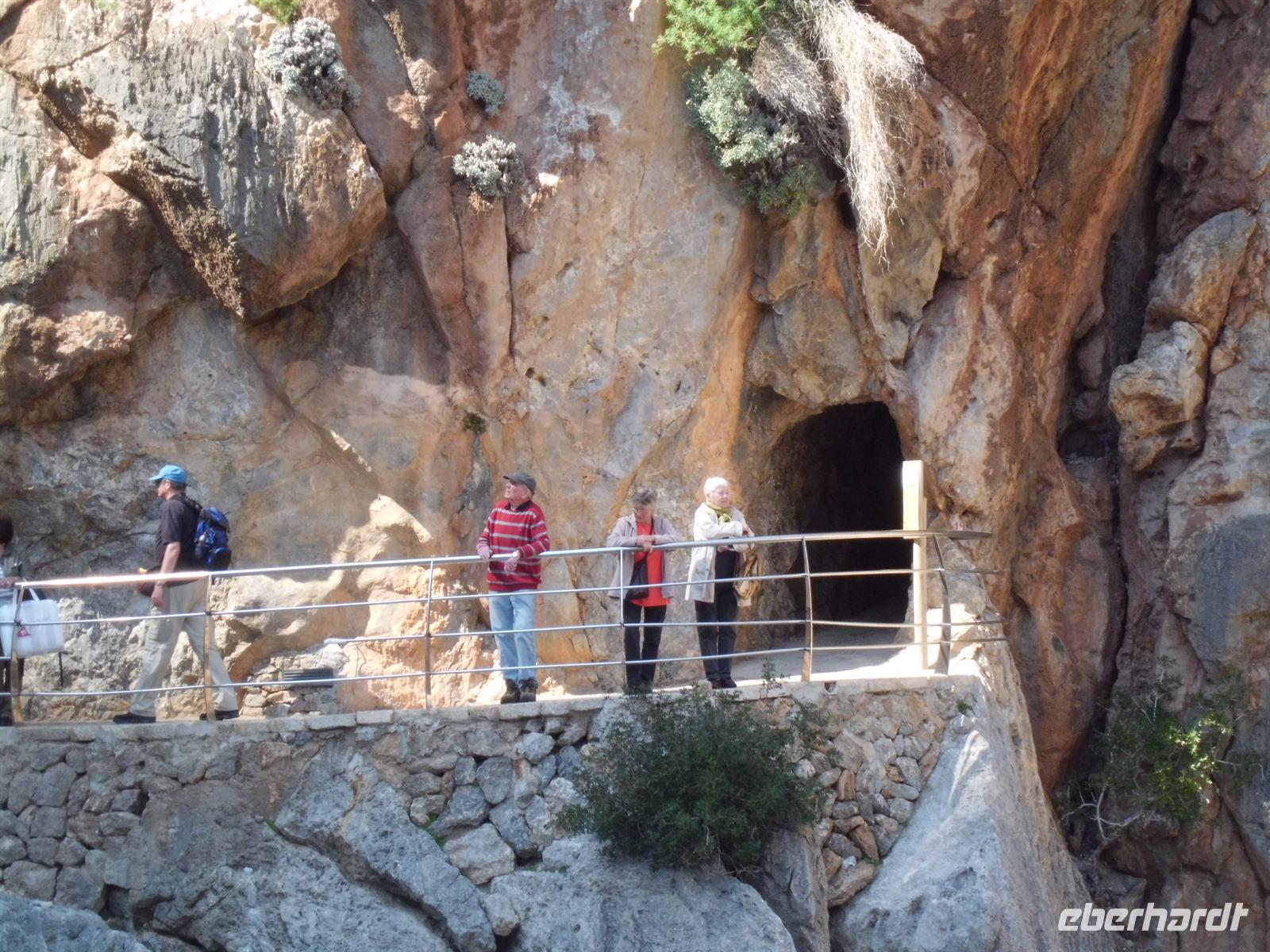Unser erster Ausflug an einem herrlich sonnigen Tag führt uns an die Ostküste Mallorcas. Magdalena, unsere Reiseleiterin und Toni, unser Buschauffeur für diese Woche erwarten uns am Morgen. Die Fahrt geht vorbei an Llucmajor und Felanitx hinauf zum Santuari Sant Salvador. Die kurvenreiche Auffahrt über enge Serpentinen wird belohnt mit einem fantastischen Blick über die Ebene und die Hügelkette an der Ostküste. Wir setzen unsere Fahrt entlang der Ostküste fort und erreichen bald das ehemalige Fischerdorf Portocristo. Beim Fotostopp an einem alten Wachturm haben wir einen guten Blick über die Steilküste, bevor wir zusammen mit vielen anderen Reisegruppen die Tropfsteinhöhle „Coves del Drac“ besuchen. Wir bestaunen beim Gang durch die ca. 1 ½ km lange Höhle die großartigen Formationen, die die Natur geformt hat. Am wohl längsten unterirdischen See geniessen wir ein kleines Konzert und das Lichtschauspiel des „Sonnenaufgangs“. Danach kann man mit dem Boot ein kurzes Stück über den See fahren oder geht zu Fuß Richtung Ausgang. Im Hafen von Portocristo verbringen wir unsere Mittagspause. Einige Restaurants und Cafes sind geöffnet und laden zum Verweilen ein. Andere nutzen die Zeit für einen Spaziergang. Am Nachmittag besuchen wir in Manacor die Fabriken von Perlas Majórica und OlivArt. Anhand einer kleinen Schauvorführung können wir die Herstellung der Perlen verfolgen. Auf unserer Rückfahrt zum Hotel sehen wir noch viele blühende Mandelbäume. Durch den späten Winter ist auch der Frühling auf Mallorca noch nicht vorbei.