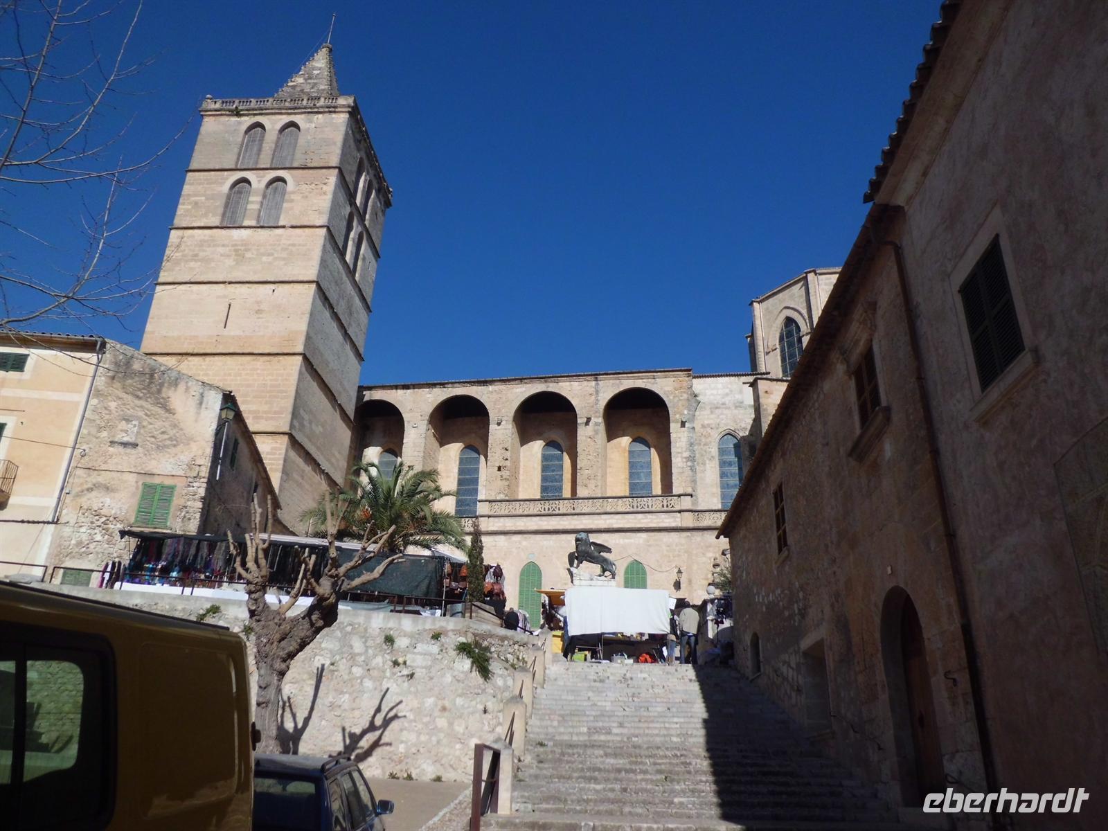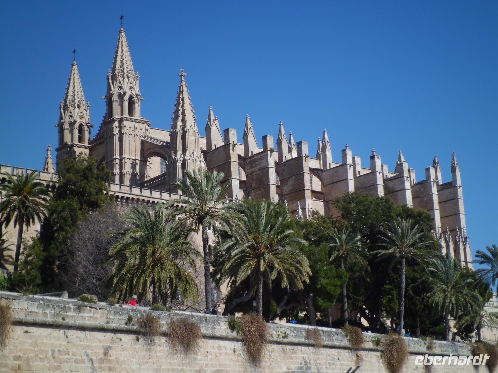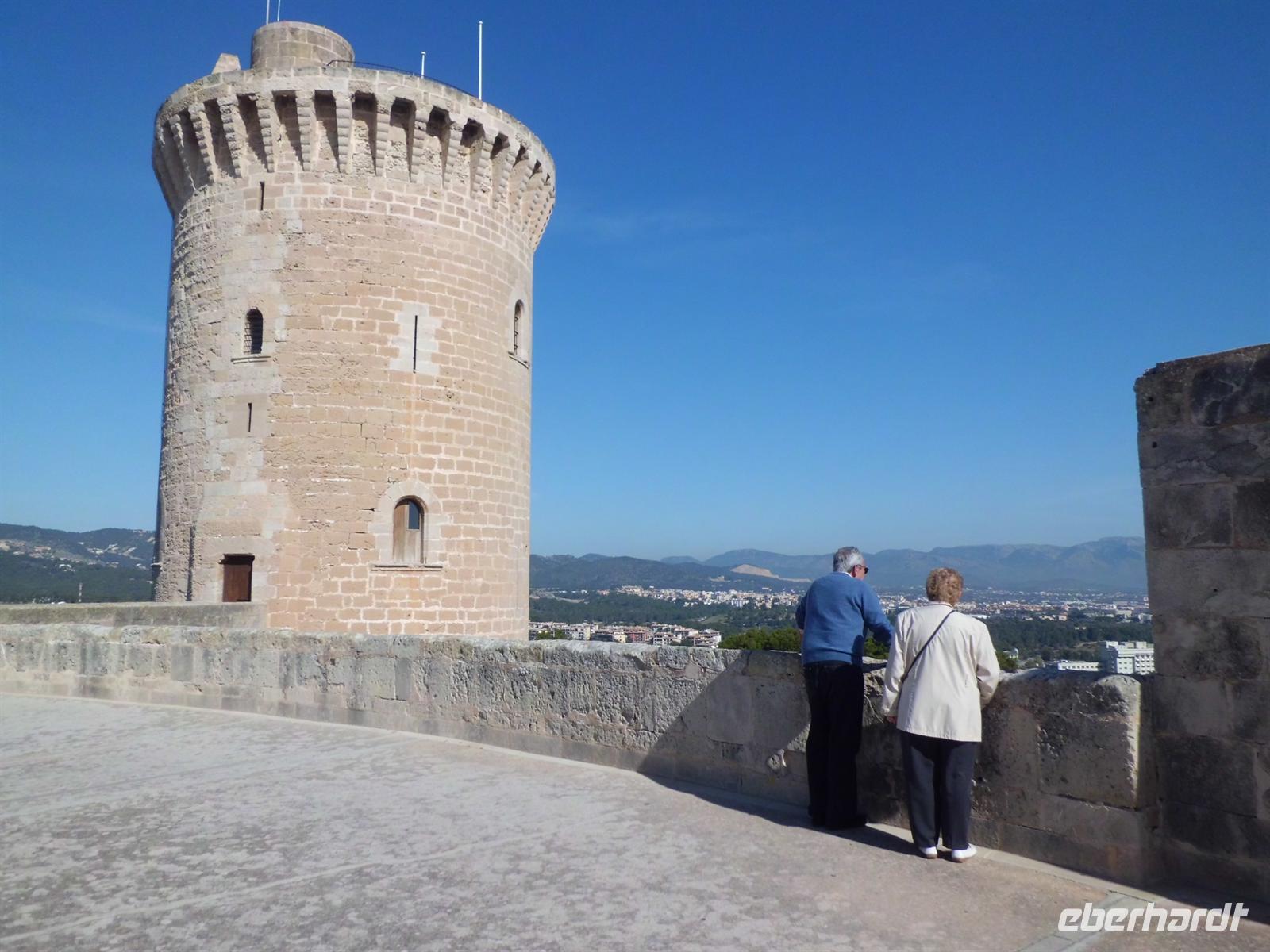 Auch am 2. Tag trifft sich unsere Reisegruppe pünktlich 9 Uhr an der Rezeption. Die Fahrt führt uns entlang der Küste bis Palma, vorbei an der Kathedrale La Seu, dem Palast von Almudaina und dem Yachthafen hinauf zum Castell de Bellver. Magdalena erklärt uns auf einem Rundgang die Burg und wir genossen abermals bei schönstem Wetter die Aussicht auf Palma. Unser Chauffeur bringt uns zum Hafen. Hier beginnt unsere Stadtführung mit dem Besuch der Kathedrale La Seu („Das Licht“). Auch von innen ist dieses 120m lange, 40m breite und 44m hohe Bauwerk imposant; das Licht der Sonne fällt durch die farbenprächtige Rosette an der Ostfront und zaubert ein komplettes Farbenspektrum an die Säulen. Magdalena erzählt uns zu vielen Teilen der Kathedrale Interssantes. Weiter geht unser Spaziergang durch die Gassen von Palma, vorbei am Rathaus, über den Placa Major bis zur großen Markthalle Mercat d´Olivar. Hier werden täglich bis Mittags Obst, Gemüse, Fisch und Fleisch feilgeboten. Gemeinsam laufen wir weiter zum nahgelegenen Placa Espanya mit dem sehenswerten Standbild Königs Jaume I, dem Rückeroberer Mallorcas von den Arabern. Hier endet unsere Stadtrundgang. Ein Großteil der Gruppe fährt zusammen mit Magdalena mit dem Linienbus zurück zum Hotel. Einige Gäste bleiben noch in Palma, um sich alle Sehenswürdigkeiten nochmal in Ruhe anzusehen oder bei einer Wanderung entlang der Bucht von Palma die 9 km zum Hotel zurück zu laufen.