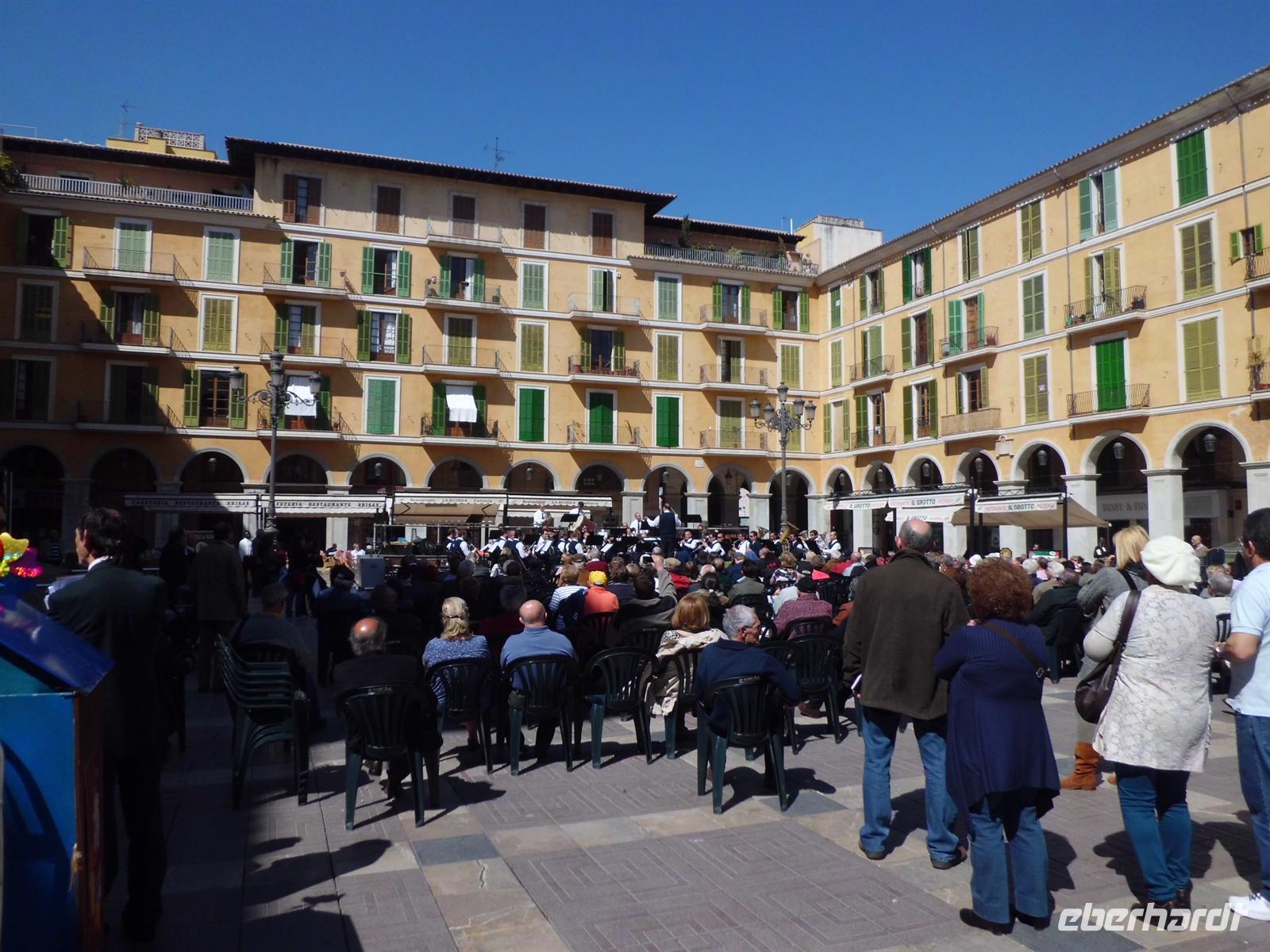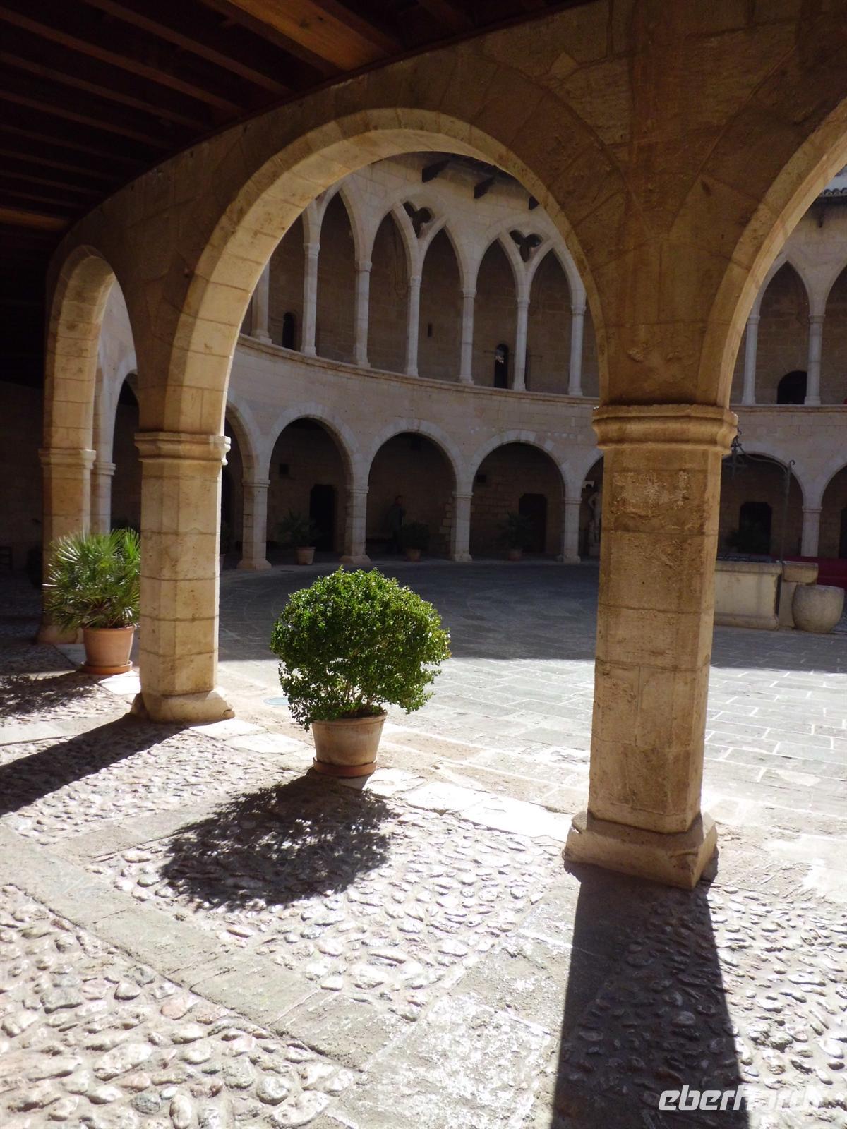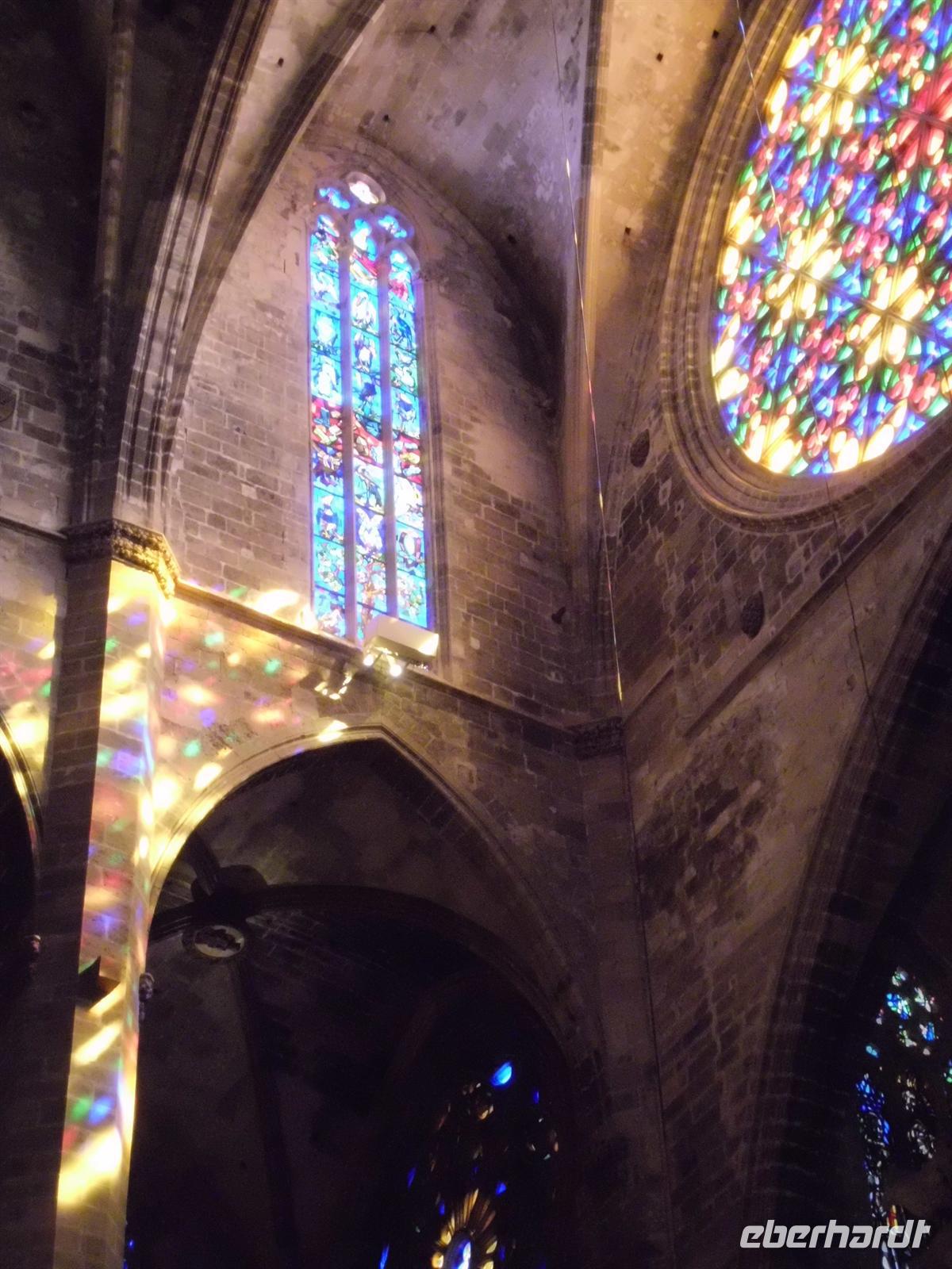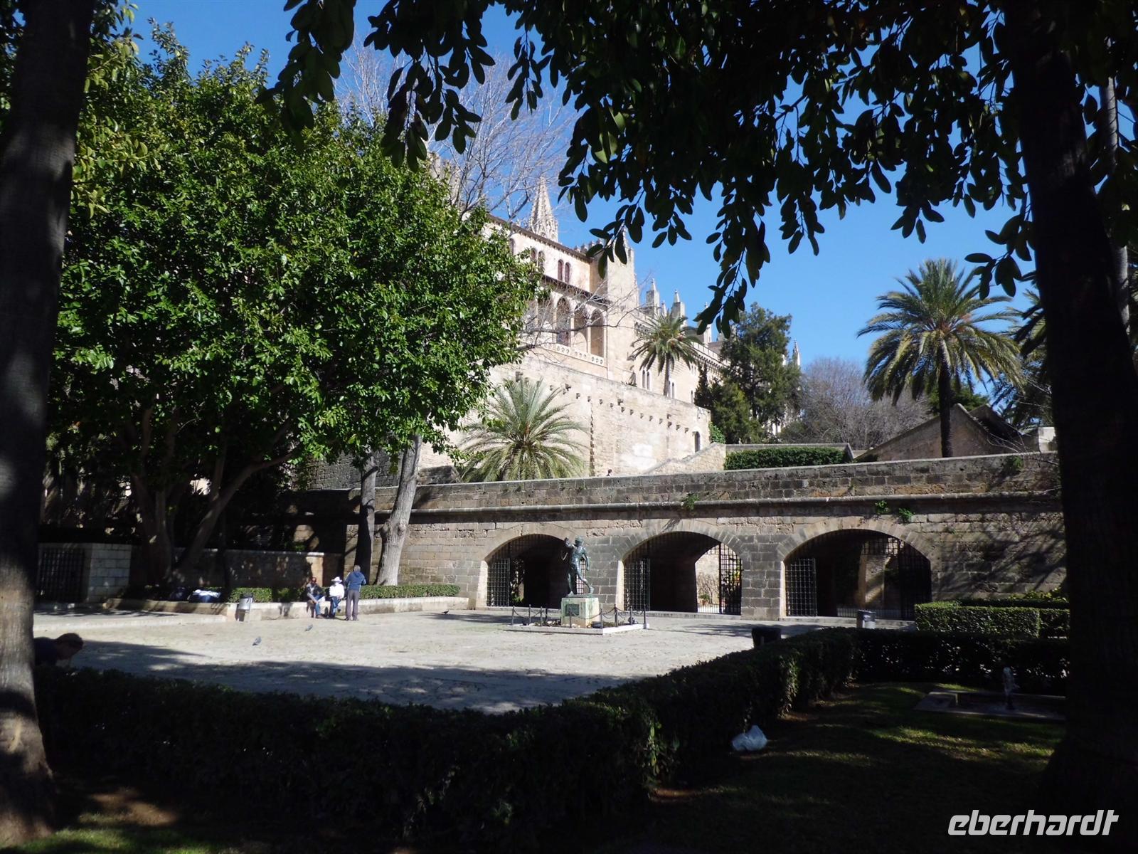 Auch am 2. Tag trifft sich unsere Reisegruppe pünktlich 9 Uhr an der Rezeption. Die Fahrt führt uns entlang der Küste bis Palma, vorbei an der Kathedrale La Seu, dem Palast von Almudaina und dem Yachthafen hinauf zum Castell de Bellver. Magdalena erklärt uns auf einem Rundgang die Burg und wir genossen abermals bei schönstem Wetter die Aussicht auf Palma. Unser Chauffeur bringt uns zum Hafen. Hier beginnt unsere Stadtführung mit dem Besuch der Kathedrale La Seu („Das Licht“). Auch von innen ist dieses 120m lange, 40m breite und 44m hohe Bauwerk imposant; das Licht der Sonne fällt durch die farbenprächtige Rosette an der Ostfront und zaubert ein komplettes Farbenspektrum an die Säulen. Magdalena erzählt uns zu vielen Teilen der Kathedrale Interssantes. Weiter geht unser Spaziergang durch die Gassen von Palma, vorbei am Rathaus, über den Placa Major bis zur großen Markthalle Mercat d´Olivar. Hier werden täglich bis Mittags Obst, Gemüse, Fisch und Fleisch feilgeboten. Gemeinsam laufen wir weiter zum nahgelegenen Placa Espanya mit dem sehenswerten Standbild Königs Jaume I, dem Rückeroberer Mallorcas von den Arabern. Hier endet unsere Stadtrundgang. Ein Großteil der Gruppe fährt zusammen mit Magdalena mit dem Linienbus zurück zum Hotel. Einige Gäste bleiben noch in Palma, um sich alle Sehenswürdigkeiten nochmal in Ruhe anzusehen oder bei einer Wanderung entlang der Bucht von Palma die 9 km zum Hotel zurück zu laufen.