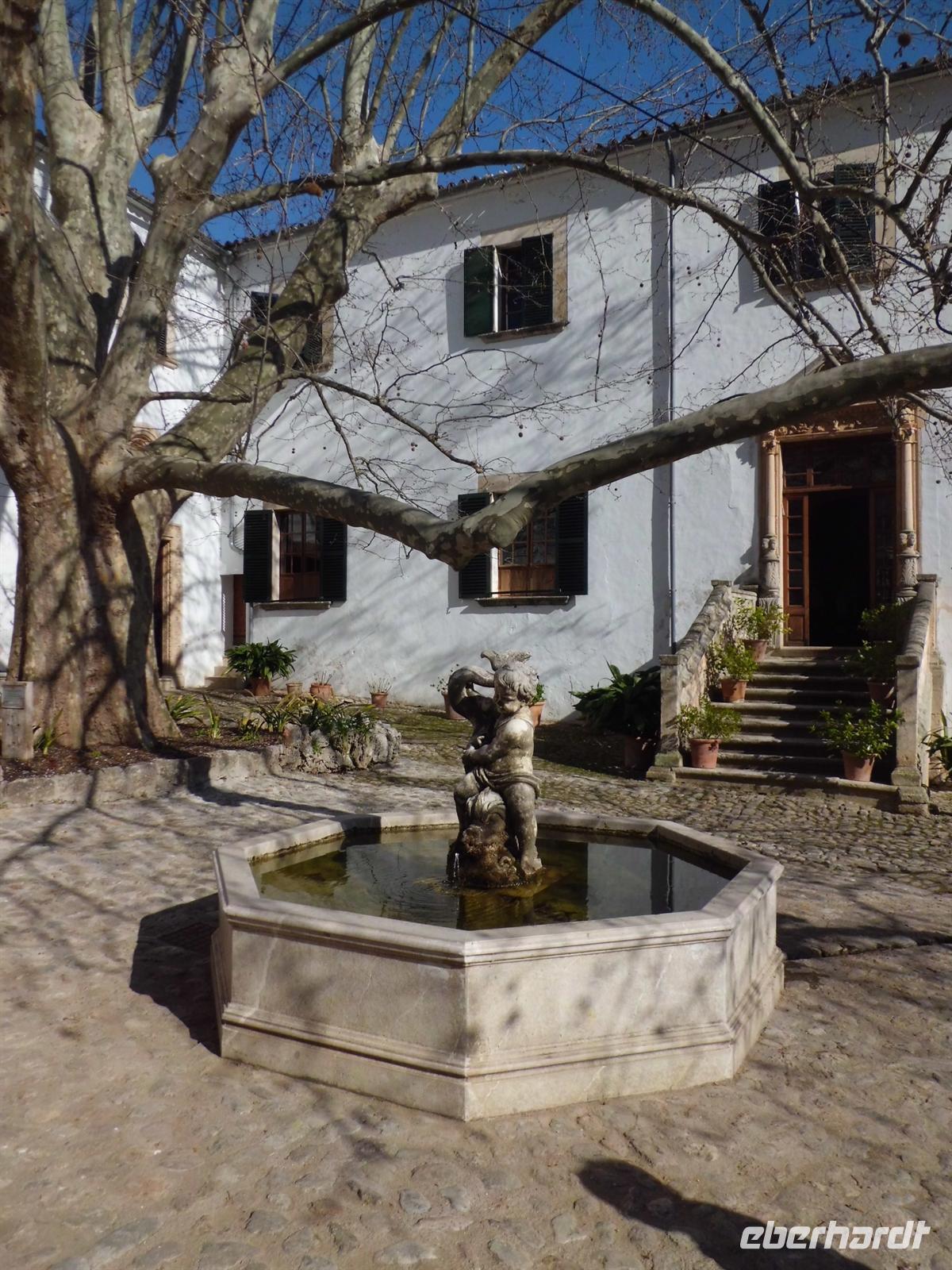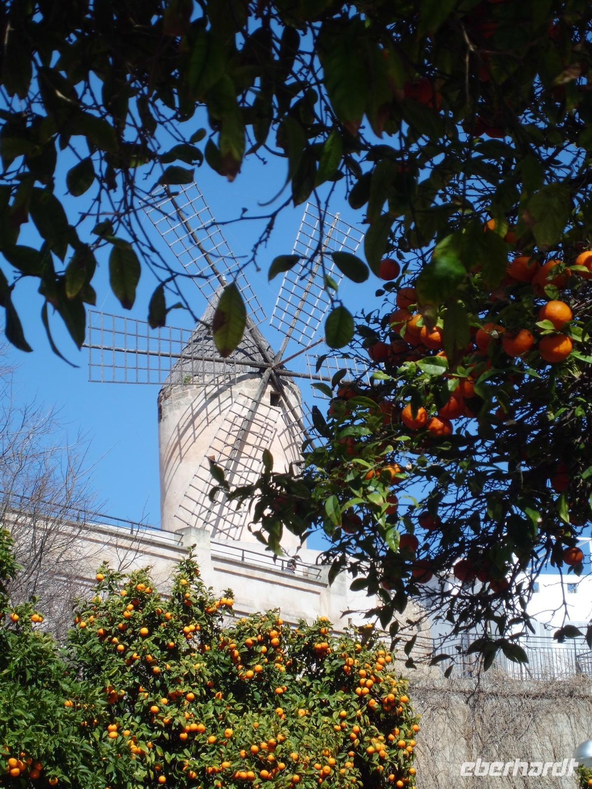 Auch heute lacht die Sonne vom wolkenlosen Himmel. Wir fahren vorbei an Palma hinauf nach Valldemossa. Magdalena führt uns durch die Klosterkirche und Kartause in der der Komponist Fréderic Chopin mit George Sand den Winter 1838/39 verbrachte. Wir genießen ein kleines Klavierkonzert bevor wir genügend Zeit haben, um die schönes Stadt selbst zu erkunden. Ich nutze die Gelegenheit, um für alle meine Gäste einen Coca de Patata, die Spezialität Valldemossas zu kaufen. Diese mallorquinische Kartoffelkuchen lassen wir uns am Mirador de Na Foradada mit Blick auf den Felsen „Die Gelöchterte“ munden. Gestärkt können wir uns nun auf die kurvenreiche Fahrt entlang der Nordküste nach Port de Soller begeben. Busse dürfen leider nicht bis zum Hafen fahren, somit parken wir einen kleinen Spaziergang von der Promenade entfernt. Wir haben wieder ausreichend Zeit um Mittag zu essen und zur Aussichsplattform oberhalb des Hafens hinauszusteigen. Von hier haben wir eine schönen Blick über die Bucht von Soller und die Steilküste mit dem tief unten liegenden Meer. Nach nur 15 Minuten Fahrt erreichen wir auch schon unser nächstes Ziel, die „Gärten von Alfabia“. Bei einer Führung durch die Gartenanlage und das Herrenhaus erfahren wir so einiges über die typischen Pflanzen der Insel und die vielen verschiedenen Palmenarten. Wer möchte, probiert einen frisch gepressten Orangensaft und ein Stück Mandelkuchen. Unser Rundgang endet an der alten aber sehr impossanten Ölmühle.