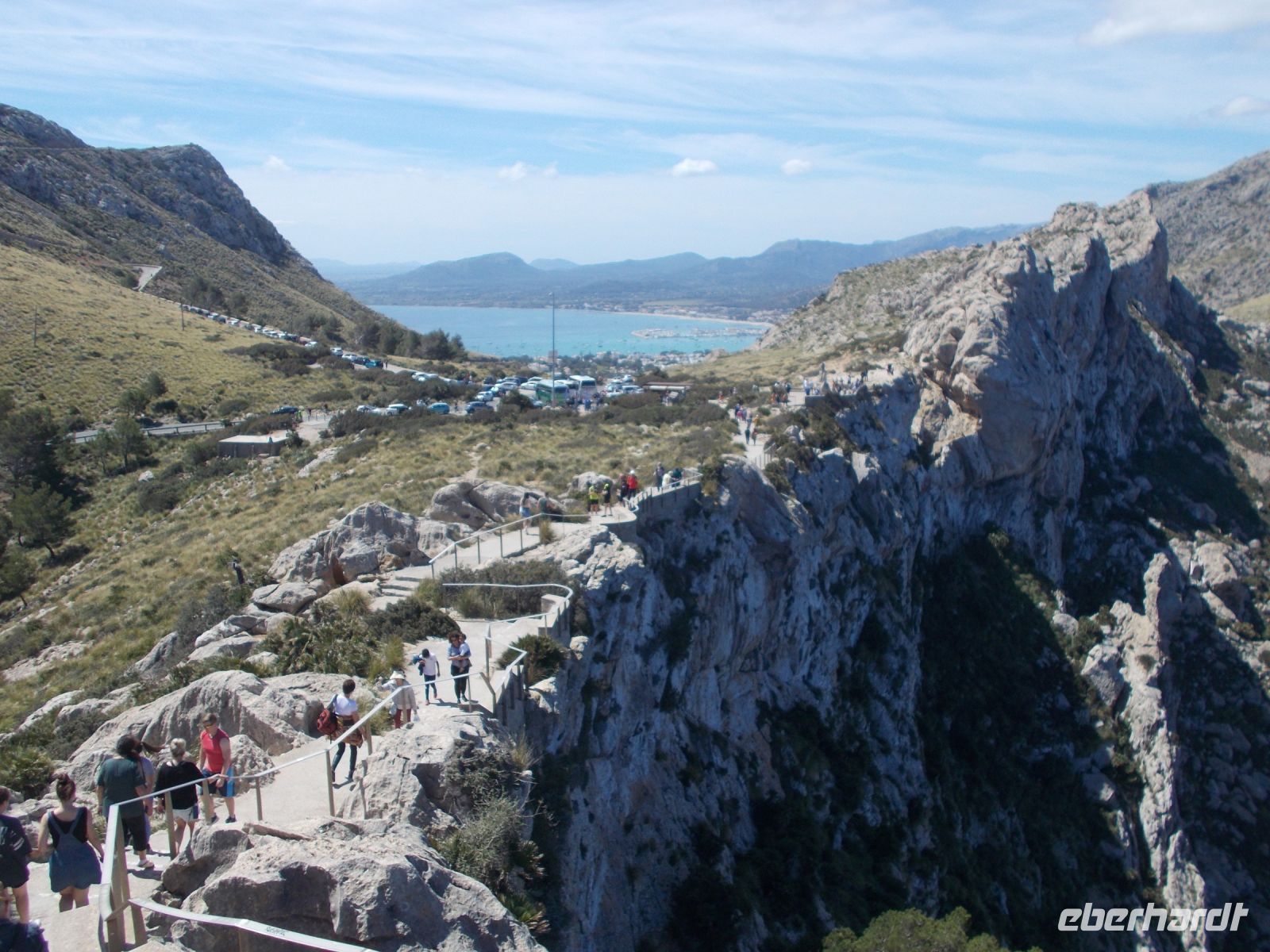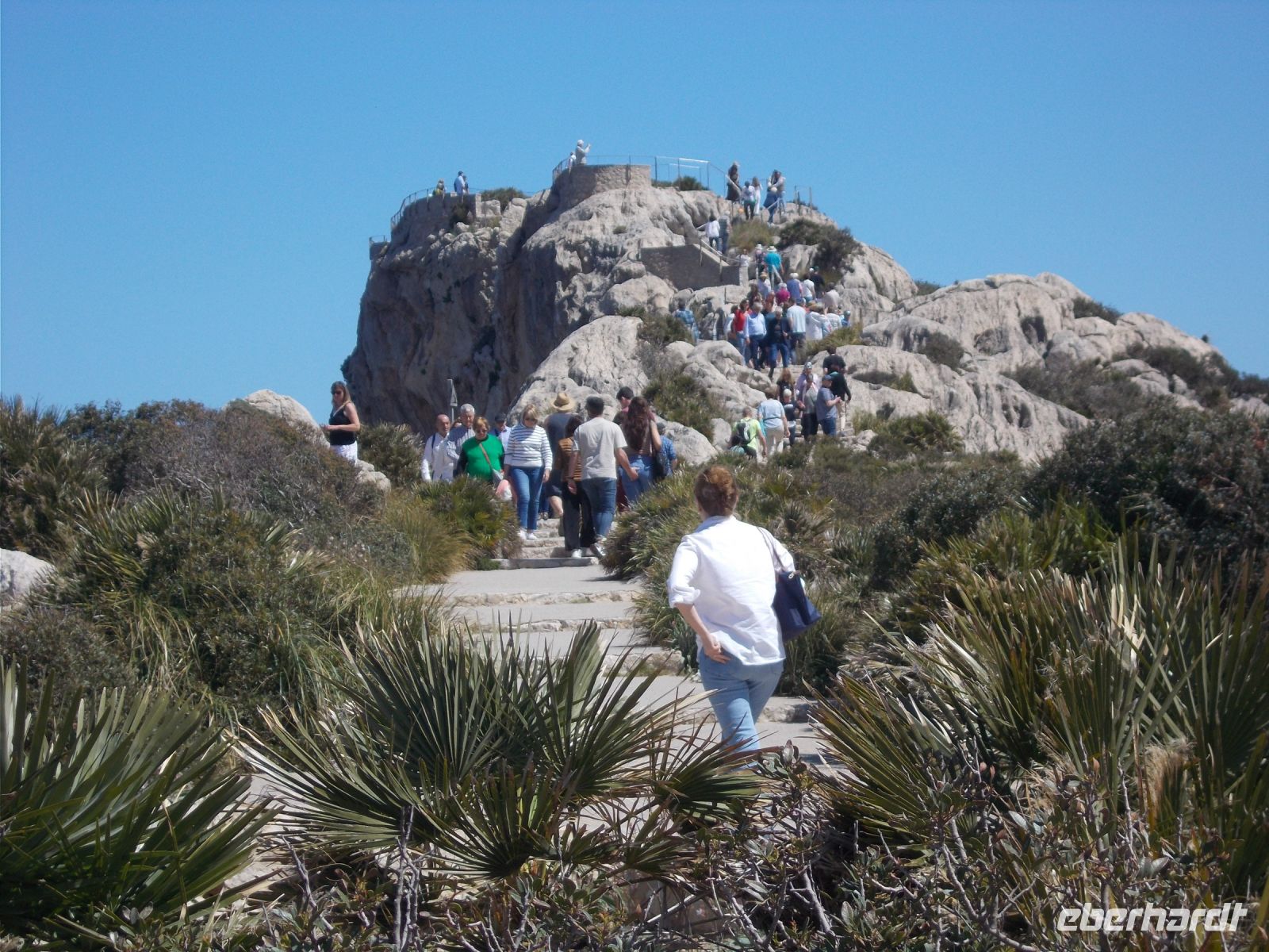 Heute geht unsere Tour "Nordwärts".Zuerst steuern wir den, seit 1930 vorallen bei Engländern, beliebten Badeort Pollenca an. Nach einem Bummel über die ,vielleicht schönste, Strandpromenade bestiegen wir ein Boot zur Bucht von Formentor. Die halbkreisförmige Platja Formentor besticht durch türkisfarbenes Wasser. Leider gab es in der Nähe einen Waldbrand und so beobachteten wir die Löscharbeiten ,die aus der Luft getätigt wurden. Uns zog es aber hoch hinaus und so befuhren wir wieder eine Serpentinenpiste ,konstuiert vom Meister der waghalsigen Panoramastrecken - Antonio Paretti - .Angekommen am Cap de Formentor, konnten wir das Denkmal für den Erbauer bestaunen und wagten einen Spaziergang zum "Taubenschlag". Ein fantastischer Aussichtspunkt ,dort wo die Serra de Tramuntana im Meer versingt.