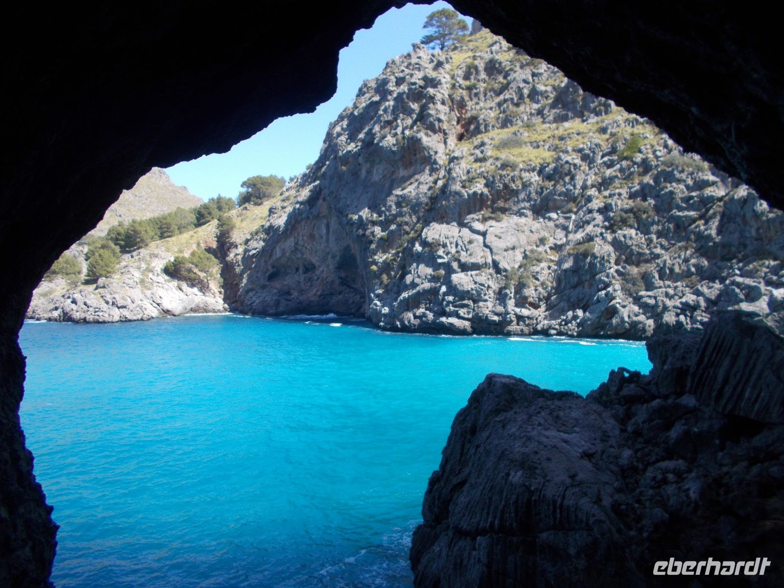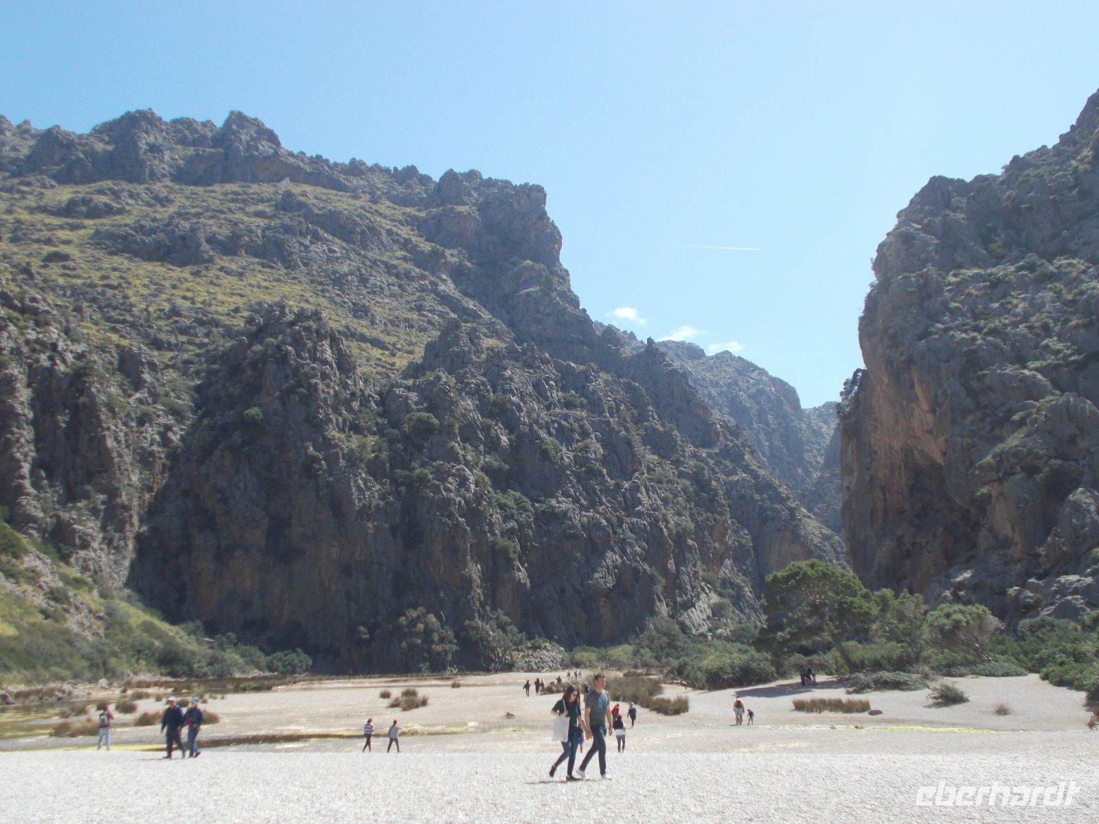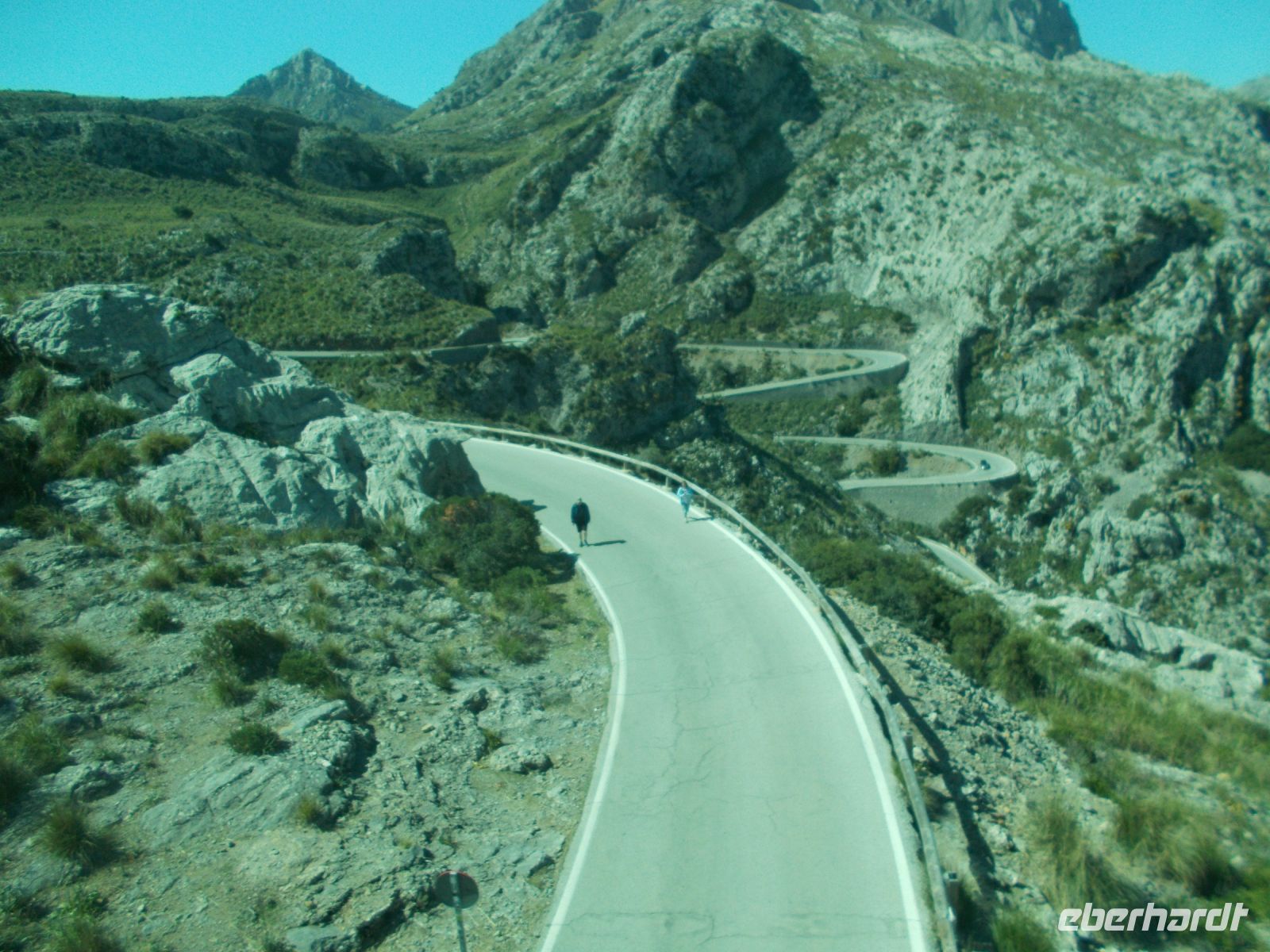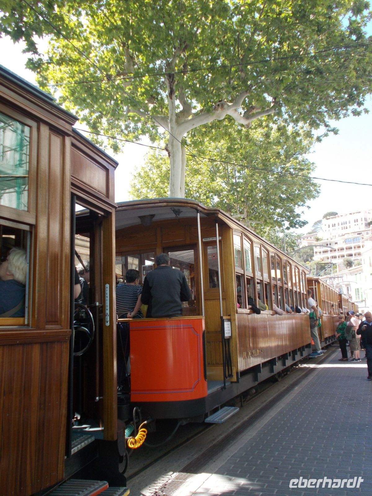 Und schon wieder Serpentinen . Diesmal zum Kloster Lluc, dem bedeutensten Wallfahrtsort der Insel.Aber noch nicht genug . Der richtige Nervenkitzel sollte noch folgen,- auf der Straße nach Sa Colobra. Auf 12 km und 800 Höhenmeter , mit zahlreichen Haarnadelkurven gespickt ,überwindeten wir das Paradestück des genialen Straßenbaumeisters Paretti. Der Krawattenknoten - Nus de sa Corbata- ist wohl die berühmteste Kehre. Diese Strecke wird von Fahradfahrern bevorzugt und dementsprechend schwierig für die vielen Busfahrer ,die die Touristen nach Sa Colobra bringen,zu fahren. Unten angekommen, sahen wir unser Schiff , mit dem wir nach Soller fahren wollten, abdrehen. Wegen starker Brandung war kein anlegen möglich. Es hielt uns nicht davon ab, durch einen Felstunnel, zur versteckten Bucht, Torrent de Pareis, zu wandern.In der Zwischenzeit hatte die Reederei eine Variante des Zustiegs gefunden. Wir konnten in der kleinen Cala Tuent an Bord gehen.Ein wunderbares Bild eröffnete sich uns - bei der Hafeneinfahrt von Port Soller. Hier wartete auch schon der sogenannte "Rote Blitz" die Straßenbahn nach Soller. Hier hatten wir etwas Aufenthalt bevor die Fahrt, mit dem historischen Zug ,nach Palma weiter ging. Am Tag der Eröffnung der Eisenbahnlinie, soll die Titanic gesunken sein. Wir erreichten, durch 13 Tunnel und wunderbare Ausblicke, wohlbehalten Palma.