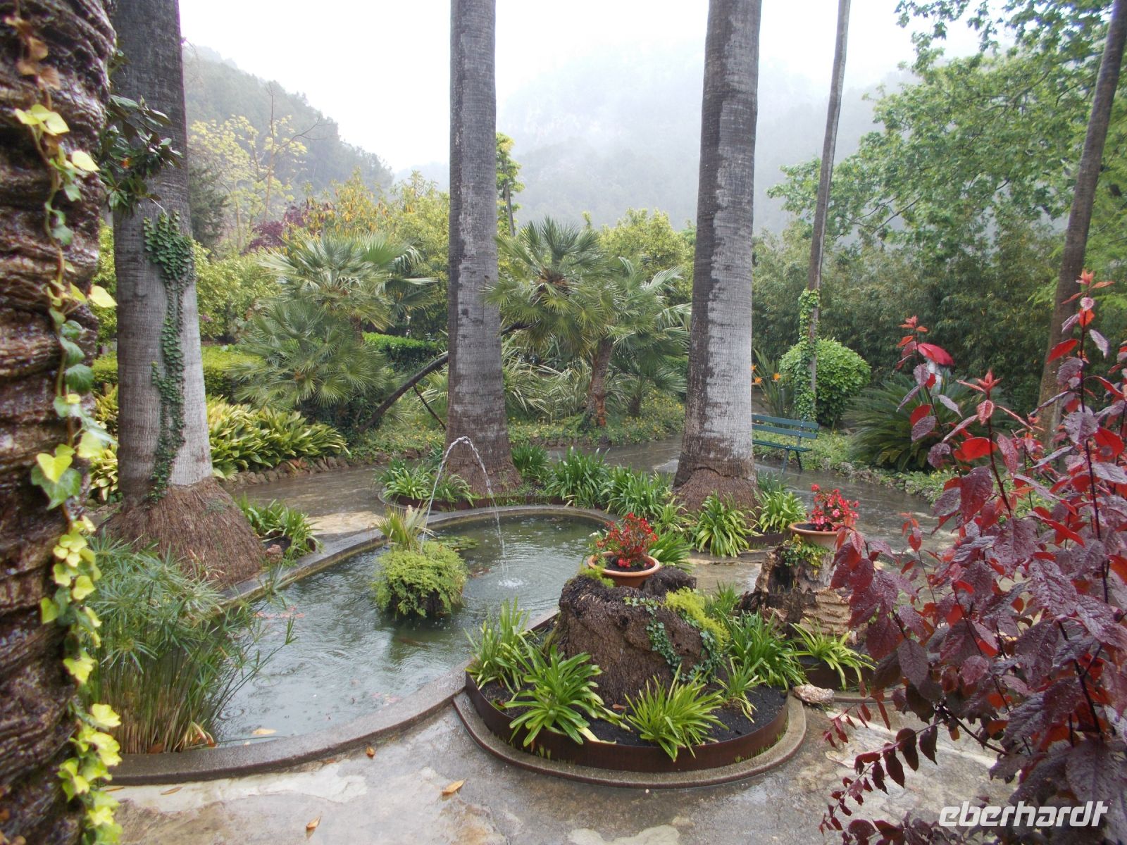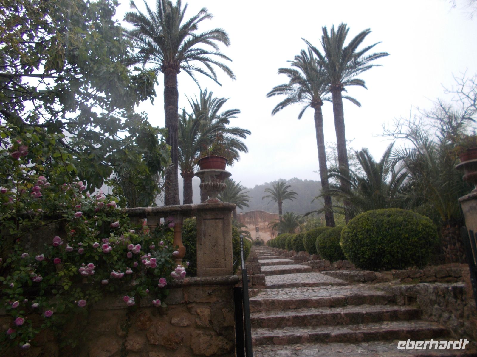 Wir wollten noch weitere Einblicke in die ehemalige mallorquinische Adelswelt bekommen und fuhren zum Jardins d Alfabia. Die Anlage wurde im 12.Jahrhundert von einem arabischen Wesir, in der Nähe einer Bergquelle, angelegt. Man fühlt sich heute noch ,wenn es nicht in Strömen regnet, wie in den Märchen von "1001 Nacht" versetzt. Heute ist der Landsitz in privater Hand ,der Fam. Zaforteza, die den Zugang für die Öffentlichkeit gewährleistet und pflegt.