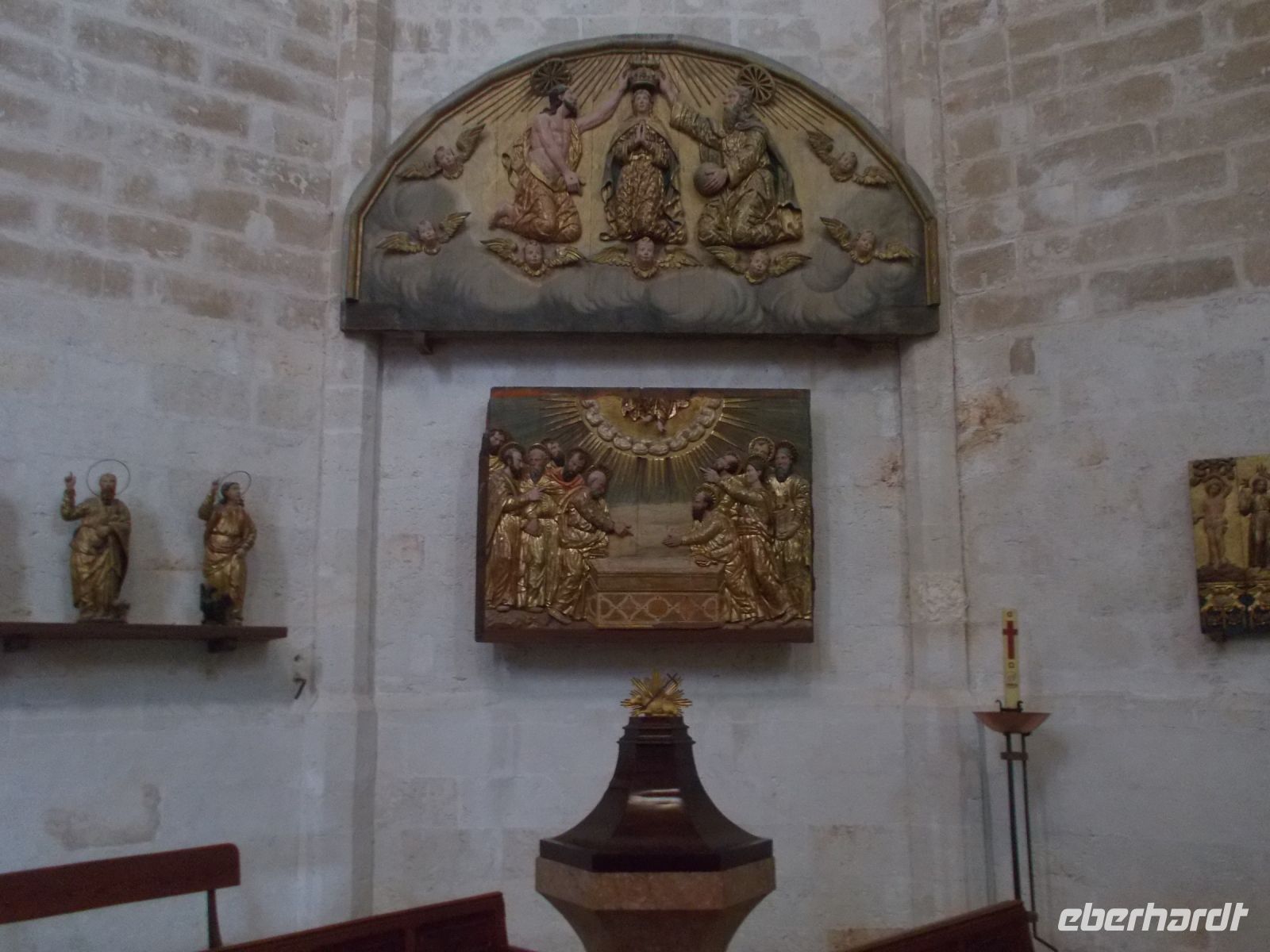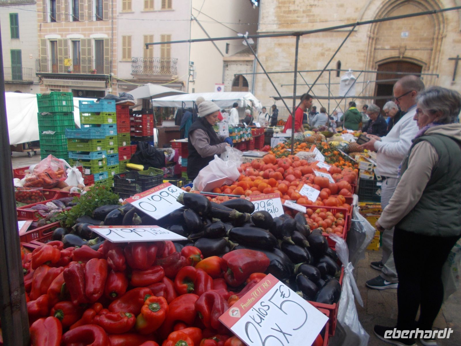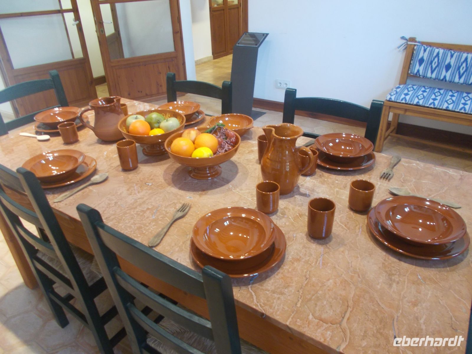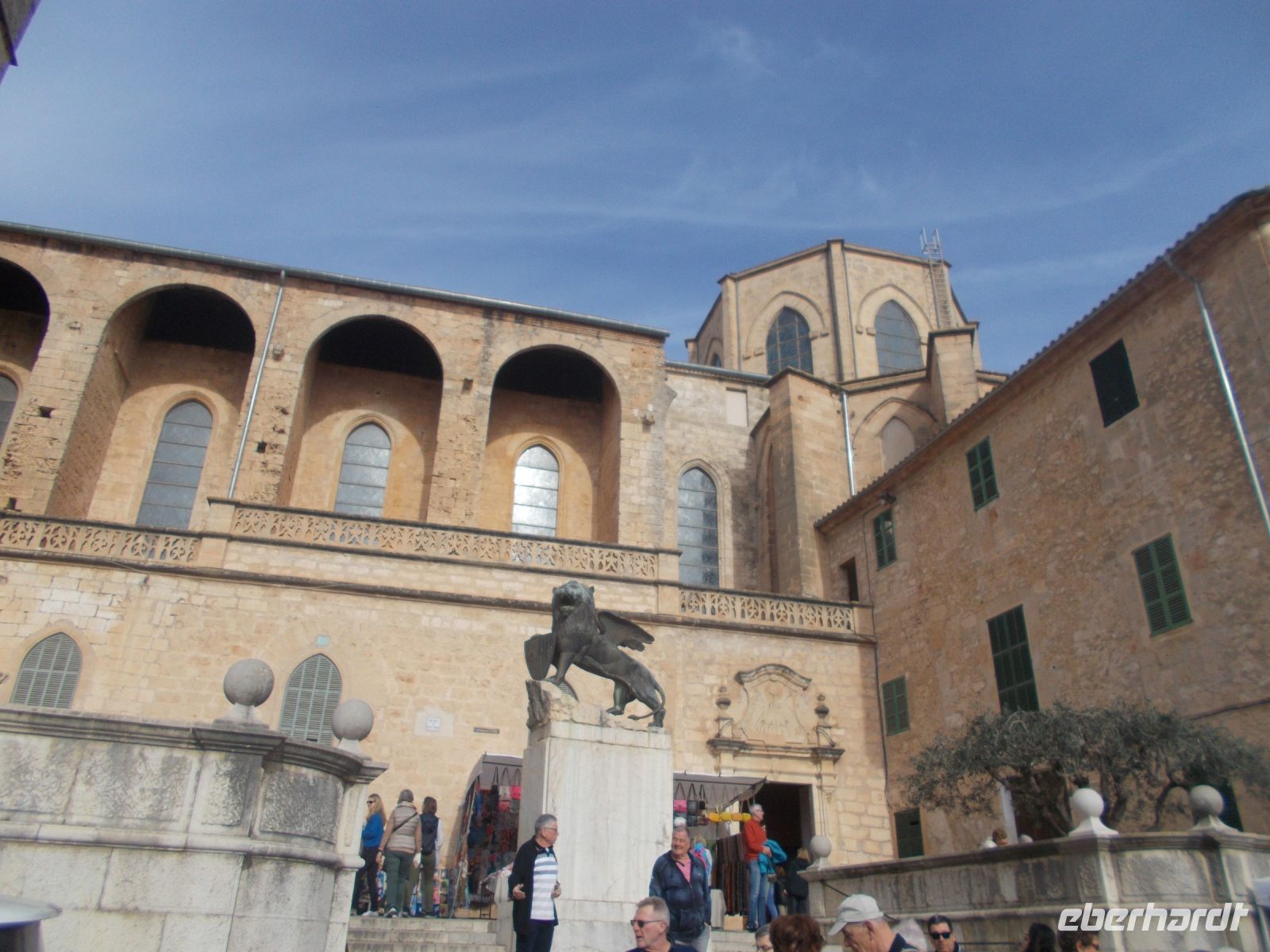 Heute geht es in die Inselmitte ,zuerst nach Sineu. Im Mittelalter sogar Residenzstadt von König Jaumes II..Man spürt deutlich die Geschichte wenn man durch die engen Gassen streift und vor der Kirche den geflügelten Löwen entdeckt. Er symbolisier den heil. Markus den Stadtpatron der auch die Kirche "Maria de Sineu" beschützt. Mittwochs ist es mit der Ruhe vorbei. Seit 1306 findet dort der größte Tiermarkt der Insel statt.Vom Esel bis zur Taube ,es ist alles im Angebot. Schöner ist allerdings der Obst- und Gemüsemarkt vor der Kirche ,da hier nicht nur Touristen zu finden sind. Wie es auf einem Herrensitz zuging erlebten wir auf "Es Calderers".Ein gelungener Besuch in der Vergangenheit, wunderbar restauriert und zugänglich gemacht. Da wir die einzige Reisegruppe vor Ort waren, hatten wir genügend Zeit diesen Ausflug zu genießen. Der Rückweg führte uns durch das Weinanbaugebiet Santa Eugenia und wir besuchten die Weinkeller "Vinjana Taujana". Ein kleines ,feines Unternehmen mit ausgezeichneten Weinen.( Bei einer Blindverkostung zu den besten Weinen gekürt.) Wir durften drei dieser Rebensäfte probierren und kleine Leckereien schlemmen. So manche Flasche Vino fand den Weg ins Hotel und vielleicht weiter nach Deutschland.