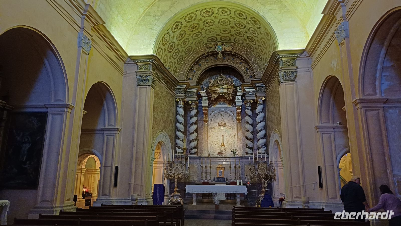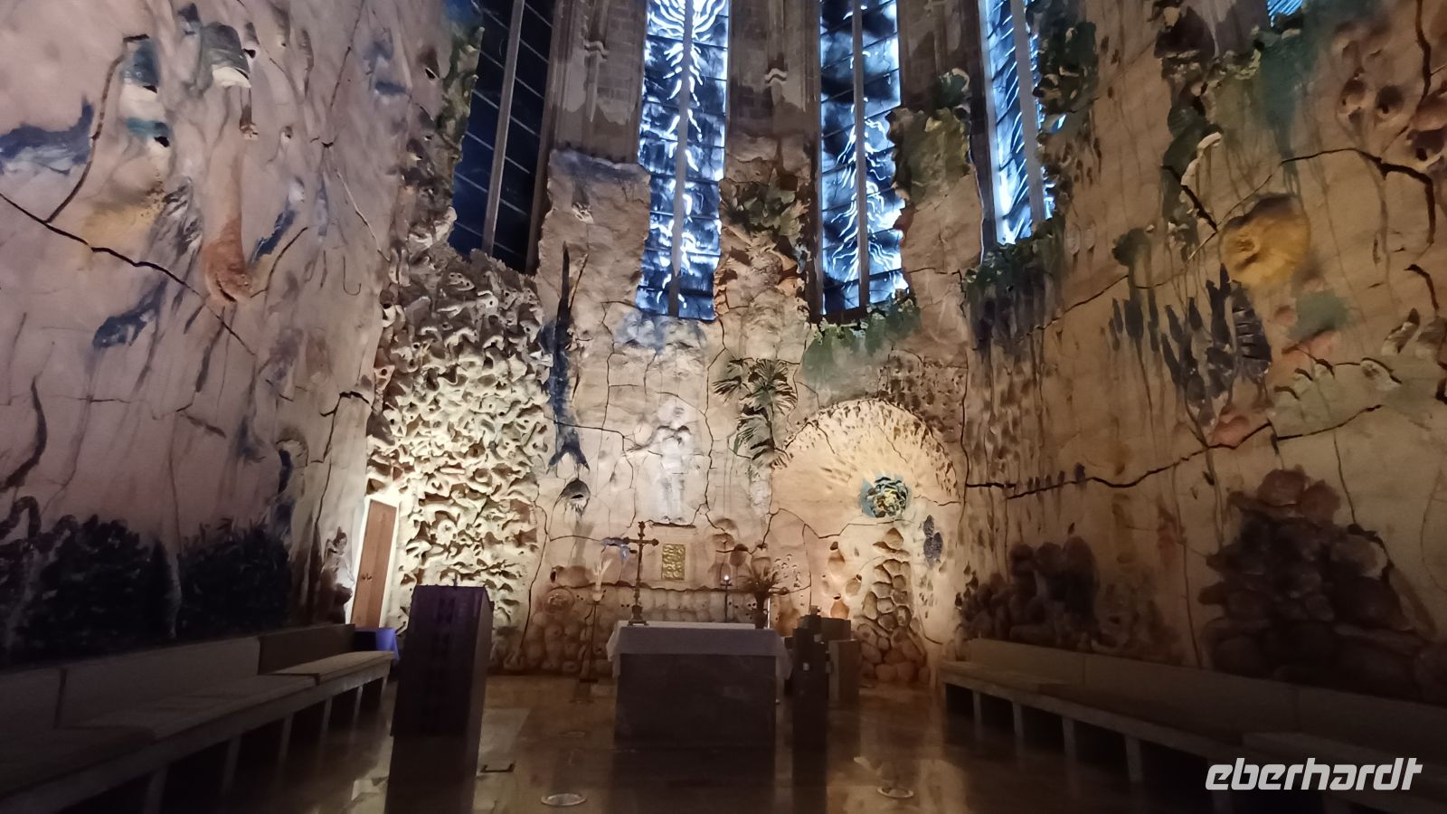 Nach einem Fotostopp an einer wunderschönen Bucht mit Blick über die Ostküste erreichten wir Porto Christo. In dem kleinen, im Februar verträumten Örtchen, konnten wir am kleinen Strand die Seele baumeln lassen, am Hafen spazieren gehen oder einen Cafe Americano in einem der zahlreichen Restaurants genießen. Am Nachmittag besuchten wir in San Salvador das Castel de Santueri. Eine enge, schmale Serpentinenstraße, die auf den 501m hohen heiligen Berg von Felanitx, inmitten einer Ebene gelegen, forderte die Fahrkünste unseres Busfahrers. Wir besichtigten auf dem Gipfel die Wallfahrtskirche mit einer Madonnen-Statue aus dem 13. Jahrhundert und lauschten einer musikalischen Ton- Licht-Installation. Von der Aussichtsterasse hatten wir einen tollen Blick auf die unbewohnte Insel Cabrera & in der Ferne konnten wir die kleine Schwester Mallorcas, Menorca entdecken.
