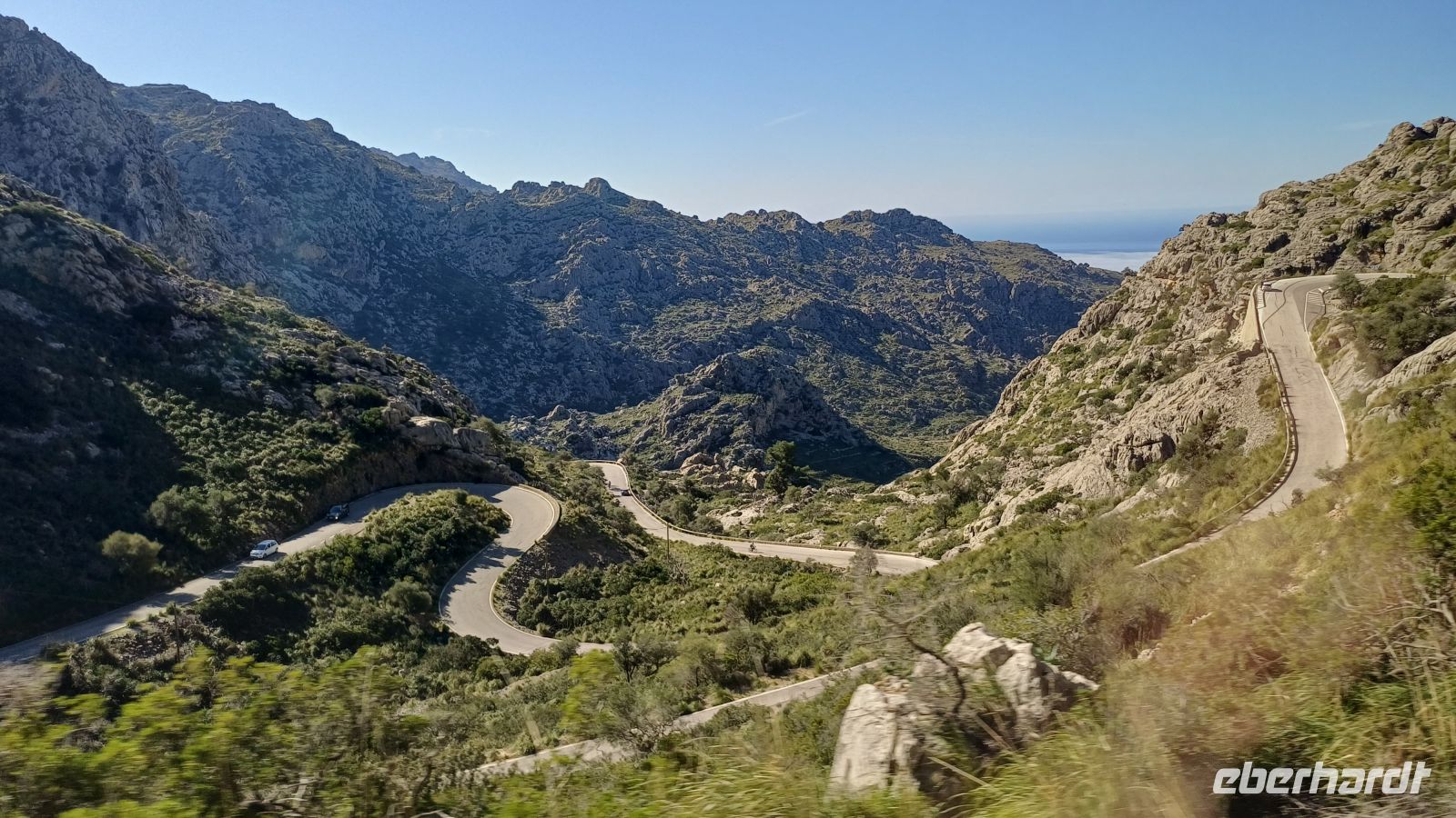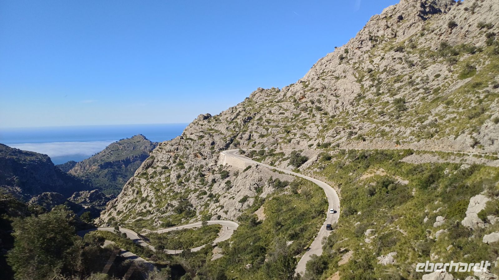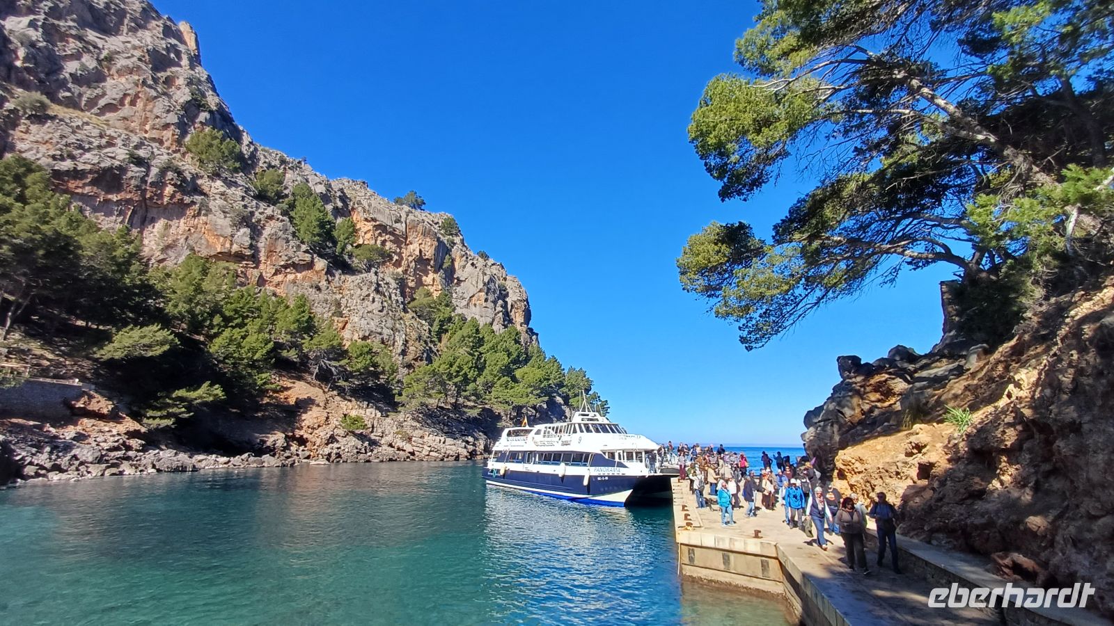 Hier erwartet uns bereits das Boot "Panorama" und wir setzten unseren Ausflug nun, entlang der zerklüfteten Nordküste, auf dem Wasser fort. In der kleinen Bucht von Sa Calobra bekamen wir wieder Land unter den Füßen. Hier befindet sich ein kleines Naturwunder, die Schlucht "Torrent de Pareis", welche wir bei einem kleinen Spaziergang erkundeten. Danach ging es mit unserem Bus auf eine traumhafte Serpentinenfahrt ins Tramuntana-Gebirge mit dem höchsten Berg Puig Major - 1445m hoch.