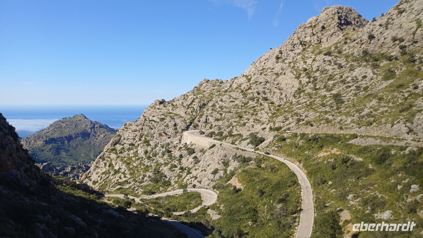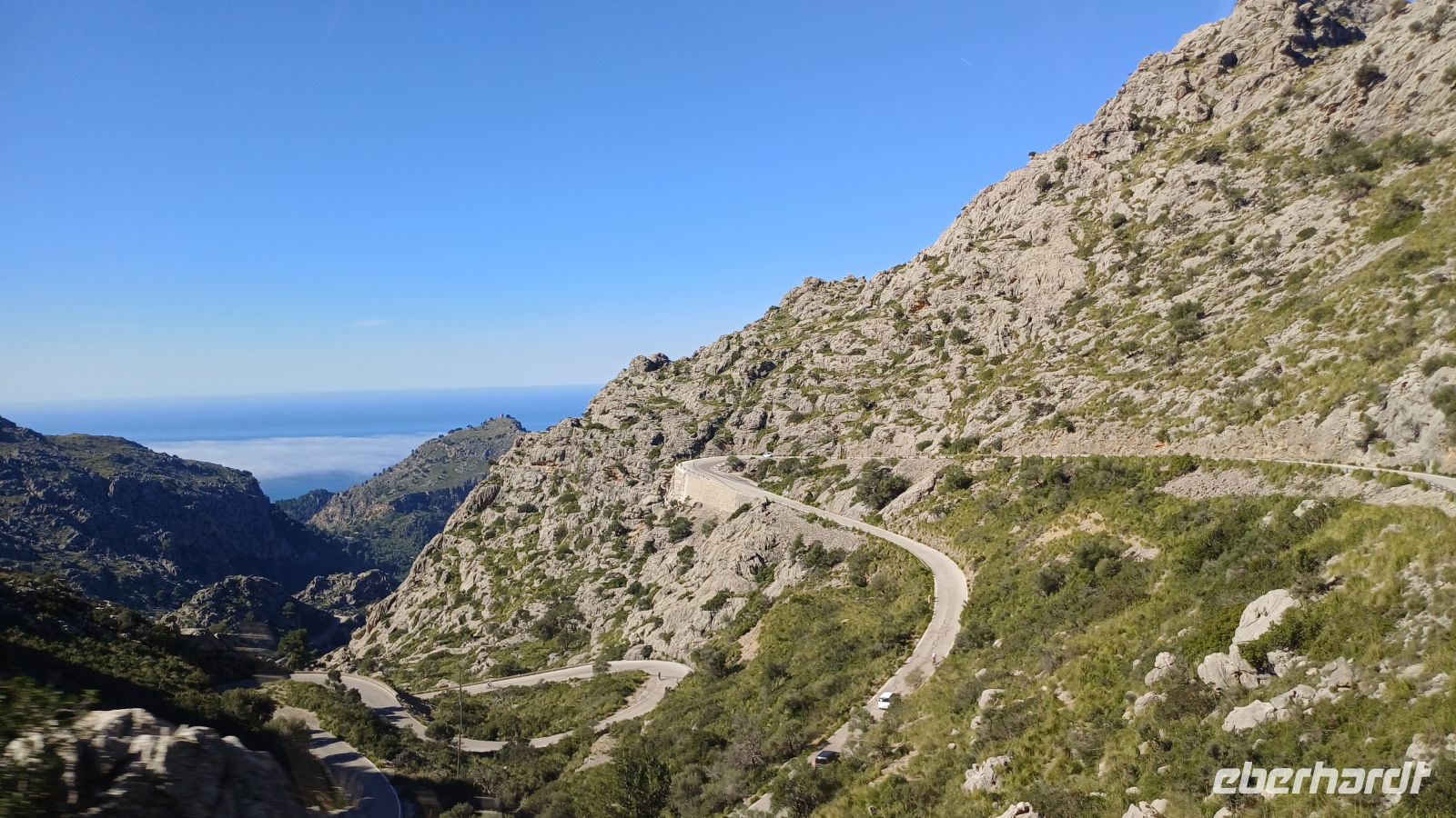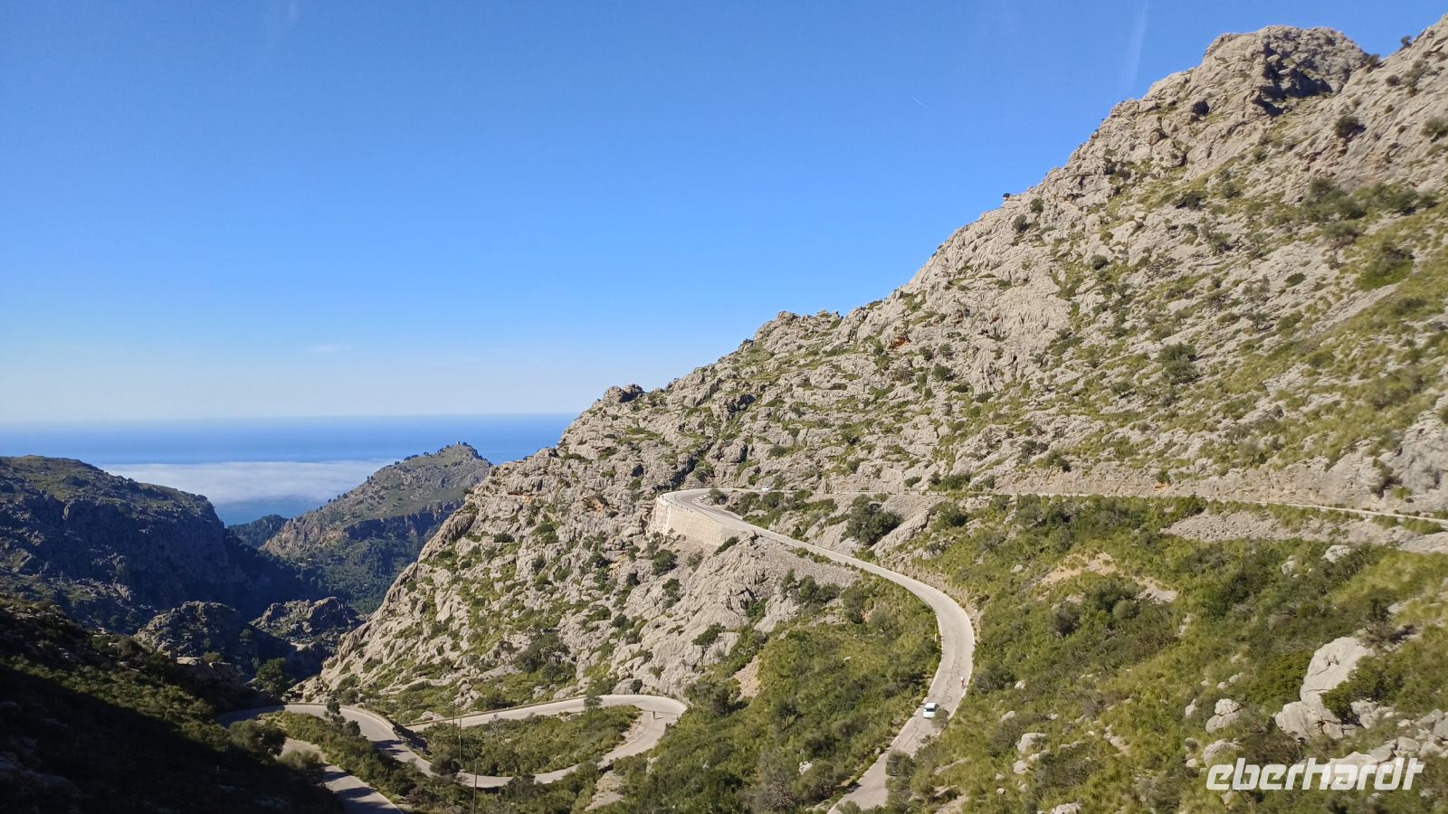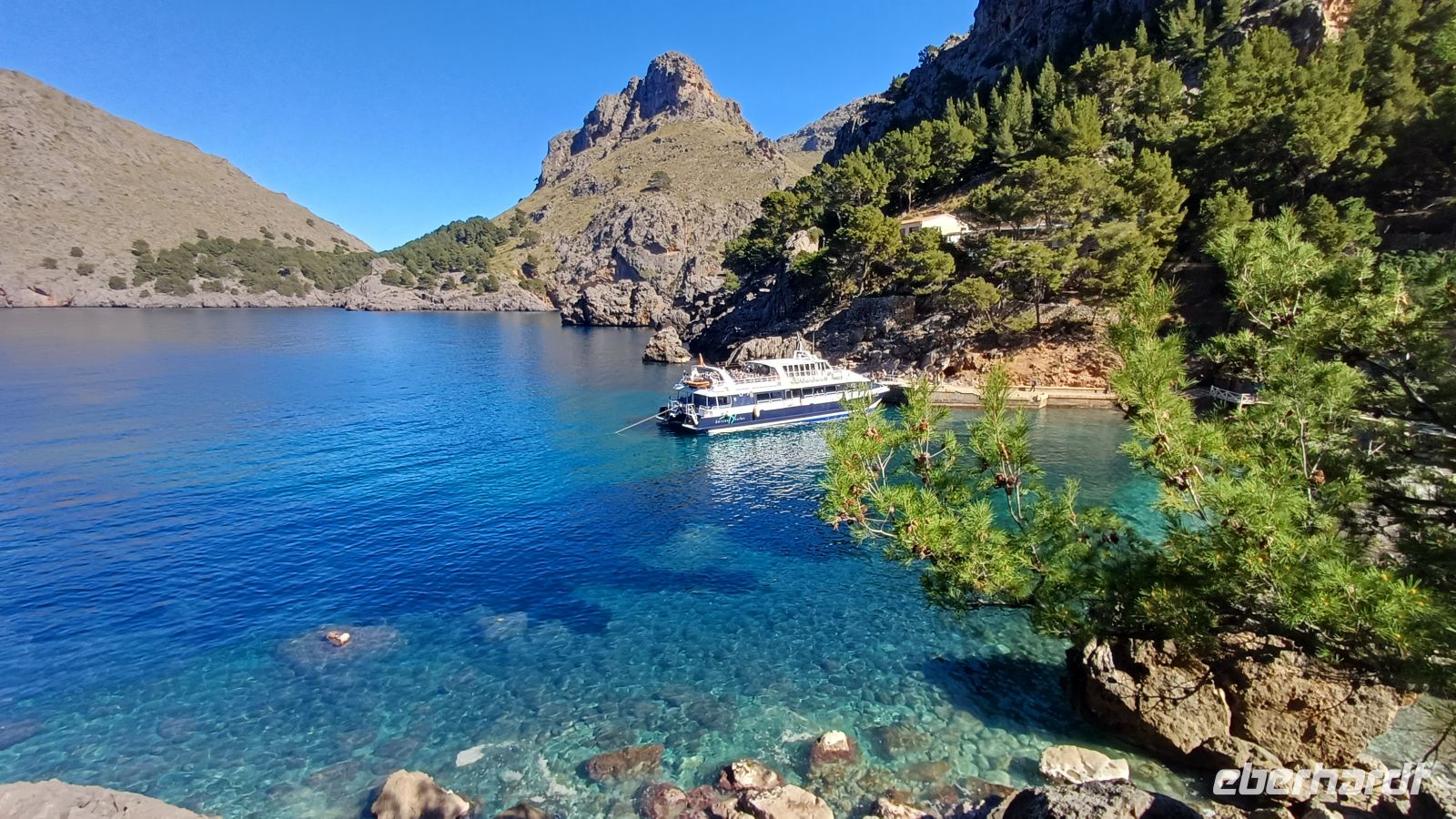 Hier erwartet uns bereits das Boot "Panorama" und wir setzten unseren Ausflug nun, entlang der zerklüfteten Nordküste, auf dem Wasser fort. In der kleinen Bucht von Sa Calobra bekamen wir wieder Land unter den Füßen. Hier befindet sich ein kleines Naturwunder, die Schlucht "Torrent de Pareis", welche wir bei einem kleinen Spaziergang erkundeten. Danach ging es mit unserem Bus auf eine traumhafte Serpentinenfahrt ins Tramuntana-Gebirge mit dem höchsten Berg Puig Major - 1445m hoch.