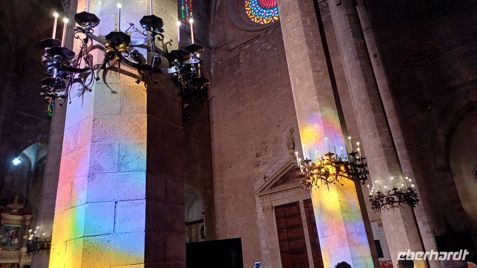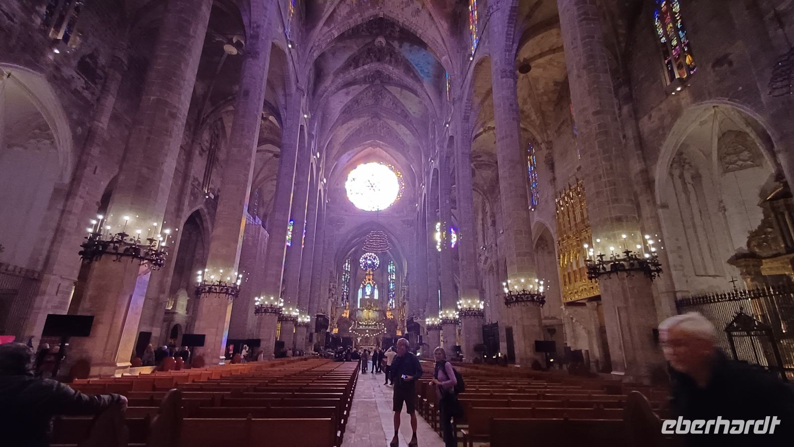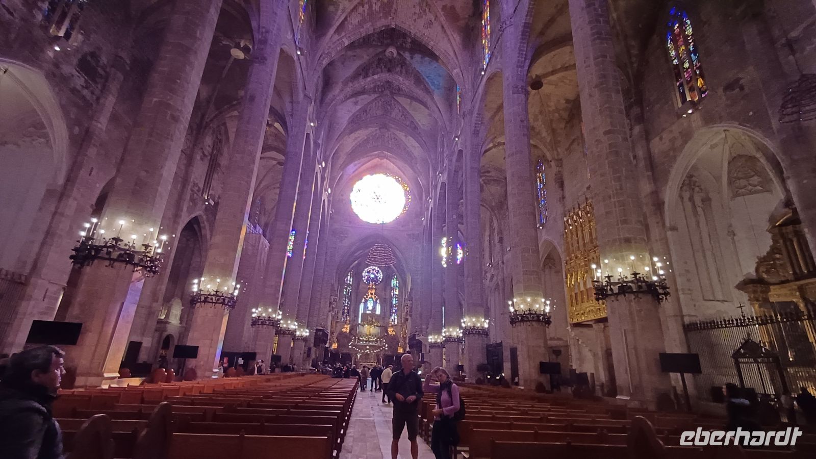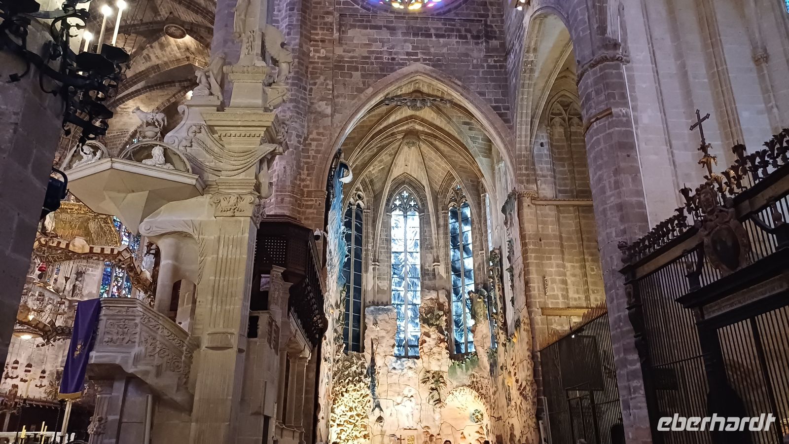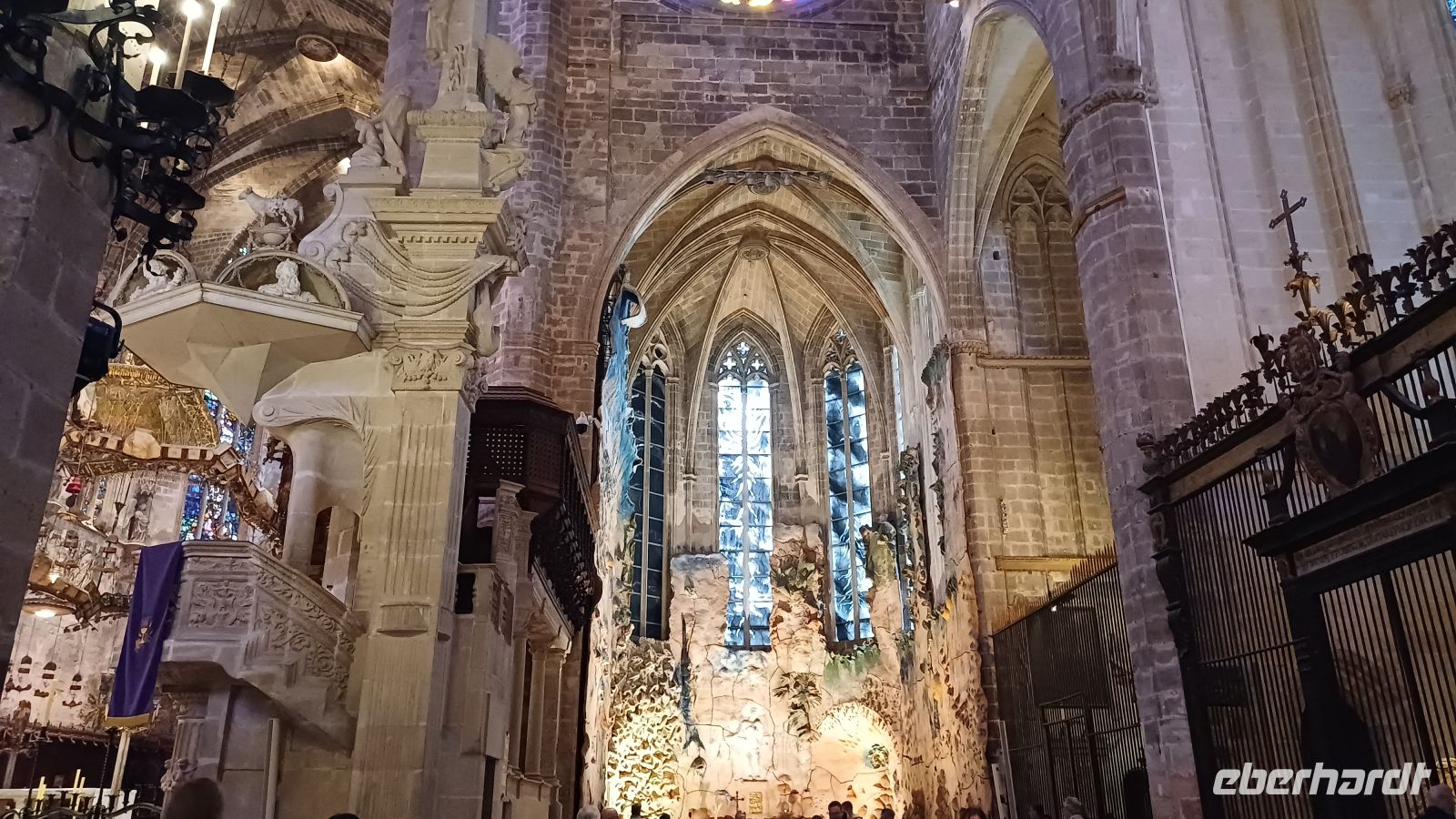 Heute wollen wir die Inselhauptstadt Palma entdecken. Nach einer kleinen Rundfahrt mit dem Bus um die Altstadt besuchen die prächtige Kathedrale „La Seu". Das ca. 110 Meter lange Hauptschiff fasziniert vor allem durch die 14 schlanken, knapp 22 Meter hohen Säulen, sowie durch die aus 1.236 Glasteilen bestehende Fensterrose, mit einem Durchmesser von 11,5 Metern. Antonio bringt uns mit seinen interessanten Ausführungen, dieses einzigartige gotische Bauwerk aus dem 14. – 16. Jahrhundert näher. Über enge Gassen der Altstadt vorbei am Rathaus mit einem alten Olivenbaum und dem den Placa Major erreichen wir die bekannteste Markthalle von Palma, den ''Mercat de L'Olivar". Eine riesige Auswahl Fisch-, Fleisch- und Gemüseständen, kleine Tapasbars und kleine Läden mit mallorquinischen Produkten laden zum Staunen, Bummeln und Kaufen ein. Am spanischen Platz, dem Verkehrsknotenpunkt Palmas, endet unser gemeinsamer Stadtrundgang. Einige Gäste entscheiden,